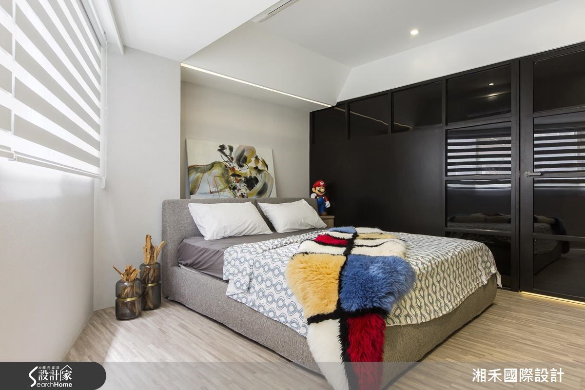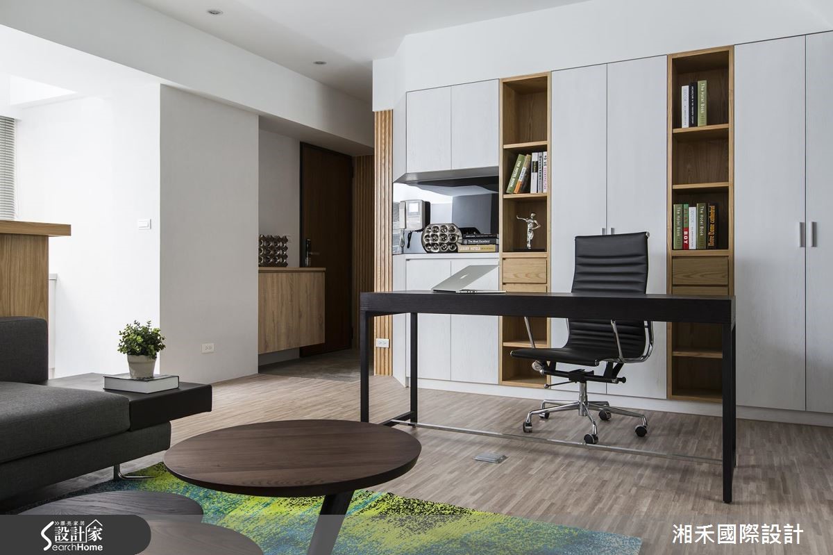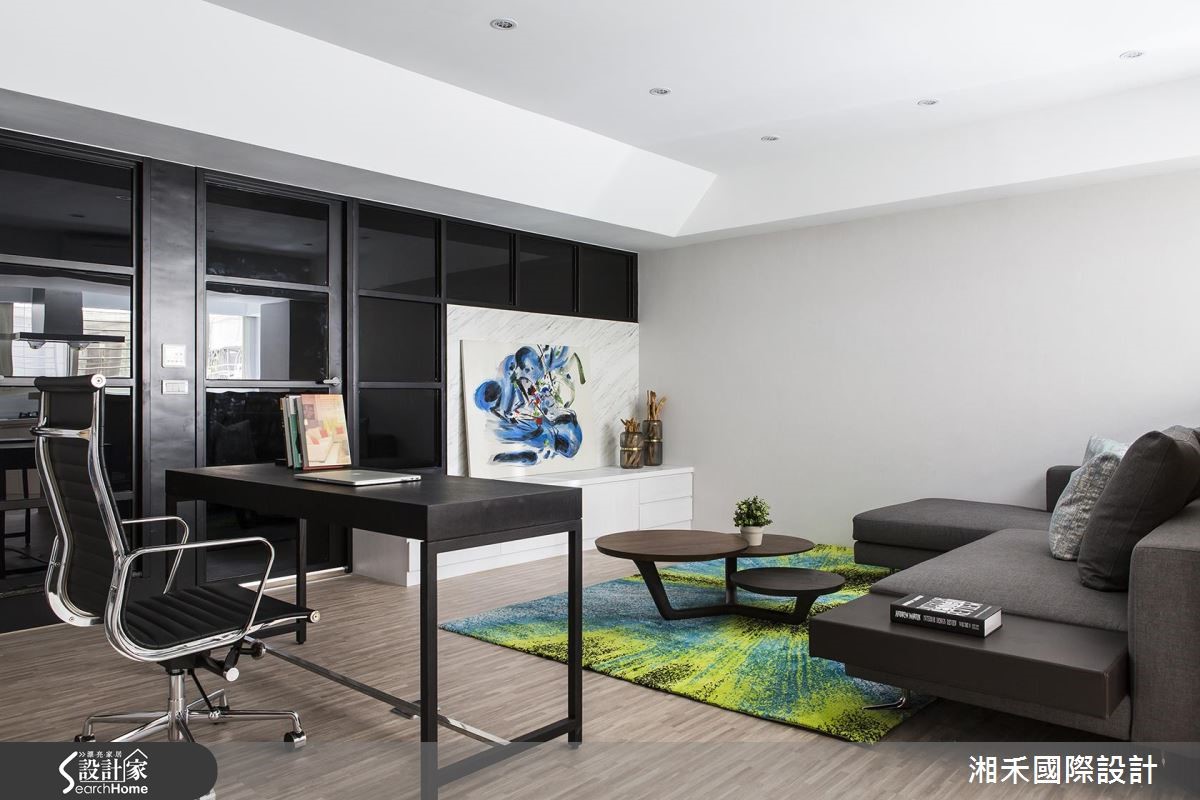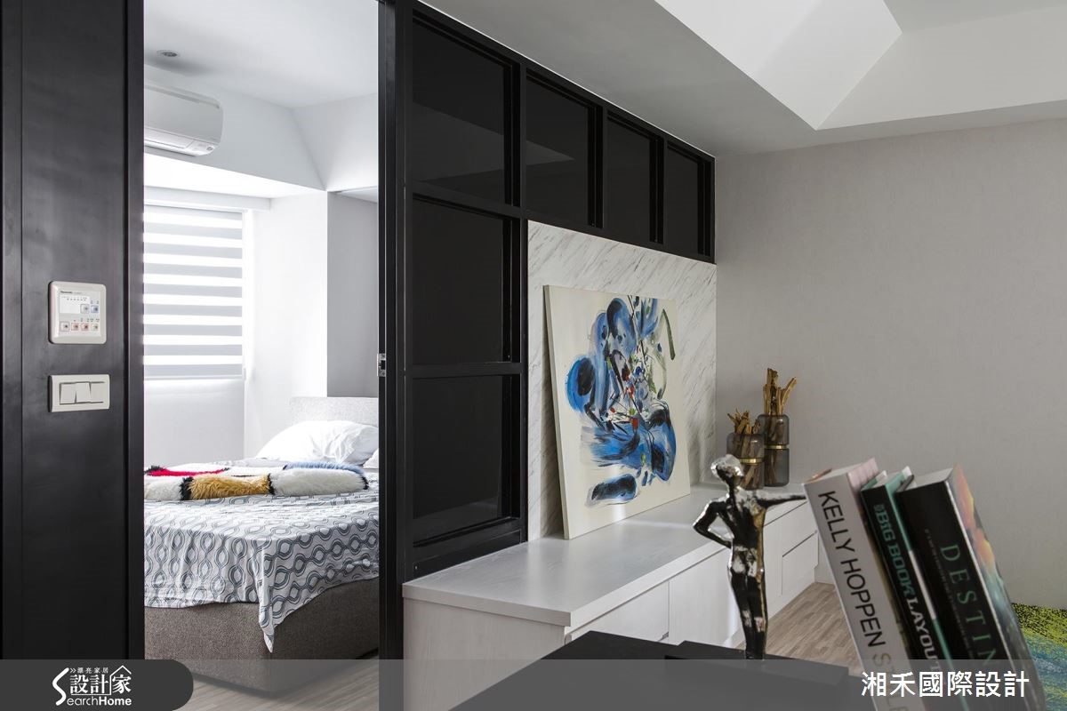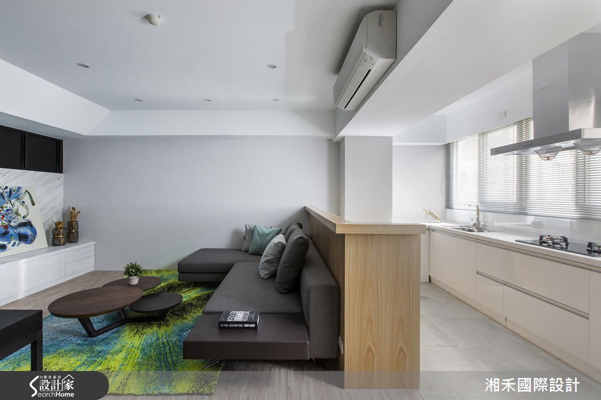 66平方米的狭窄老屋,设计师透过矮墙界定场域,引入充沛流动的自然光,并以经典黑白作为基底用色,融入轻量化的柜体设计,营造清爽舒适的居家视野。【墙面不作满,引入光线更放大】设计师引用轻浅的木皮材质,从玄关一路衔接至书房,柜面则藉由温润木色、纯粹白色、黑色烤漆等装饰,塑造出轻盈的美型柜体;厅区则顺着梁体结构,在沙发后方规划吧台,不只兼做区划客厅与餐厨的矮墙,更让厨房采光可流通至客厅,照亮满室的清爽明亮。客厅整体采用黑白色系定调,搭配鲜艳的地毯与软件装饰,恰到好处地提亮视觉彩度;主墙以铁件、黑色烤漆拼接,中段隐藏通往卧房的入口,打造时尚俐落的立面风貌,而卧室内则引入大量采光,搭配黑玻的反射照映,将起居氛围烘托得更加明朗。