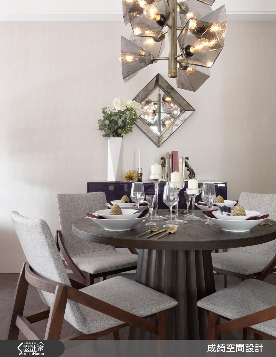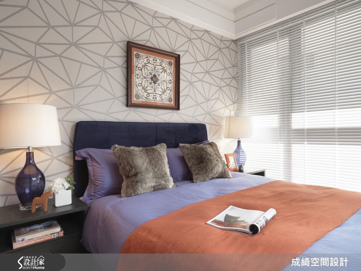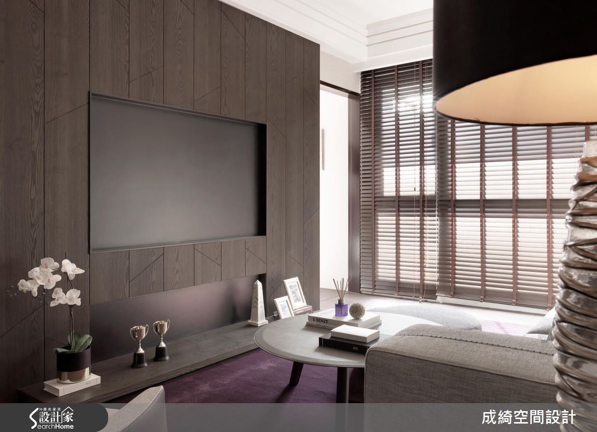 针对预算有限的新婚夫妻需求,设计团队将木作、泥作的预算降低,不大动格局。并将亮点放在色彩搭配,以紫外光为主轴,搭配银色灯具和墙饰。以家饰家具展现宛如酒店般的质感,打造甜蜜的新婚居家。【金属家饰,创造轻奢质感】设计团队把预算放置于天花与电视墙,利用线条简约的线板框设天花,接着以沉稳的实木材质,排列利落的电视墙面。搭配能随时调节光线的木百叶,创造温润不失质感的现代风尚。本案以紫外光色系为主角,运用大面积的地毯呈现紫外光的微熏色系,并以深浅不一的紫色抱枕,打造丰富的视觉层次。除了更有效减省预算,也方便日后换房时带走。设计师更巧妙善用有著金属质感的银色灯饰,创造宛如美术馆的艺术质感。