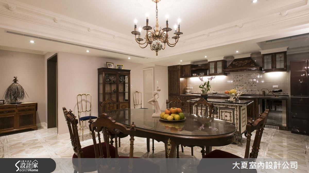 曾旅居国外求学的屋主,崇尚艺文般的品味生活,甚至还会亲手改造家具,独创非凡的居家风格。设计师以新古典风格改造老屋风貌,精致的逸品收藏妆点一室,营造出艺廊般的雅致空间。【俯拾即是的艺术品,充满艺术氛围】粉色调铺陈壁面,替宽阔的空间增添无限暖意,加上大量艺术画作、古典家具的摆设,挹注浓浓的人文色彩。利用上下层结构设计,界定出客、餐厅空间,造型华美的吊灯则串连起各个空间,擦亮视觉美感。步入餐厨空间,利用中岛界定出餐厨区,原木质感的餐桌椅与厨具门片传递一股静谧气息,让新古典风格一扫过度华丽的印象,反而多了恬静的人文氛围。卧室在光源调和下,加上能引入窗外绿意的落地窗设计,充满生命力。