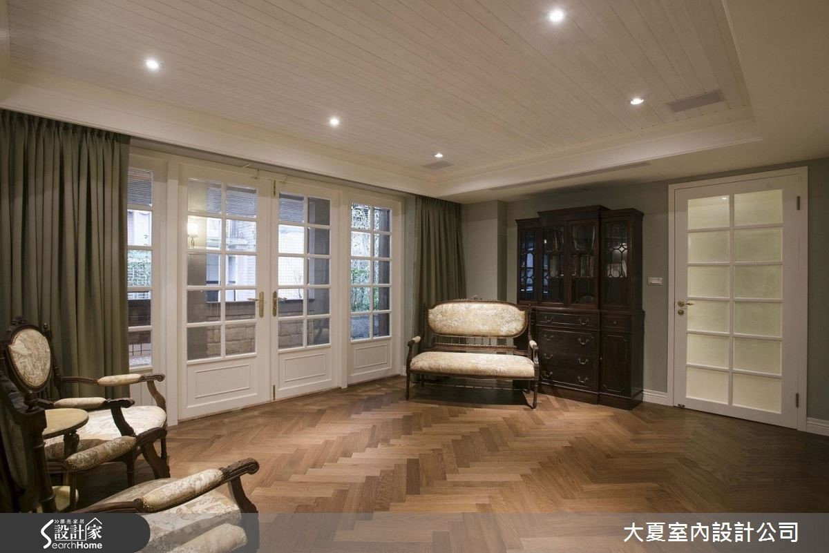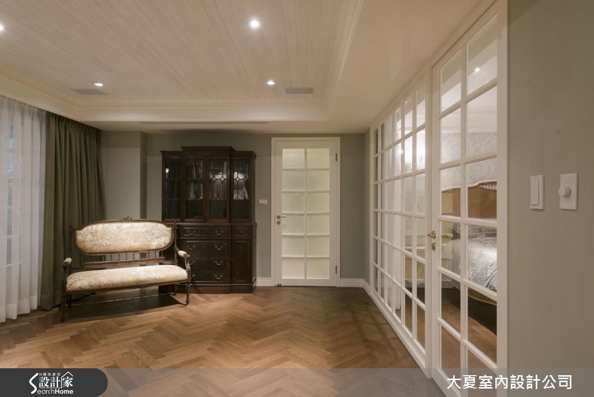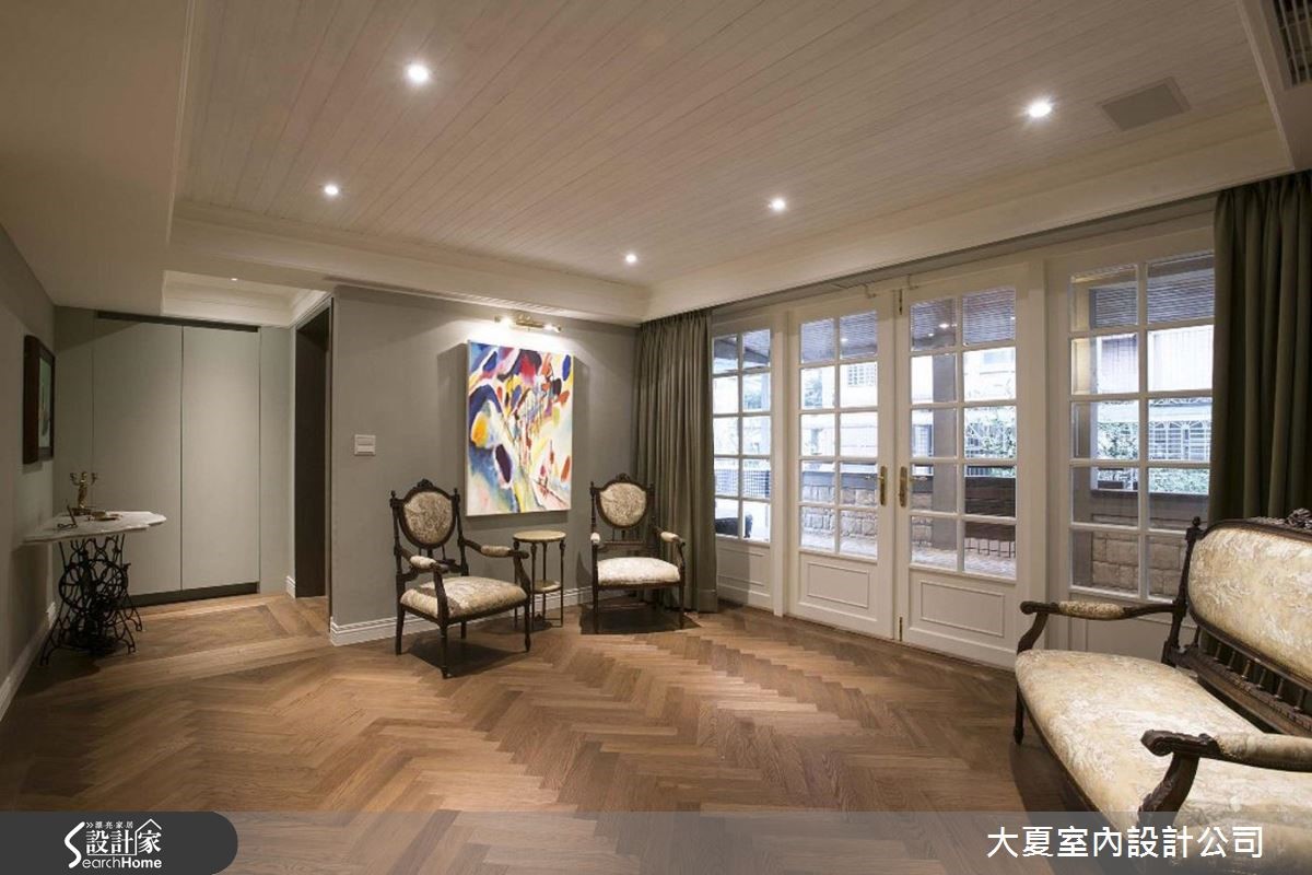 这间191平的老屋,有著格局动线不佳、阴暗采光的问题。经过设计师的巧手,重划空间格局,引入日光打亮空间。并运用温润的木纹肌理铺叙一地,墙面与天花板皆装饰柔和色系,搭配嵌灯照明,调和出优雅人文宅。【艺术美学注入,展露文青感】曾旅居国外一段时间的屋主,耳濡目染之下,对艺术美学特别敏锐,因而生活空间里也承袭这样的品味与色彩。以大地色系成为空间基底,让人感受惬意、放松之感,搭配古典的家具摆设,融入欧风文化精神,且让风格画作游走于空间,沉浸在艺术美学里。木作玻璃格状推拉门成为主卧室的隔间,简约线板描绘出整排收纳柜体,展现和谐与古典精神,而印花墙纸与四件套的图腾植入浪漫元素,与满室的乡村风格相互呼应,调和一抹动人的优雅气韵。