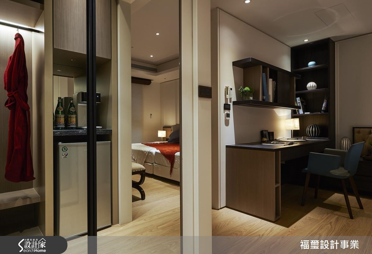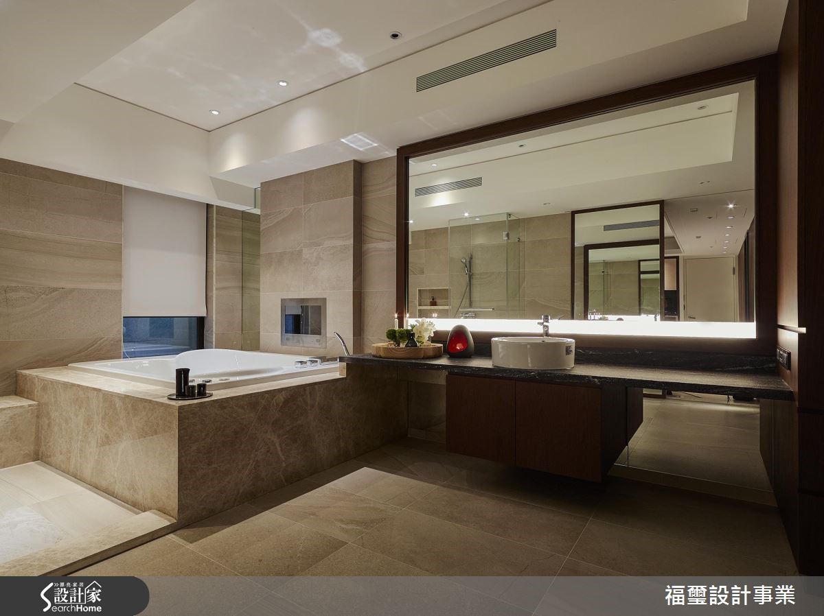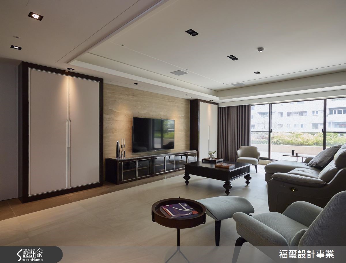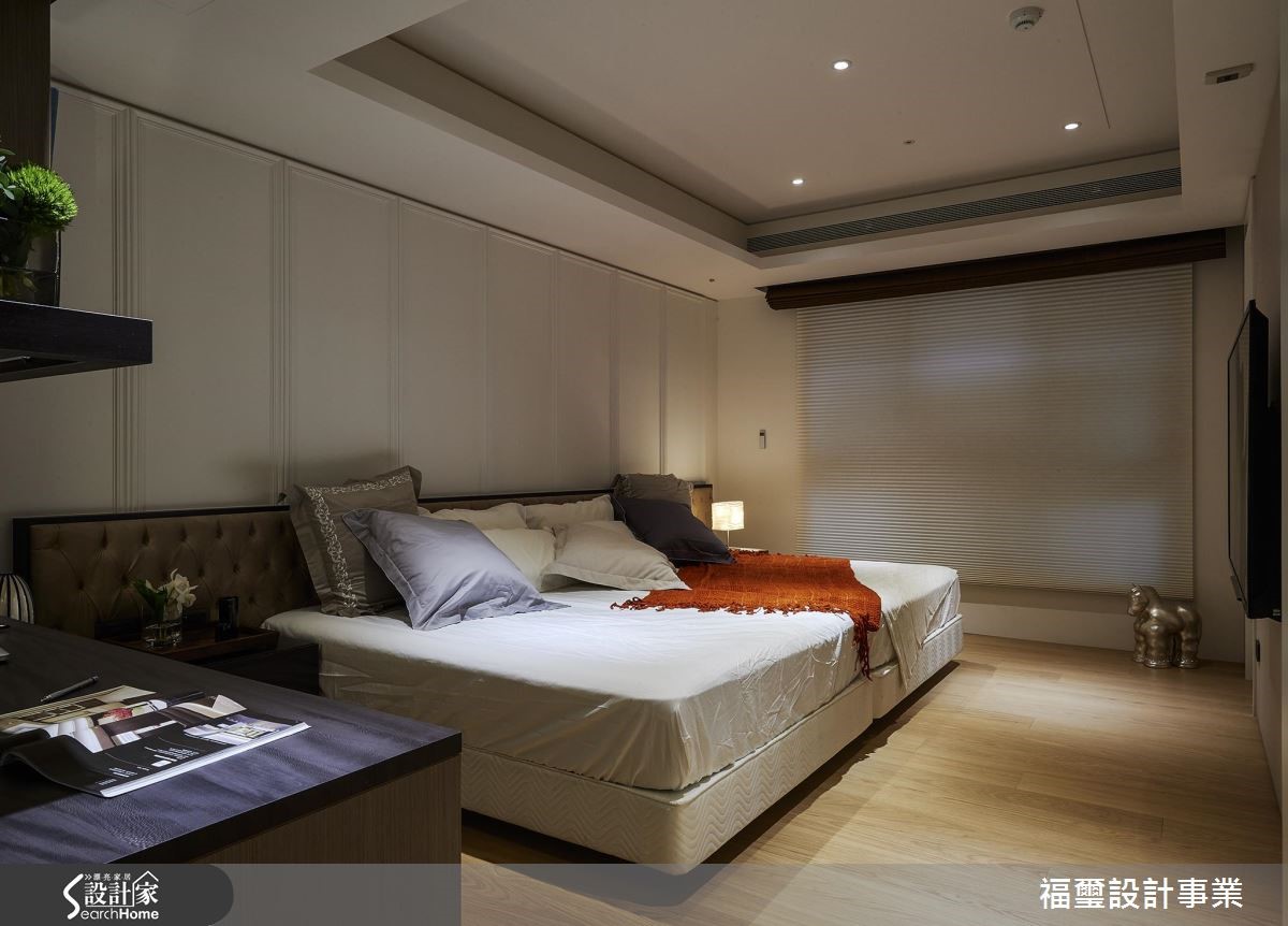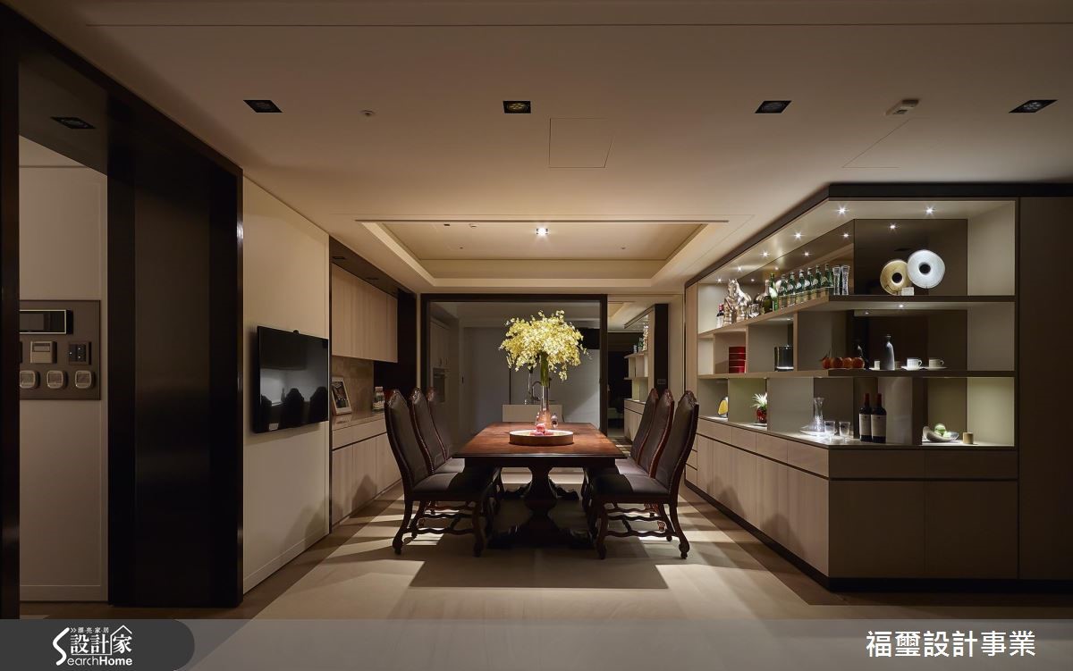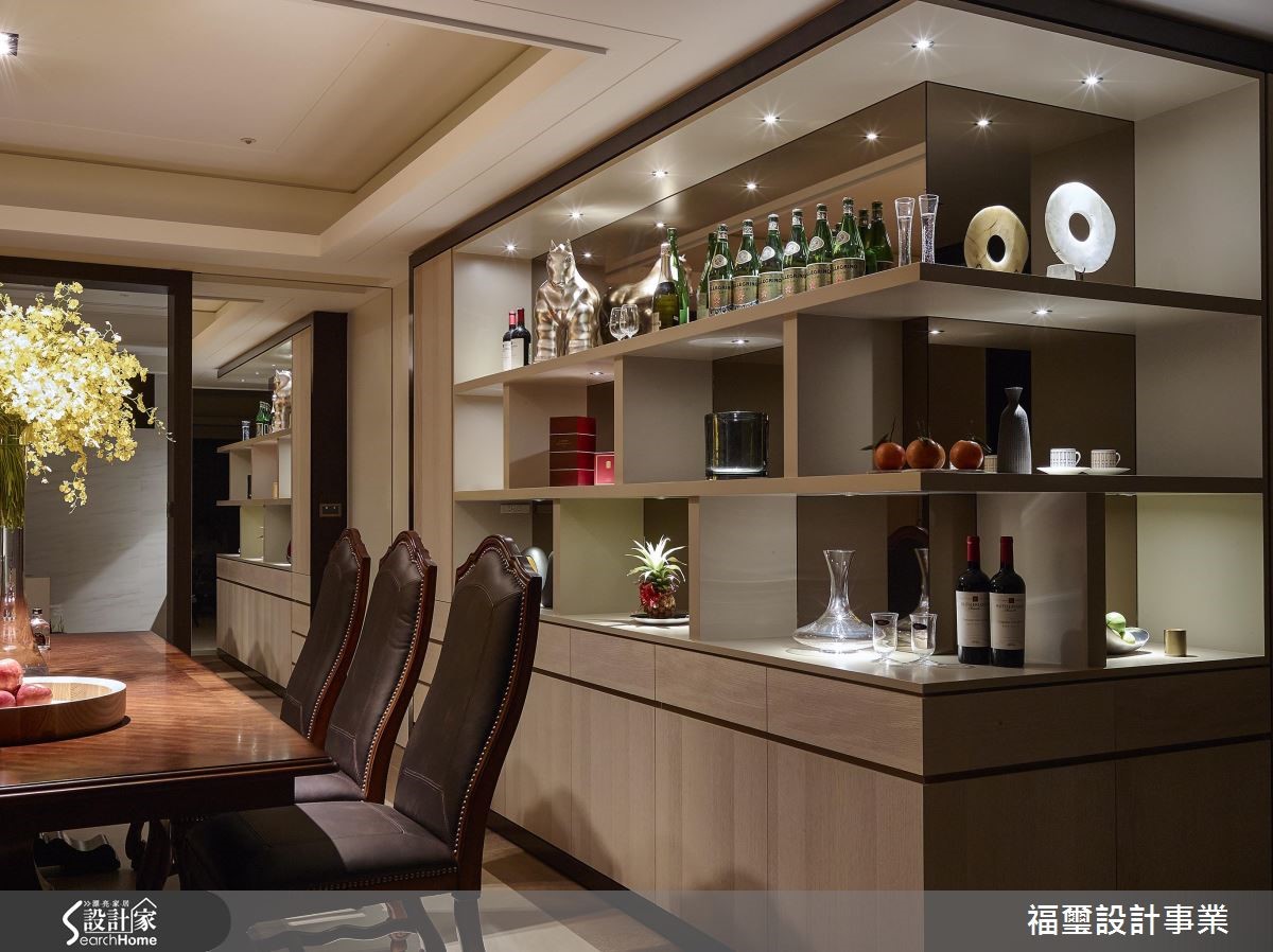 495平方米的景观大宅,设计师透过开放式设计、型塑流畅的生活动线与视野。同时减少多余装饰、强化收纳功能,藉由简单俐落的现代风,打造出屋主心目中的豪宅风貌。【注入木质和石材,奠定暖色基础】利用暖色基础,将客厅、书房开放连贯,予人宽敞的公领域印象。电视墙藉由浅色石材型塑柔和画面。两侧结合简约的收纳柜体,将立面延展得更为大器。书房则沿着墙筑起整排展示柜,不规则的错位隔板展现随兴感,加以细致的灯光提点,勾勒和谐的视觉基调。餐厅规划L 型转角柜体、延伸收纳广度;同时连结镜面材质,让柜体产生延伸错觉,衍生虚实难辨的空间趣味。卧室内整合屋主所需的各项机能,包含阅读、更衣、睡眠等,床头板长度更刻意做出延伸,以柔细布面带出光泽质感,搭佐白色线板的垂直勾勒,盈满舒适氛围。