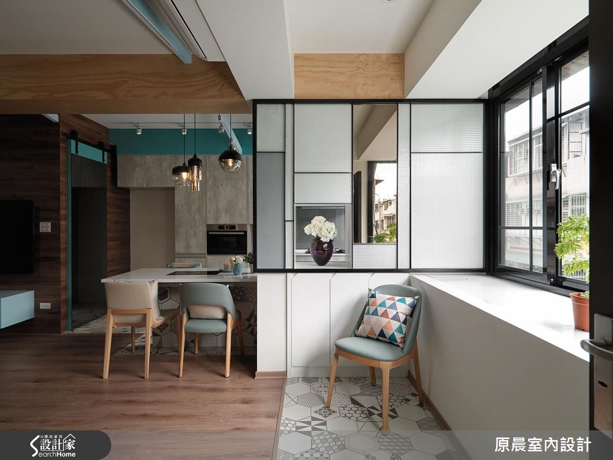 30年老屋,设计师重新进行空间布局,将不需要的隔断予以拆解,将位于后方的厨房挪至前方,型塑开放明亮的用餐领域,同时重塑动线,分化出完善的公私领域分野,让阴暗老旧的旧屋,瞬变为阳光唯美的北欧好宅,快跟着小编一起走进来看看吧! 【斜屋顶造型延伸景深】在76平米有限空间内,设计师以木材包覆梁柱,配置轨道灯,巧妙地营造出斜屋顶造型,达到延展景深与拉抬屋高的效果,并挥洒别致的粉蓝,带出清新时尚的北欧气息。【亲子交流在多任务大餐桌】厨房在经由改造后,与餐厅开放连贯,洋溢着有氧而明媚的氛围,地面则藉由六角地砖铺述,与客厅形成隐性界定,大餐桌除了提供用餐主题外,更兼具吧台、阅读、孩童写字桌的多样机能,打造出凝聚情感的核心场域! 【在家创造一框框好风景】设计师以铁件为架构、玻璃为媒材,规划出整排连续窗景,导入美好采光与景致,并运用造型玻璃拼构成端景展示柜,透过框景的引申,让人可从不同视角欣赏到多样的美丽视野!