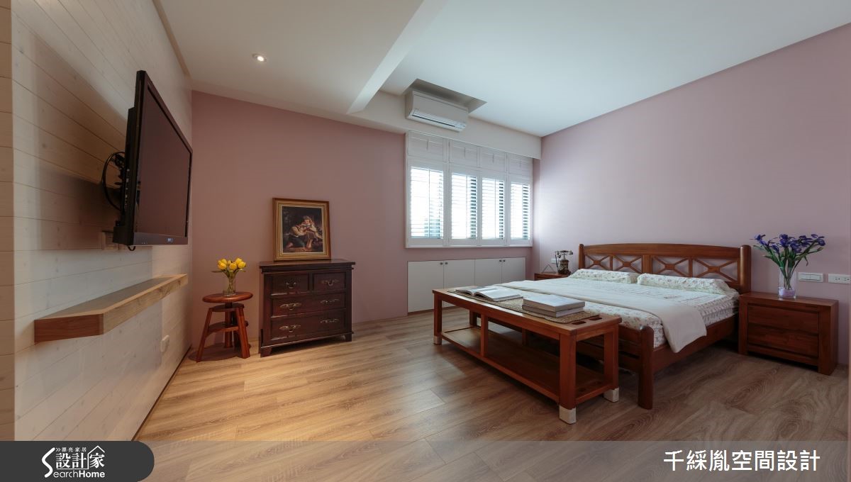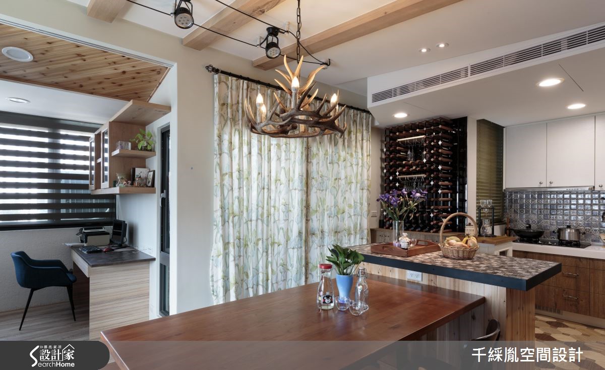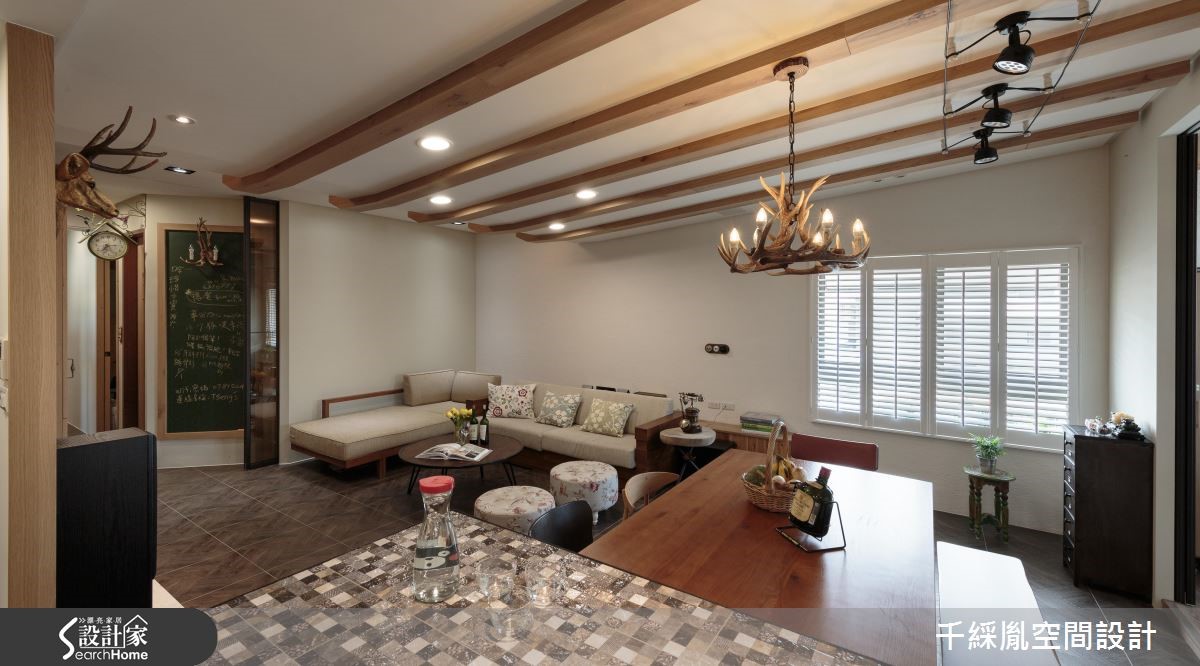 以惬意的乡村风定调,温暖的木纹质感铺陈空间,且将屋主钟情的拼布元素融于室内设计里,局部利用各式的异国花砖妆点,调和活泼、丰富的美学氛围,创造出独特的居家气息。【温暖木质感,打造温馨乡村风】玄关地板以西班牙复古砖铺陈,丰富视觉成为吸引目光的迎宾风格,鞋柜旁再搭配谷仓造型拉门,创造轻甜梦幻的乡村风格;室内以各式木头纹路拼贴地坪,呈现出渐层的视觉造型,电视墙也以清晰木纹肌理为底,搭载L型收纳机能,让美感与实用特性兼备。格栅造型横跨公共领域的天花板,串联客、餐厅领域,并巧妙修饰梁体结构,同时展现新颖的设计美感;电视墙的右侧以铁件玻璃拉门,界定出公私领域,左侧为餐厨空间,壁面与吧台上结合马赛克拼贴元素,呼应乡村风的动人灵感。