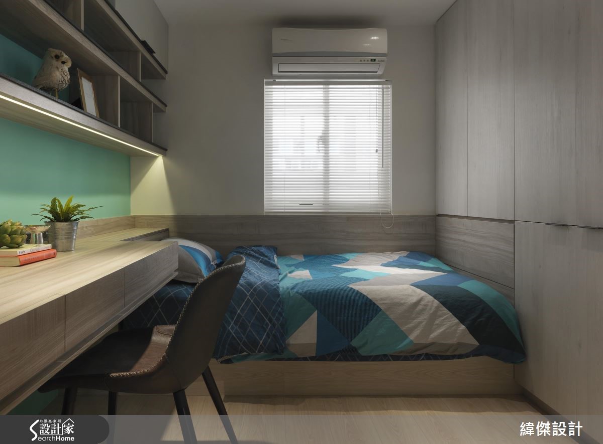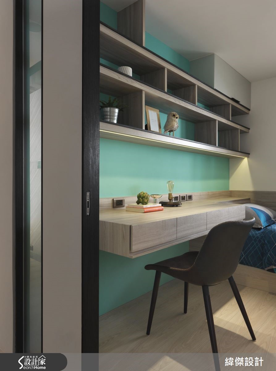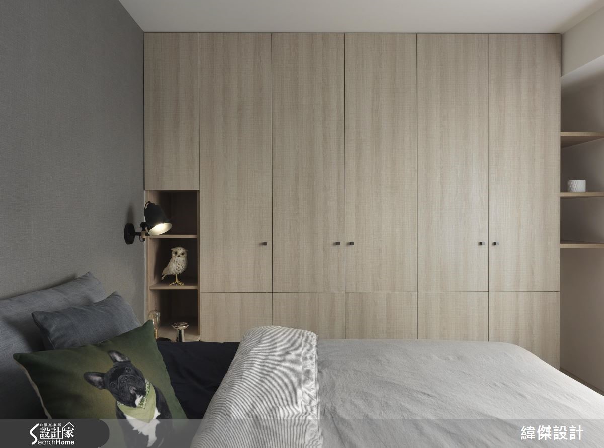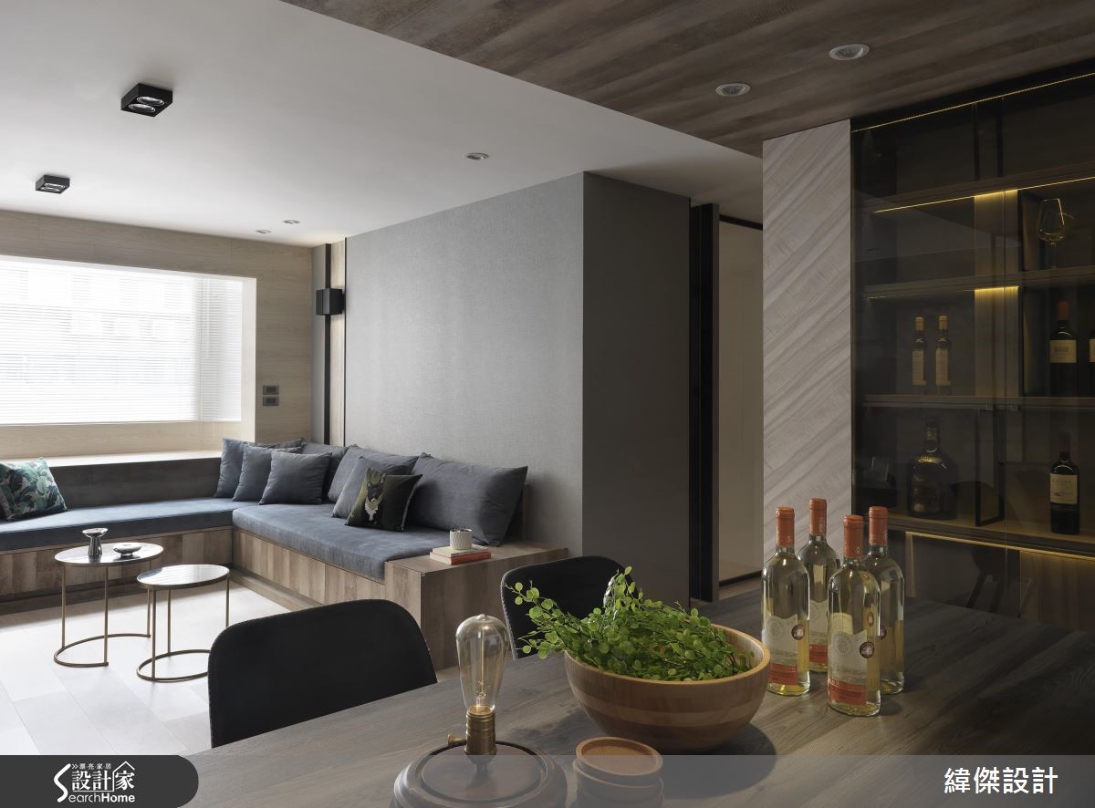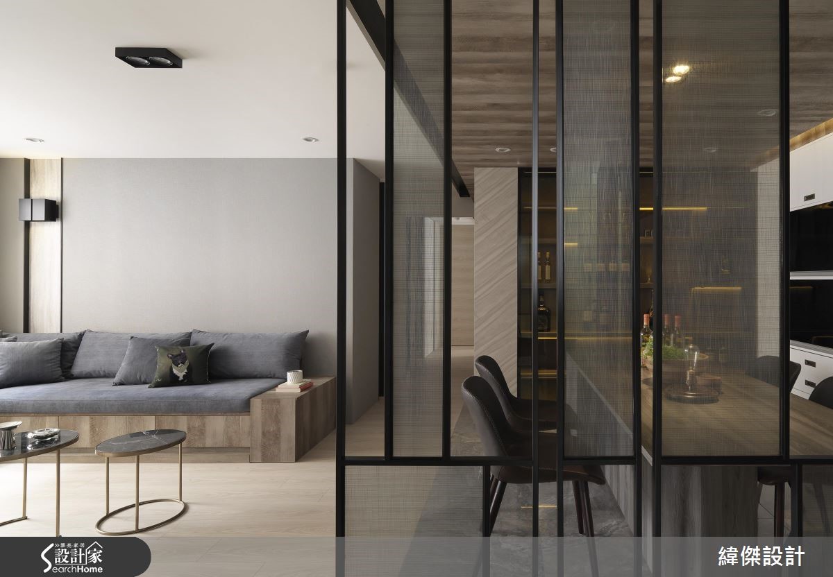 原为老屋的93平空间,有天花过低,以及采光、通风不良的问题。为了打造开阔、透亮的空间感,设计师利用视觉魔法,稍微降低玄关高度,进入公领域时,反而看起来更加挑高宽敞,而运用通透的玻璃作为隔屏,整个居家空间也更加透亮舒适。【局部镂空造型,采光不受限】温和的色彩和简洁线条,在走进这处居家空间时,便能感到令人安心的舒适感受,玄关处设置屏风划分领域独立性,铁件和夹纱玻璃采局部镂空造型,在展现设计美感的同时,也能让采光不受限制。公共区域采开放设计,不同高度的天花和地面取代隔断的窄迫感。为了避免廊道间的阴暗感,部分房间改用隐藏玻璃门,使自然光线不受阻碍。另一面则运用木纹贴皮巧妙隐藏卧室和柜体门片,并延伸至餐厅的展示柜,让视觉连贯,也更具一致性。