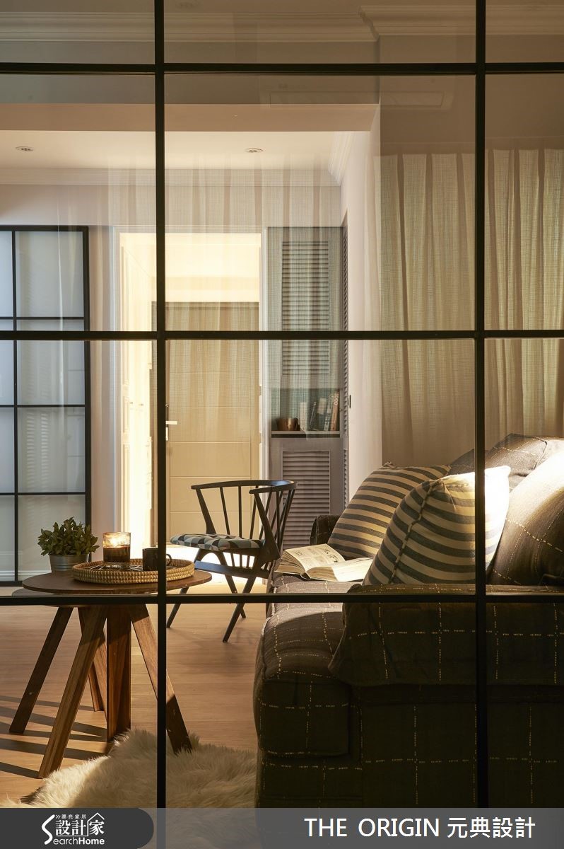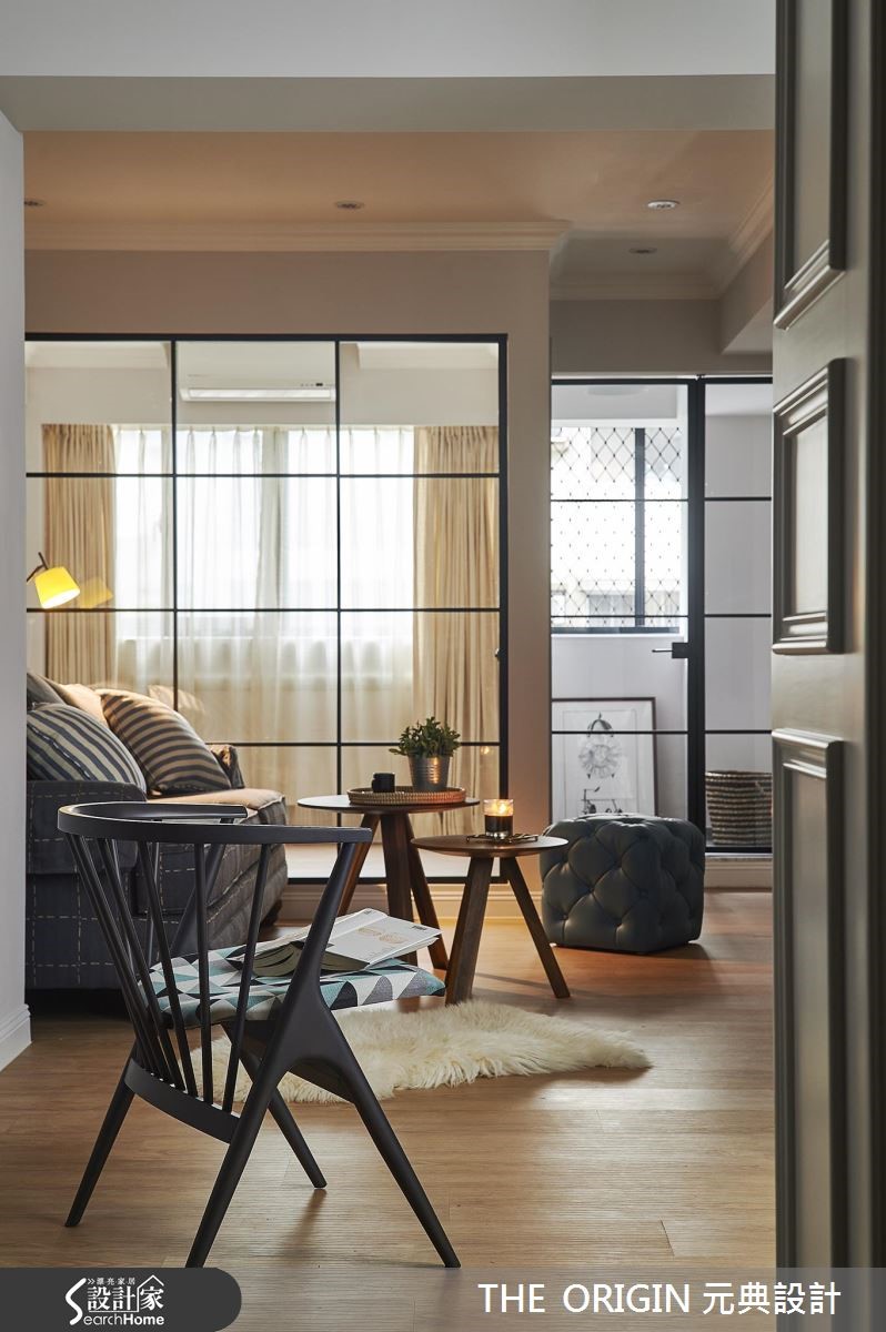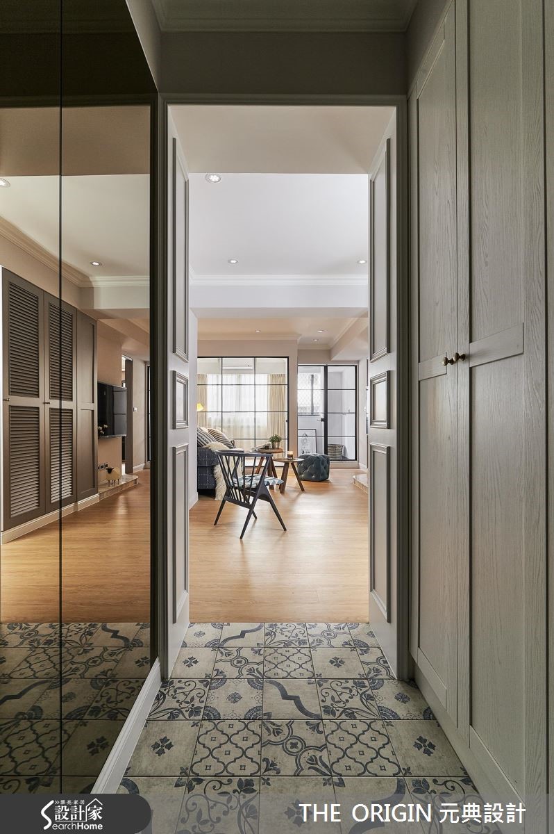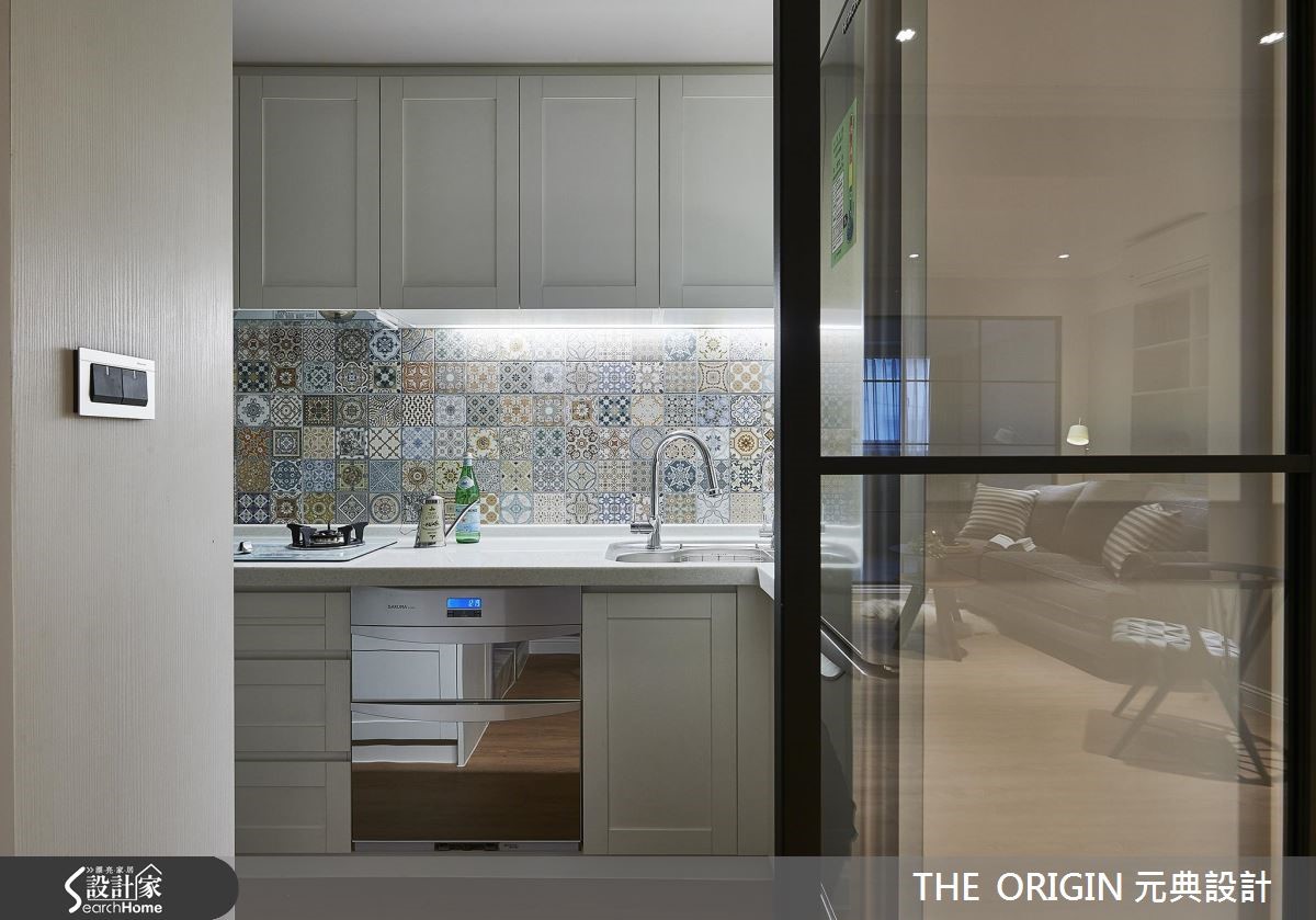 66平方米的老屋,设计师将居家格局重新整合,并依循一家人生活所需、重塑生活机能,让空间在重整后,不仅享有通透视野、流畅动线与明亮氛围,更坐拥别致的厨房与卫浴,赋予一家三口全新的生活感动。【玻璃隔断,共享光线空间更放大】玄关以复古花砖铺陈地坪,搭配融入茶镜材质的墙面,不只拥有拓宽廊道的效果,更提升入门处的精致度;室内则藉由轻透隔断配置,将起居卧室的采光导入公共领域内共享光线,而沙发后方结合机能展示柜的小巧阅读桌,可摆置书籍与家饰,成为凝塑氛围的绝佳点缀。厨房承袭着净透的门片设定,不仅塑造出空间的延伸感,更能清楚展现墙面的多彩花砖,产生画龙点睛的效果。即使整体可用空间有限,但设计师仍参考屋主的习惯,妥善分配出睡眠区、更衣室与卫浴,赋予完善的生活机能。
