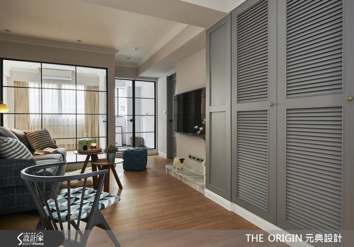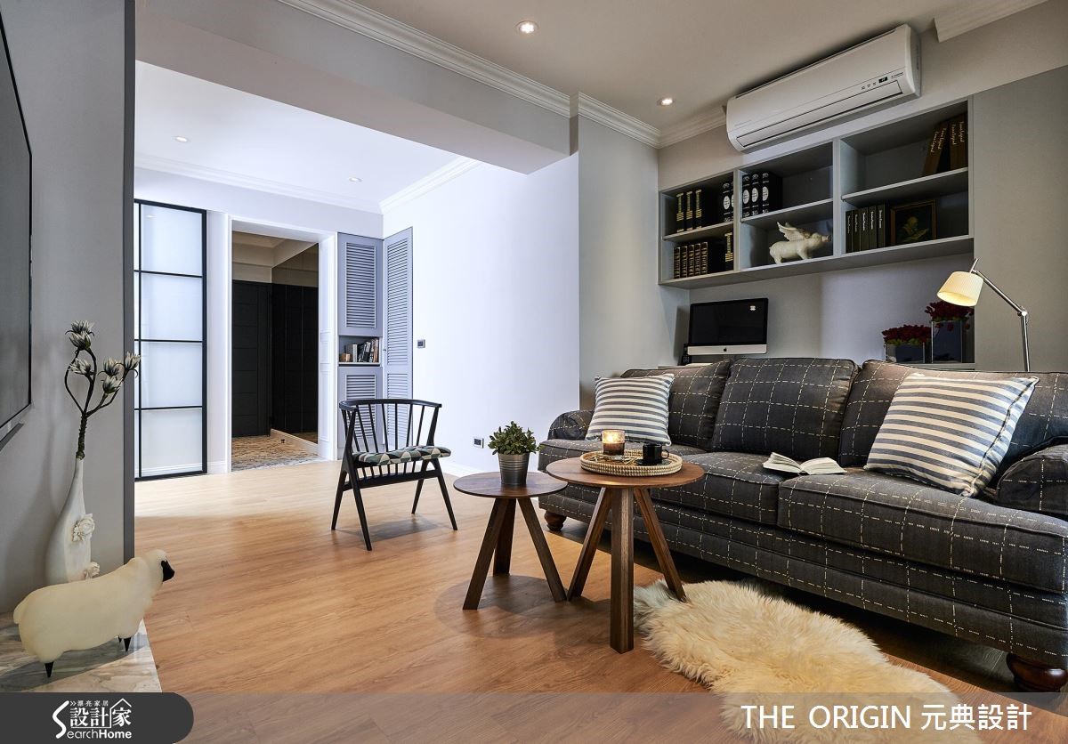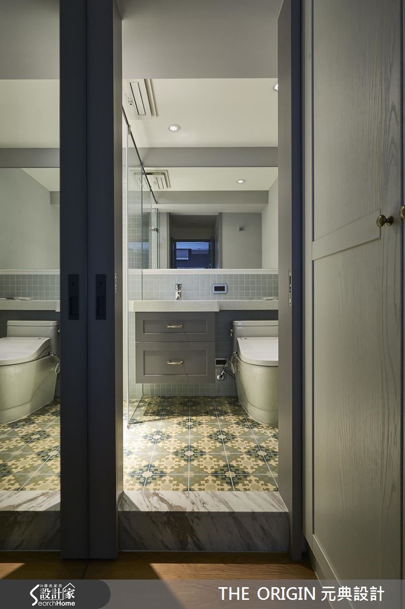 66平方米的老屋,设计师将居家格局重新整合,并依循一家人生活所需、重塑生活机能,让空间在重整后,不仅享有通透视野、流畅动线与明亮氛围,更坐拥别致的厨房与卫浴,赋予一家三口全新的生活感动。【玻璃隔断,共享光线空间更放大】玄关以复古花砖铺陈地坪,搭配融入茶镜材质的墙面,不只拥有拓宽廊道的效果,更提升入门处的精致度;室内则藉由轻透隔断配置,将起居卧室的采光导入公共领域内共享光线,而沙发后方结合机能展示柜的小巧阅读桌,可摆置书籍与家饰,成为凝塑氛围的绝佳点缀。厨房承袭着净透的门片设定,不仅塑造出空间的延伸感,更能清楚展现墙面的多彩花砖,产生画龙点睛的效果。即使整体可用空间有限,但设计师仍参考屋主的习惯,妥善分配出睡眠区、更衣室与卫浴,赋予完善的生活机能。