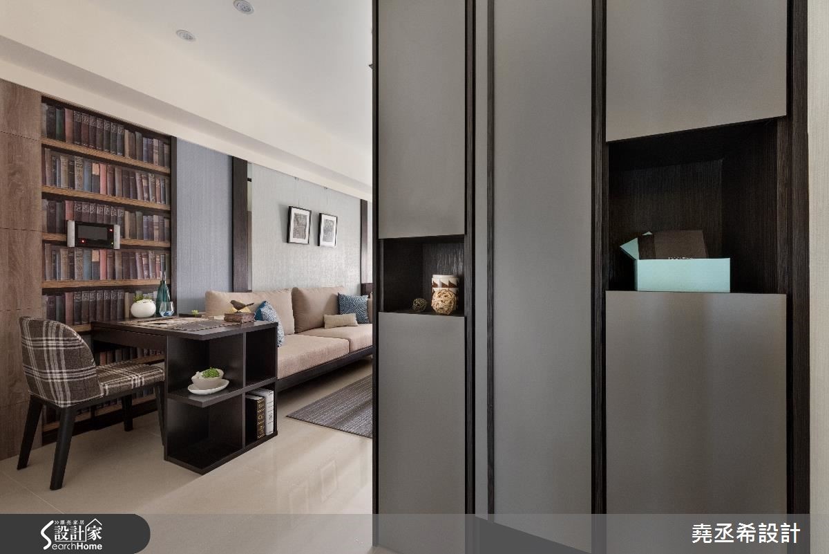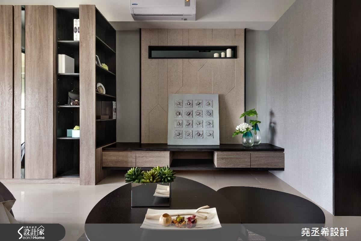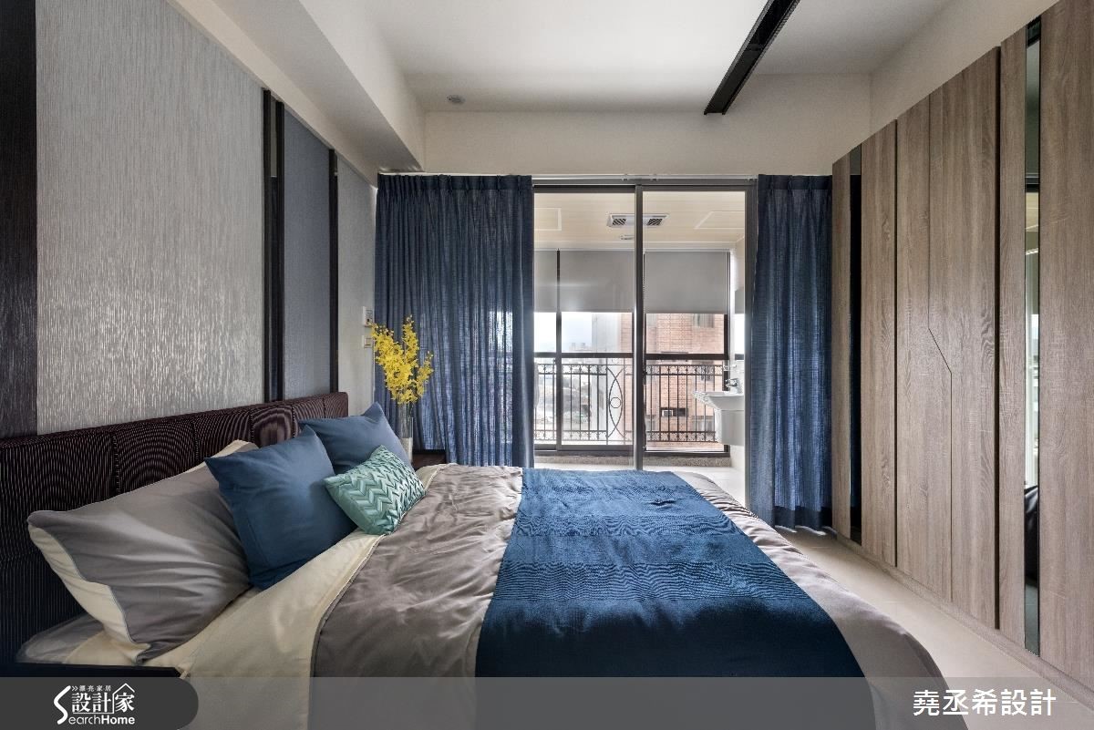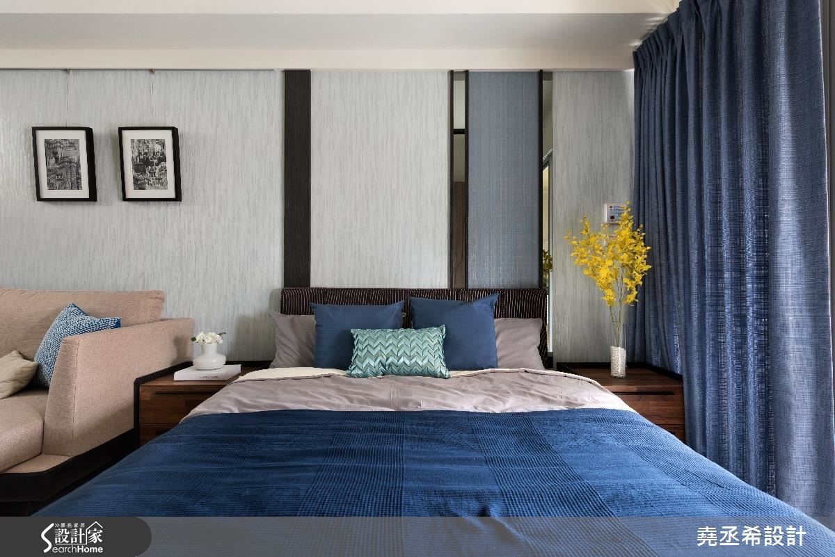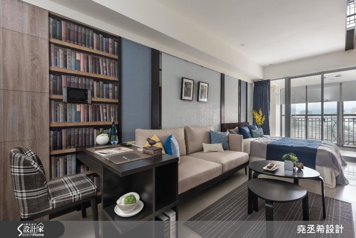 对上班族们来说,在外生活不易,处在繁忙的都会里,若能拥有自己的小窝,回到家享有生活的宁静与片刻,还可以装载自己的兴趣与美学风格,令人向往。就像此案空间仅有33平米,以蓝色作为主轴,打造雅致的台式都会风。【多种建材装饰,丰富空间表情】在这个一眼就能将整体室内收入眼底的小户型中,不做隔断,全室空间开放。利用清爽的蓝与柔和大地色系予以调和,从家具家饰与壁面,以色块堆叠和线条描绘,创造出鲜明活泼的空间氛围。随着自然光源的洗礼,烘托材质上的细微纹路。壁面丰富的铺陈,替这个空间增添想象,像是书桌旁的墙壁以书墙墙纸饰底,让艺文质感瞬间提升。电视墙则以线条描绘,上方嵌入灰镜的展示层架,兼具机能与美感。沙发到床的墙壁上,局部以灰镜装饰,营造出渐层视感,更添些许利落感的时尚风情。