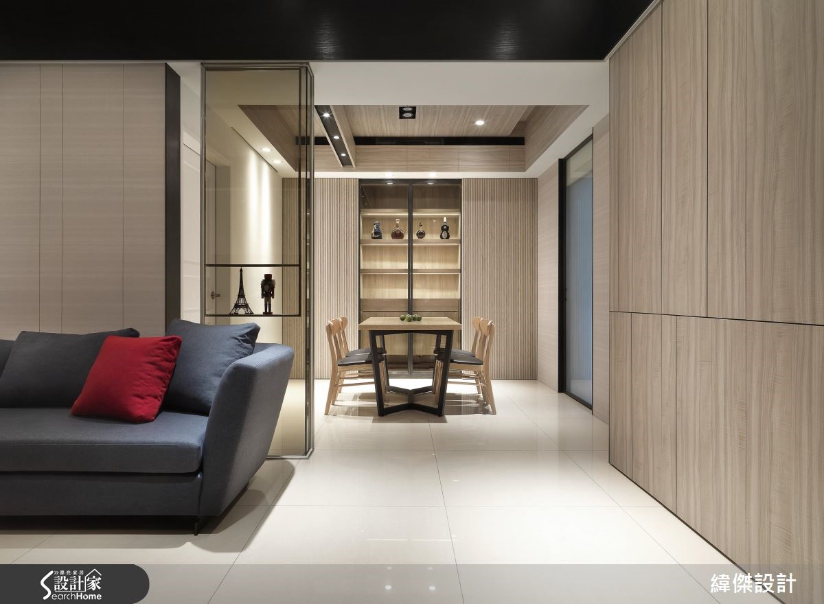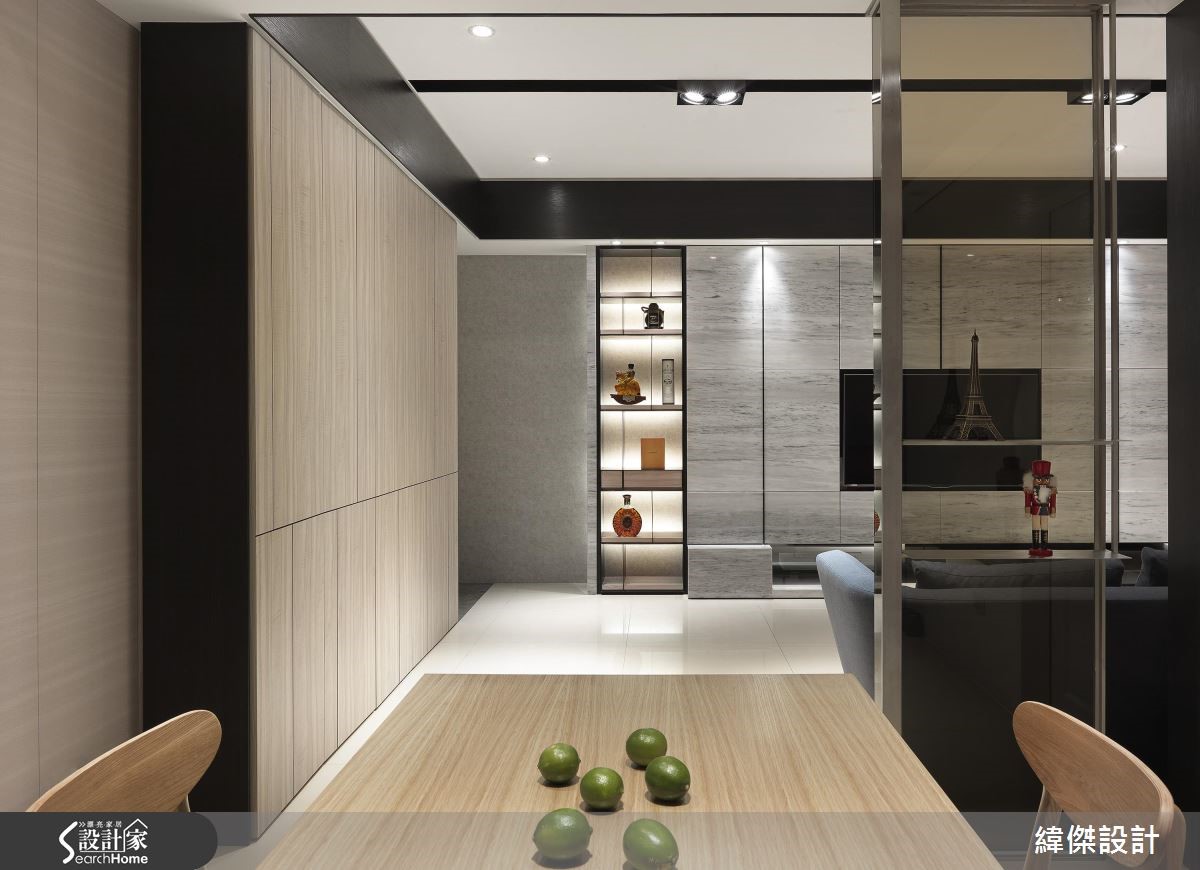 89平方米的东方风格居家,设计师在有限坪数之内,规划出小书房兼礼佛区,满足同堂三代的各自生活需求。并强调收纳机能与温润美学,让居宅处处呈现温婉与自在氛围。【巧用大理石拼接,视觉有层次】设计师以浅灰大理石建构客厅电视墙,采用特殊加工制成薄片、加以线条分割,打造有如块体堆叠的趣味意象,细节处则融入黑色铁件,搭配随处可见的深色框线,勾勒空间的立体视野。电视墙一旁更连结有如发光盒子般的展示柜,将屋主的搜藏展露无遗,同时间接与餐厅柜体开启对话,诉说着光影的迷人温度,沙发墙则藉由浅色木纹带出温润视觉,一侧连接茶玻延伸背墙宽度,并达到延展空间感作用。餐厅则以展示柜为中心,一端巧妙隐藏卫浴入口,另一边为隐藏式收纳柜,运用垂直的木质肌理美化立面,加上灯光投射提点层次,勾勒出宁静具质感的画面。卧房回归单纯的线条,个别以淡雅的绿强调静谧感受、饱和的橘带出活泼生机,各自阐述专属个性。