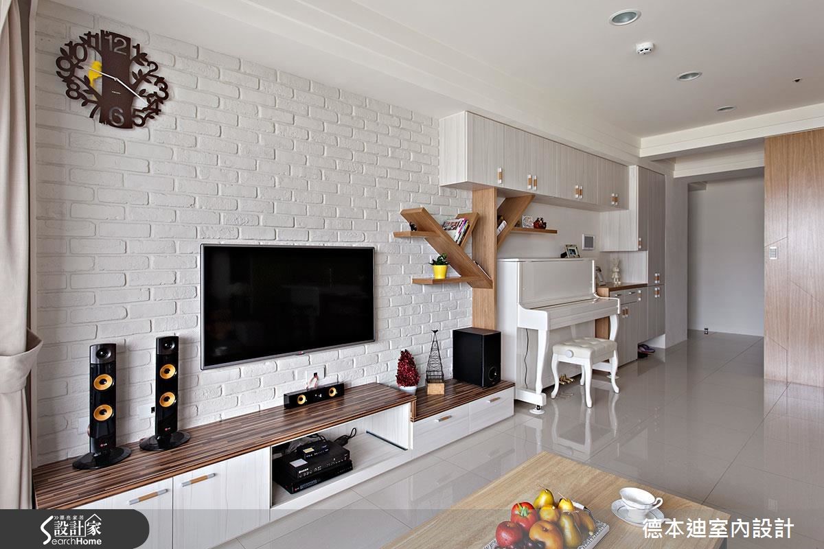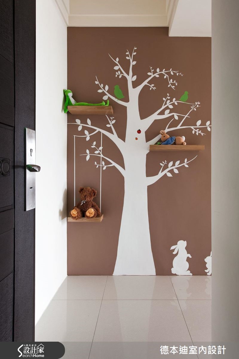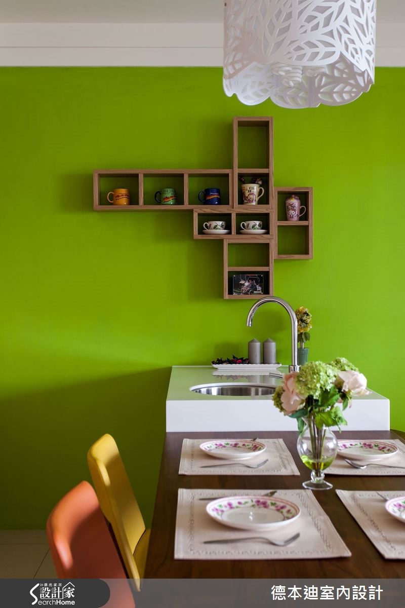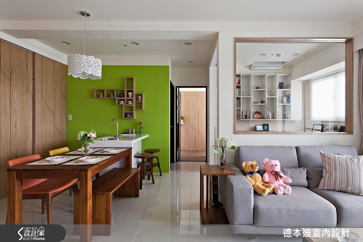 设计师以简约清爽的北欧风做为空间基底,当户外暖阳从阳台进入室内,照亮空间里木纹肌理的精彩细节,也让跳色壁面与风格家饰更显鲜明,酝酿生动活泼的气息。【引光入室,打造森林系无压空间】旋开大门,一幅以白色油漆创作的树木意象映入眼帘,伴随著森林中歇息的小动物,成为进入室内的风格印象;而自玄关处延伸至公共领域的收纳鞋柜,利用柜体造型转化为练琴区,并顺着开展枝干的造型层架,衔接至电视柜,让风格与机能一气呵成。开放式的格局规划,搭配以玻璃材质所打造的沙发背墙,让采光得以从客厅与书房引入全室,也将展示书柜纳入公共领域的造型中;餐厅部分以清新的草绿色铺陈壁面,并结合开放式木作壁架,将屋主收藏的杯子展示其中,增添人文雅趣。