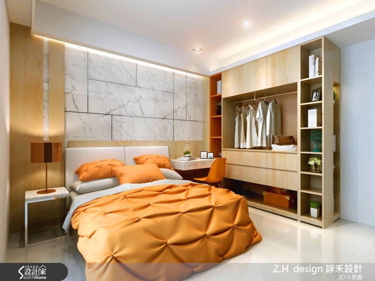 整体空间以白色为主调,利用大地色系装饰地坪、壁面与收纳柜体,让简约现代感的风格里,多了份安定与优雅感,并在局部利用镜面、金属饰条等华丽质感点缀,为空间注入些许时尚亮彩。【凸显质材特色,交织出优雅居宅】设计师舍弃繁复的手法,让质材本身的光感、纹理和色彩成为主角,客、餐厅以开放式格局规划,流露宽敞的气息。电视墙以石材铺陈,并结合展示机能,更显多变与灵活,而沙发背墙则透过沟缝与鲜明的石材纹路打造,周围藉由镜面围塑,彰显风格独具的现代感造型。一旁的餐桌领域,以优雅的餐桌椅摆设,垂挂一盏长型吊灯,酝酿柔美的用餐氛围;依照居住者不同的性格,私领域里藉由不同色系的铺陈,营造出多变的主题风格,替空间营造出层次与视觉变化。