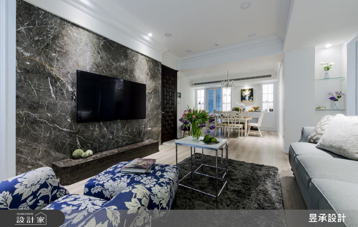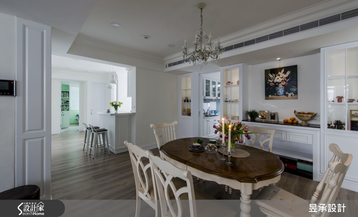 为了赋予一家五口全新生活,屋主将原住宅的隔壁买下,并把30余年的老旧屋况交由设计师重整,不仅改善采光、通风与动线等问题,更双并拓大为198平方米,辅以美式风格的融入,为一家人量身打造出专属场景。【白色调和玻璃,扩增明亮视野】为改善住宅昏暗问题,首先借引客厅窗户采光,并以白色玻璃门界定厅区及书房,营造视觉、光线的穿透,同时透过开放式格局将每个领域串联起来,重塑流畅的动线。客厅电视墙以深色大理石打造,凝聚大器焦点,也替浅色空间挹注沉稳气质。厨房将出入口转向后,导入了更多的阳台采光,除了化解原先昏暗,还新配置了轻食吧台,让用餐情境更多变、增加互动感。主卧透过小碎花壁纸以及古典床柱造型,带出质朴乡村韵味。并利用白色活动拉门修饰增设的更衣间,不仅收纳量充足,也使立面视觉与空间动线更加利落。