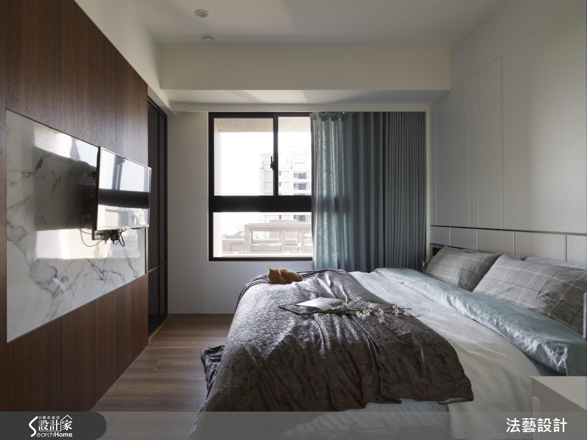 客变后格局还是有问题怎么解?电视半墙创造多元机能,主客卧对调优化动线,59.4 平米新成屋化身质感文青宅