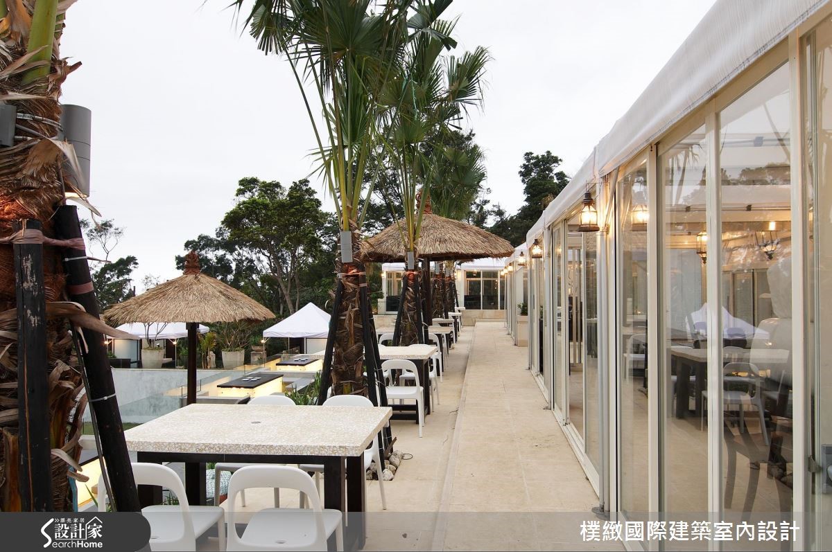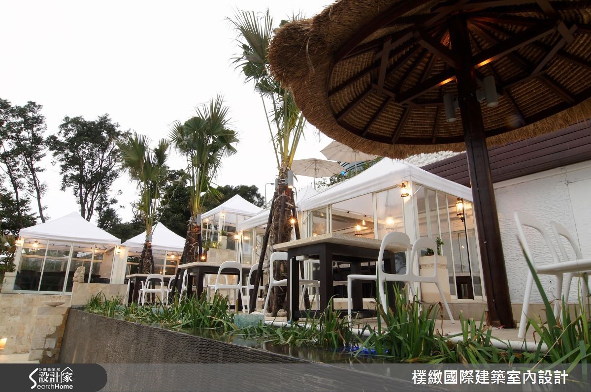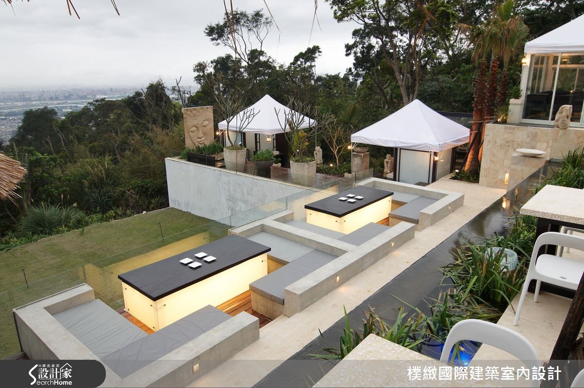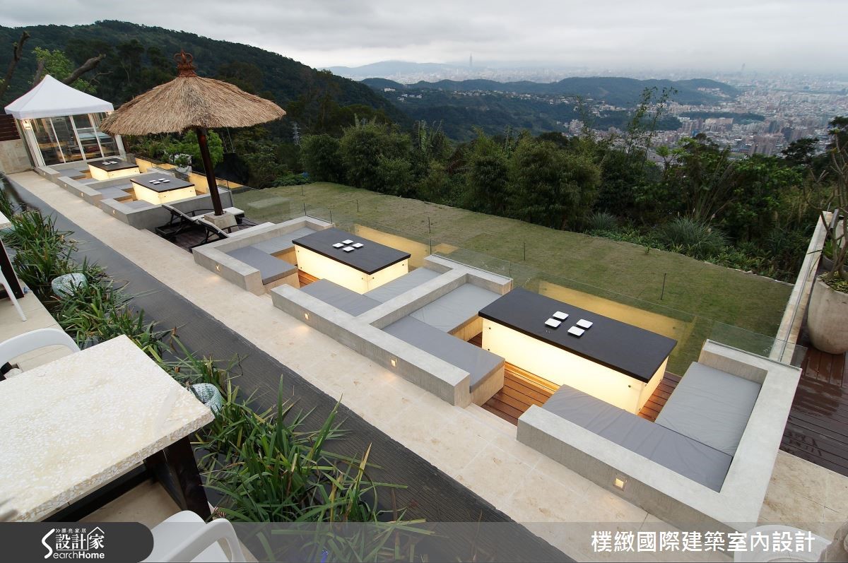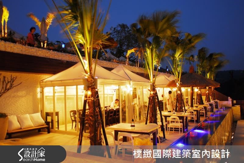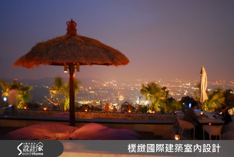 人气历久不衰的景观餐厅" THE TOP 屋顶上",每当夜晚时分,空间内温煦迷人的光氛,与山脚下熠熠生辉的景观相互呼应,衬出黑夜的美丽与静谧,向来是约会、求婚的圣地。【南洋摆件,营造道地的慵懒氛围】整体空间引用岛屿度假风格,设计师为讲究原汁原味,空间一半以上的建材与家具,皆严选自峇里岛当地空运来台,讲究营造地道的南洋风情,同时结合雕塑艺术,选用泥作、铁件、木作等元素注入天然触感,带出与自然共生的随想意境。沿着渐层式阶梯徒步而上,可见两侧的玻璃包厢,采以绝佳的高度规划,让每一道视线均能无死角地饱览美景,同时亦安排户外开放式座位区,搭衬植栽的穿梭,令人可尽情徜徉在岛国的热情氛围,搭配山脚下的一片美景,十足悠闲浪漫。