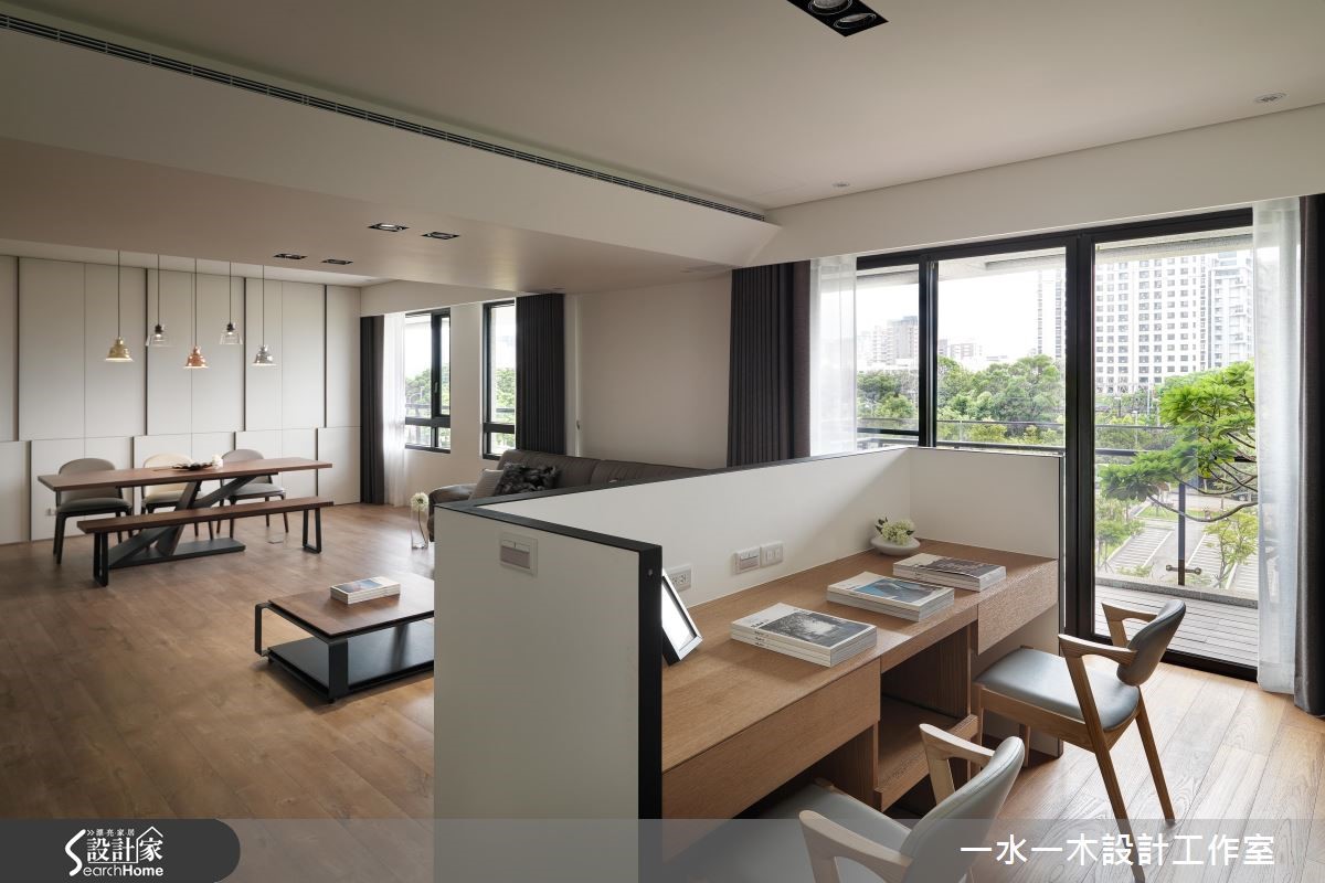 当家里有小孩时,需要较大的活动空间,开放的视野也会让父母更方便照护孩子,因此格局和动线规划便十分重要!143平方米的休闲风住宅,减去繁复的装修设计手法,设计师运用明亮的浅色系和简约造型,让属于小家庭的居所,不仅宽敞开放,也多了明亮清爽的气息。 【纯白注入木质,造清新腔调】步入室内,设计师以纯白、灰阶和木质等色彩作为背景基调,调和成自然温润的居家氛围。客厅、餐厅与书房之间则保留开放关系,让阳光也可恣意流动,酝酿舒适的生活温度。天花大梁则运用斜面吊顶包覆,减轻梁体压迫的同时,也无形拉伸空间高度,更显宽敞。主卧室具有酒店般的舒适感,运用沉静的灰色墙纸作为衬底,并附有独立的更衣间,使私领域空间更显透亮放大。儿童房则兼具孩子的游戏空间功能,赋予大量的收纳机能,让儿童用品和玩具收纳更加方便。
