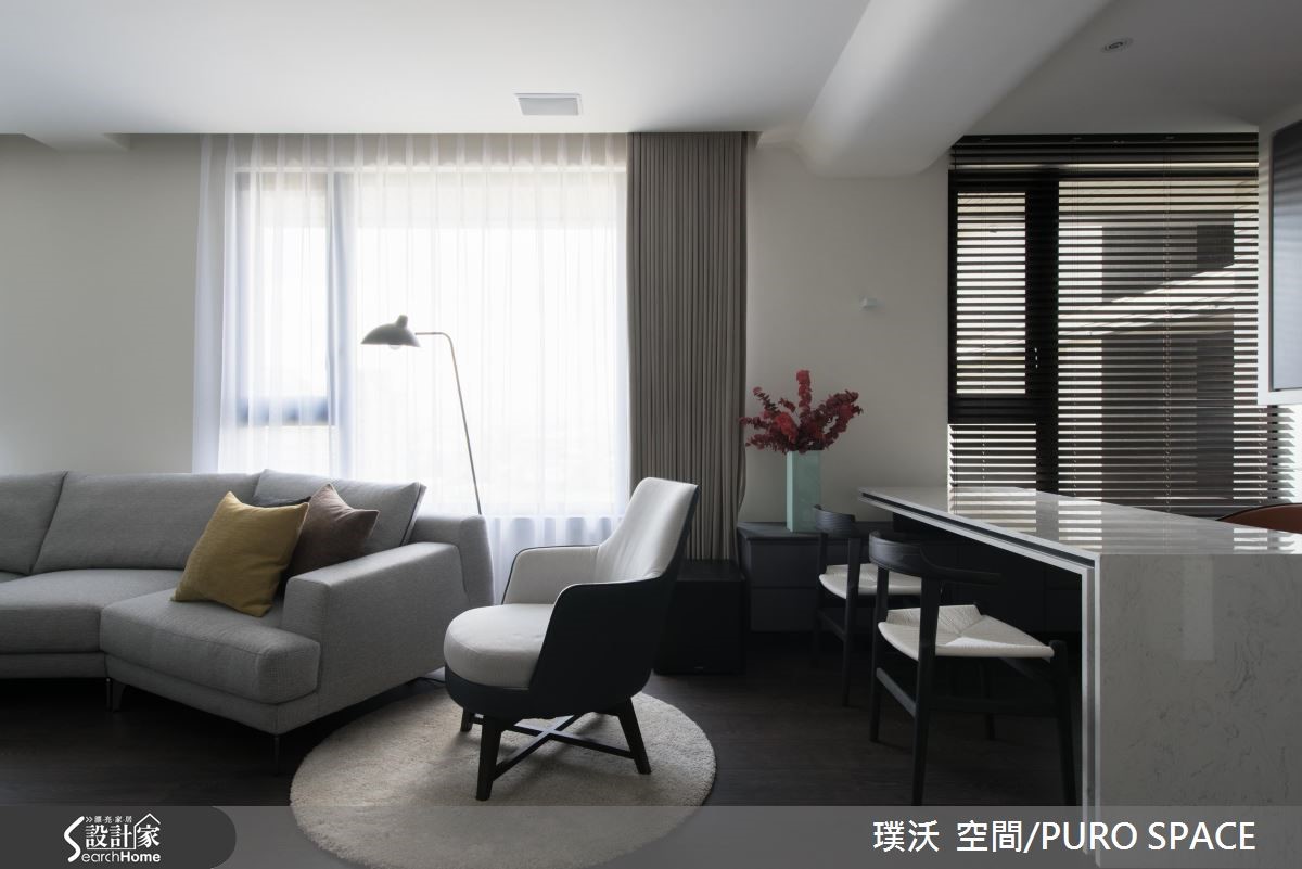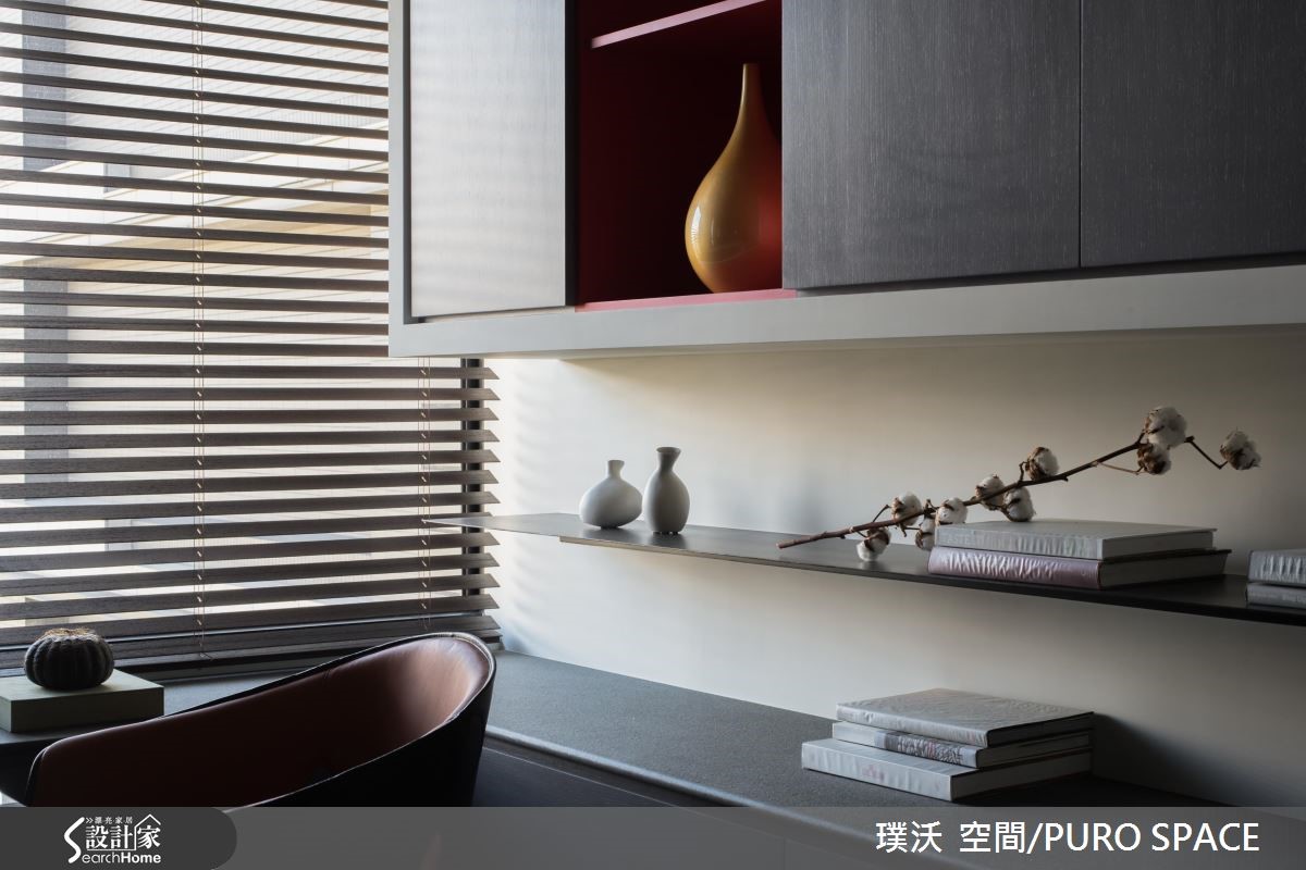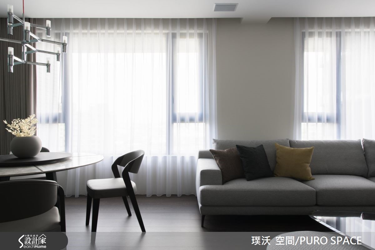 舞蹈家的165平米居宅,一如屋主背景般带着鲜明而独特的风格;设计师为改善采光问题,将既有的闲置房间打开,呈现完整向光面,化解空间阴暗的问题,再以现代风格作为基底,搭配中式元素点缀,型塑纯净优雅的格调,让家有如光与艺术的动静剧场!【以泼墨山水画与壁布展现古典美】玄关处于墙面加入整幅壁画,挥洒出泼墨山水的迷蒙意境,搭衬质感壁布与利落的线条色块,展现古韵及现代的交融,而循序渐进的弯折动线,更有如庭院回廊般,给人跨山越水后、柳暗花明的惊艳感受。【开放式设计打造舒适公共空间】公共空间内将客厅、餐厅与开放书房完整连贯,接收整排窗户的采光,倾注明亮舒适感,同时藉由简约的现代家具、体现灰色的知性优雅,搭配亮蓝、金色和正红色的局部妆点,以及带有中式美感的植栽、摆件等,调和出不失韵味,令人倍感舒适的生活场景。
