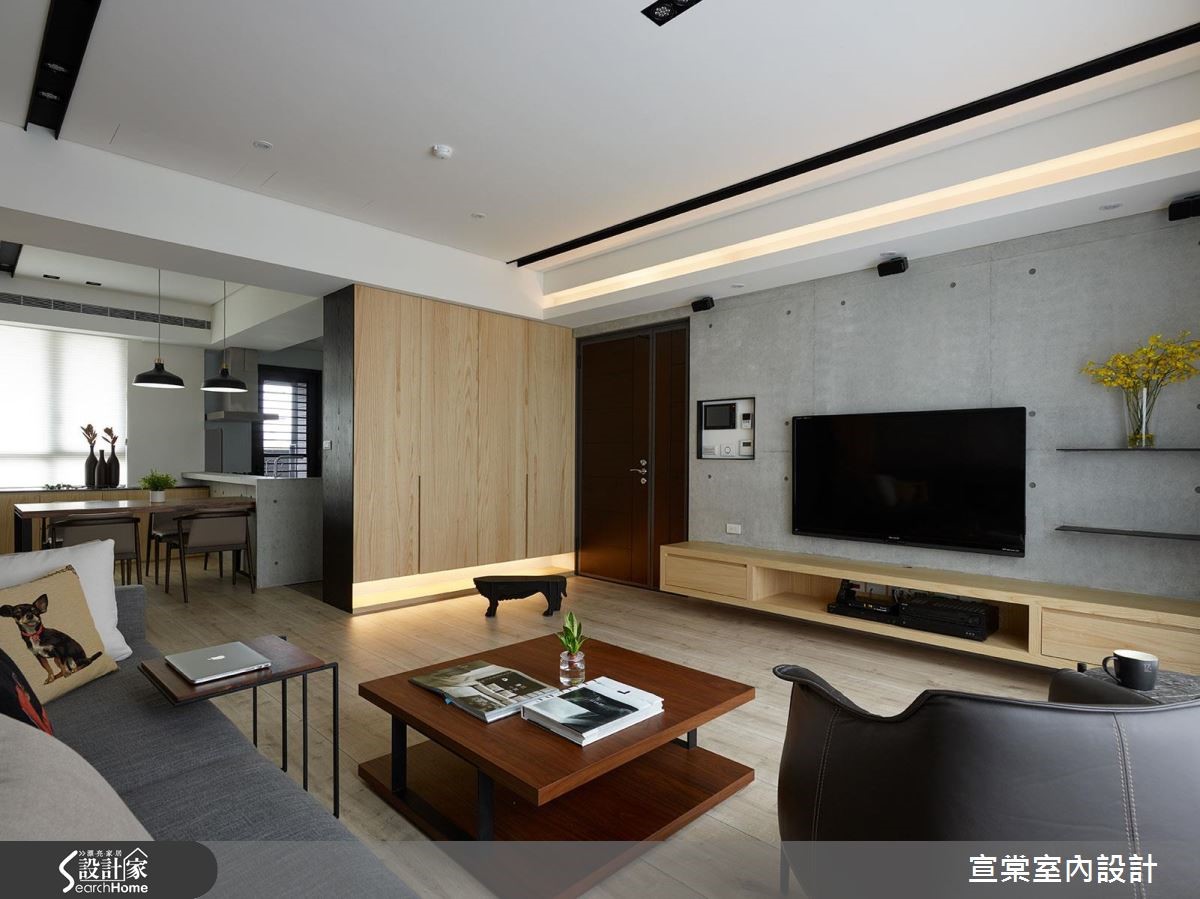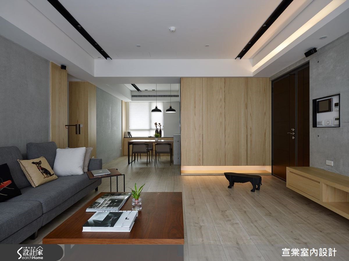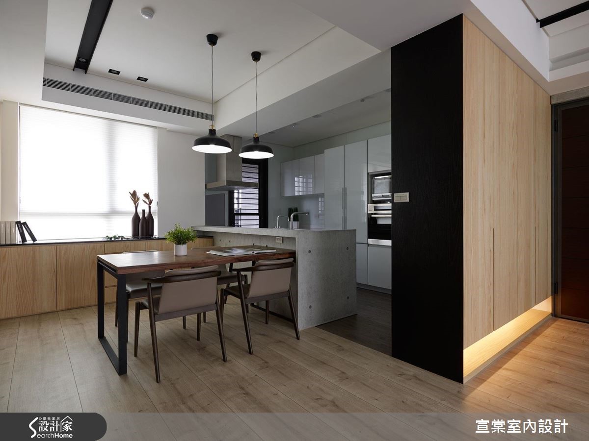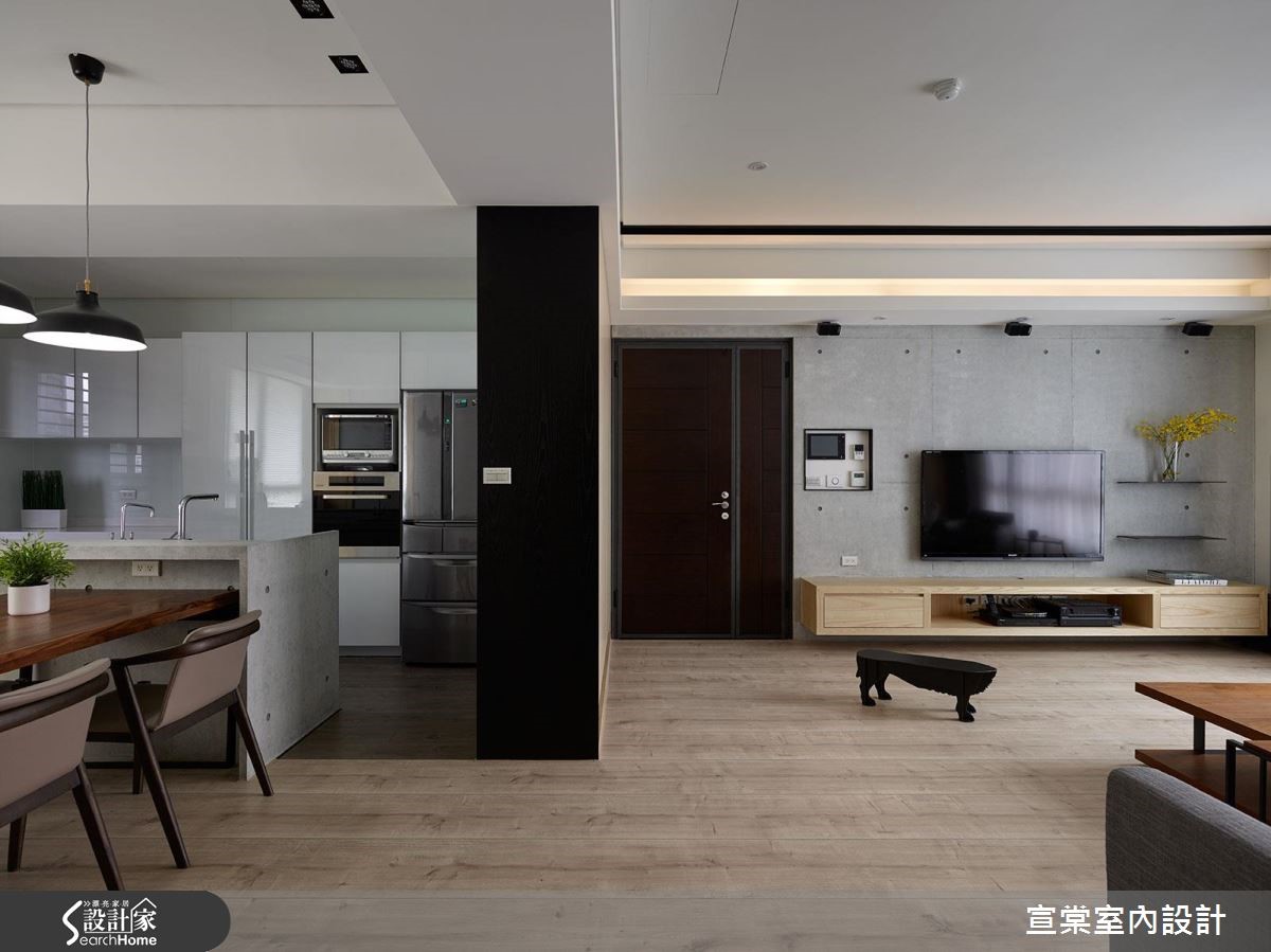 屋主特别喜欢设计师对清水模、木皮和铁件元素的掌握,不过屋主担心同样的材质如果运用在新居可能过于冷调,因此设计师虽然运用了大量的清水模元素,但也采用温润的浅色木皮及超宽版木地板,达到恰当的材质比例,满足屋主对于新家的风格期待。【清水模灰搭浅木色,造宁静效果】玄关处安排衣帽柜,当出门或回到家时便能顺手拿取或收纳,也顺带成为餐厨区和客厅的分界。公领域透过开放式设计结合客厅和餐厨功能,灰色清水模与浅色木质以简约造型呈现,沿着公共空间深入廊道,并加入黑色铁件线条,朴质中不失利落。厨房和餐厅处则取代隔断的限制,以一道料理吧台区分领域范畴,也保留开放的视野,下厨料理时也能和家人进行谈话互动,型塑温馨的居家画面,让忙碌一天的屋主回到家中更有归属感。