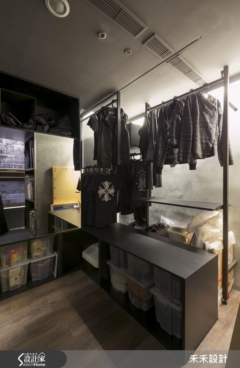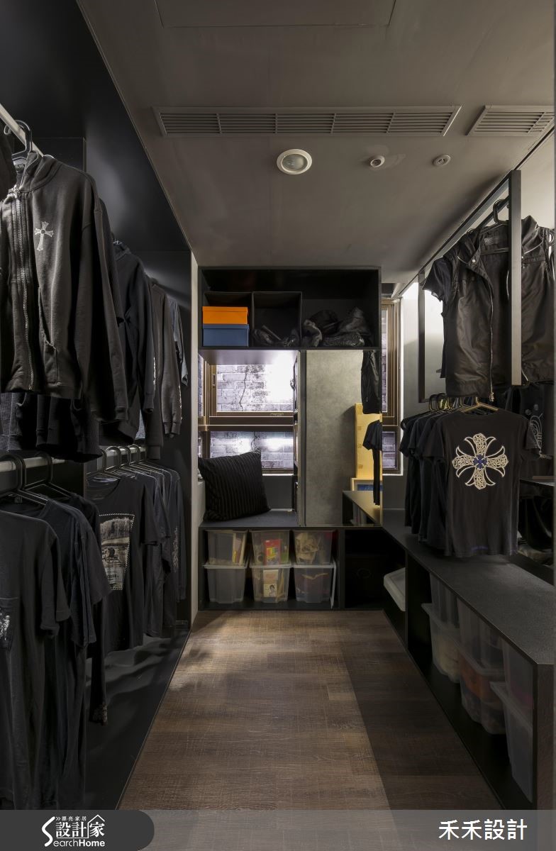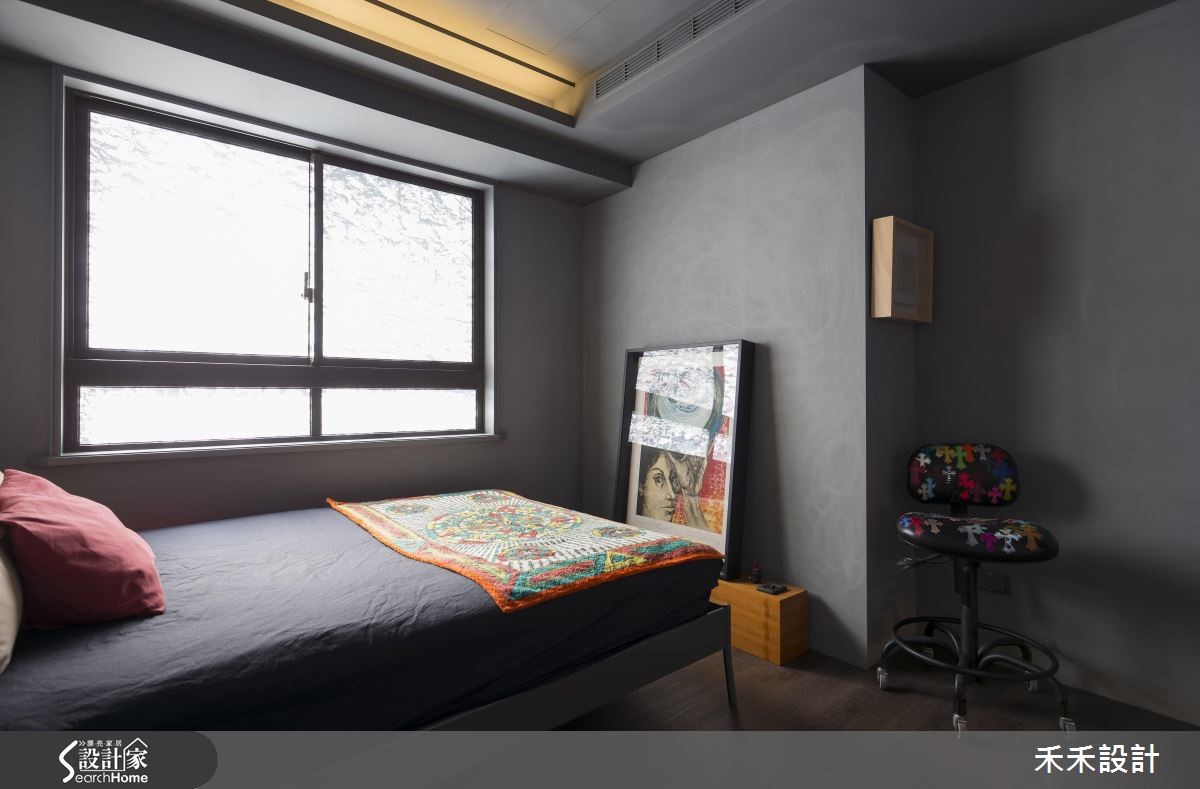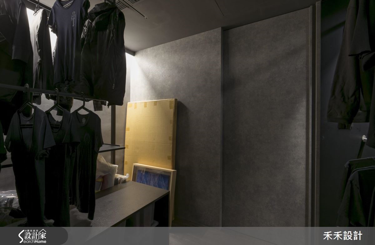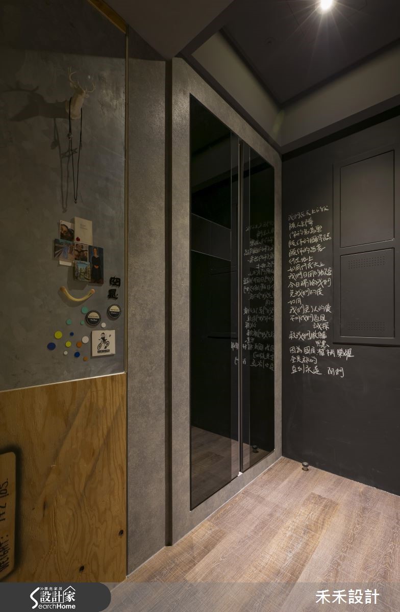 屋主在购买66平方米的住宅,发现原本的装潢风格与自己的品味差异很大,加上大楼间距过近,一开窗就能与邻居相望。于是禾禾设计重新打造,以"山洞"的概念作为设计主轴。【灰色隐喻山洞,纳入粗犷气息】整体空间以灰色作为主色,仿造山洞般的石材纹理,展现沉稳自然的氛围。由于屋主有著宗教信仰,因此玄关规划成每天祈祷的重要空间,并在墙面写上圣洁祷告词,也消弭电箱的突兀,一旁的落地鞋柜则以黑镜与灰镜打造十字架造型,也兼具照镜功能。在窗上分别贴上石头或红砖花色图腾的贴纸,避开直接与邻居相望的窘况。在17平方米的客厅采用开放式格局,并植入国外流行的"mini golf(小果岭)",舍弃桌椅仅以人造草皮充当地毯,上头摆放几颗抱枕,创造出惬意的聚会场地。吧台则以大型货运木箱搭造,下方置入滑轮的设计,可依需求随时移动。同时,铺设屋主收藏的爱马仕餐具与披毯,并在墙面妆点多件名画创作,像是玄关通道墙面的展示空间,彷佛小型的艺廊登场。