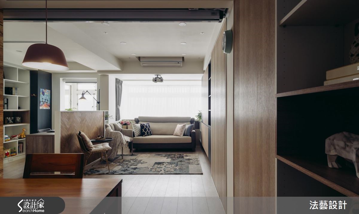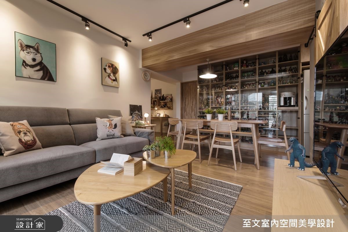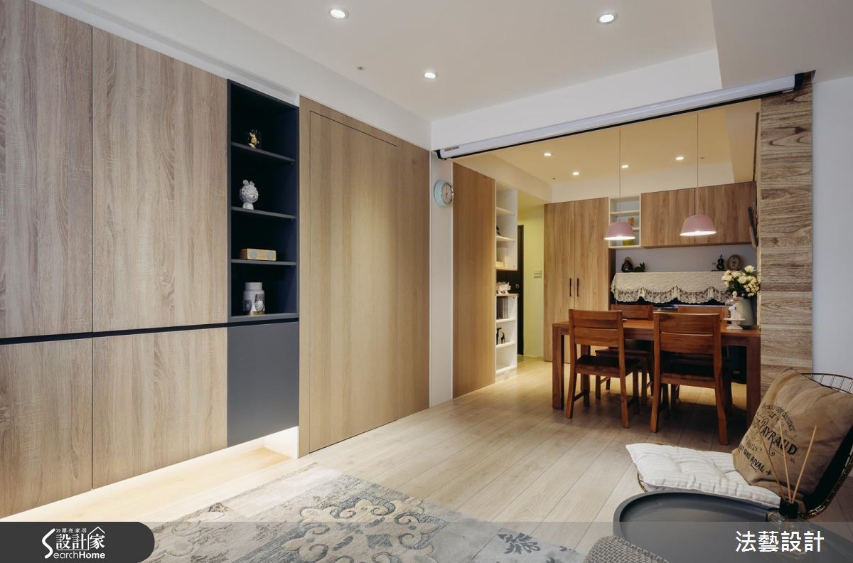 工作忙碌的小夫妻期待居家空间洋溢温馨舒适的感受,由于这是超过 15 年的老屋,旧有木作早不敷使用,加之原始格局狭窄零碎、公私空间皆狭小拥挤,阻挡了采光优势。透过设计团队改造,让老屋翻转成为阳光北欧房!【引入充足采光,空间有效扩容】面对拥有优良采光的老屋,设计师重新调整格局,以开放设计引进充足日光,并进一步释放走道空间,为 2 间卧室争取足够收纳用度,达成舒适、宽敞的需求。为了延伸视觉深度,设计师亦放入大量隐藏门片设计,使空间整体感受更加完整。针对风格营造,设计师以大量木建材表现于墙壁、系统柜面与地面,搭配餐厅大面积文化石,营造北欧专属的温暖感受。主卧延续公共空间的温馨气息,将色调回归纯白,打造无压的睡眠时光。