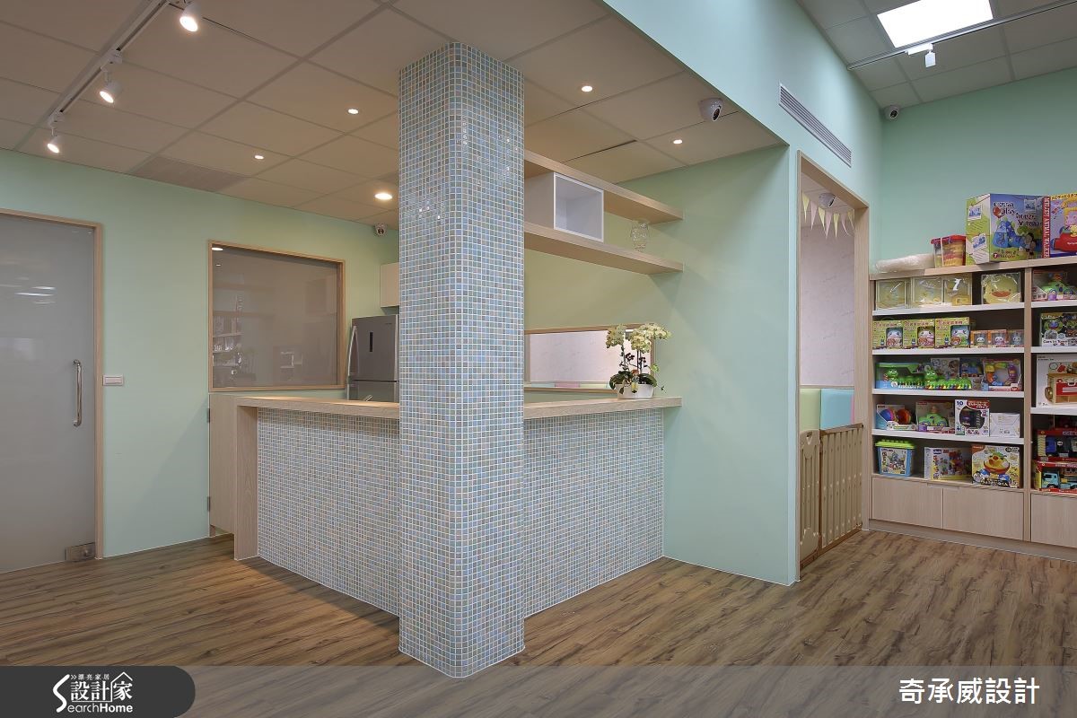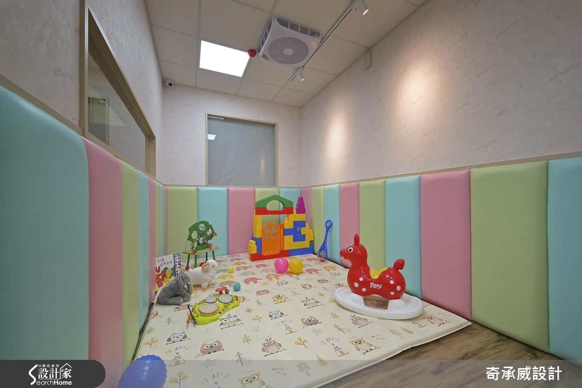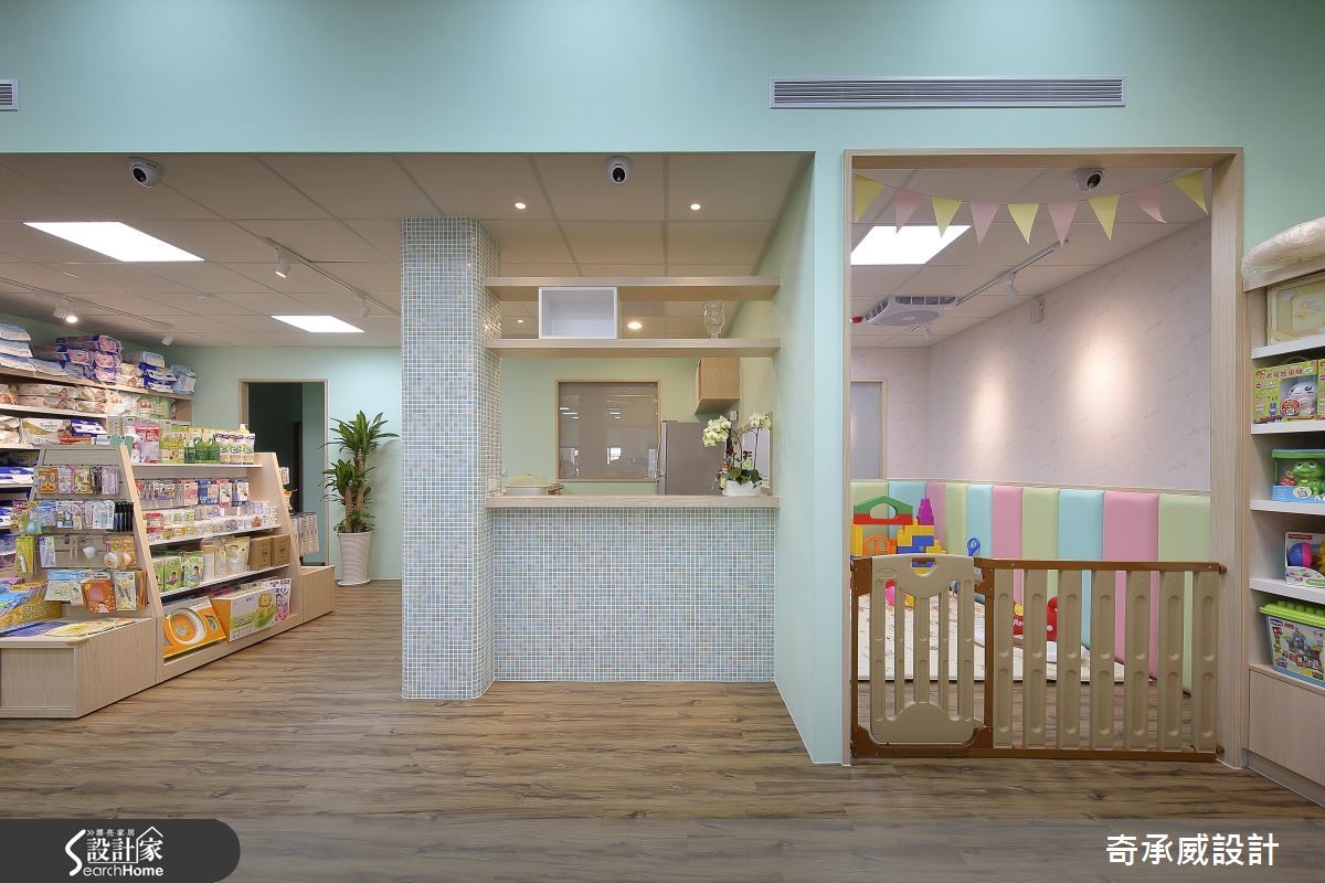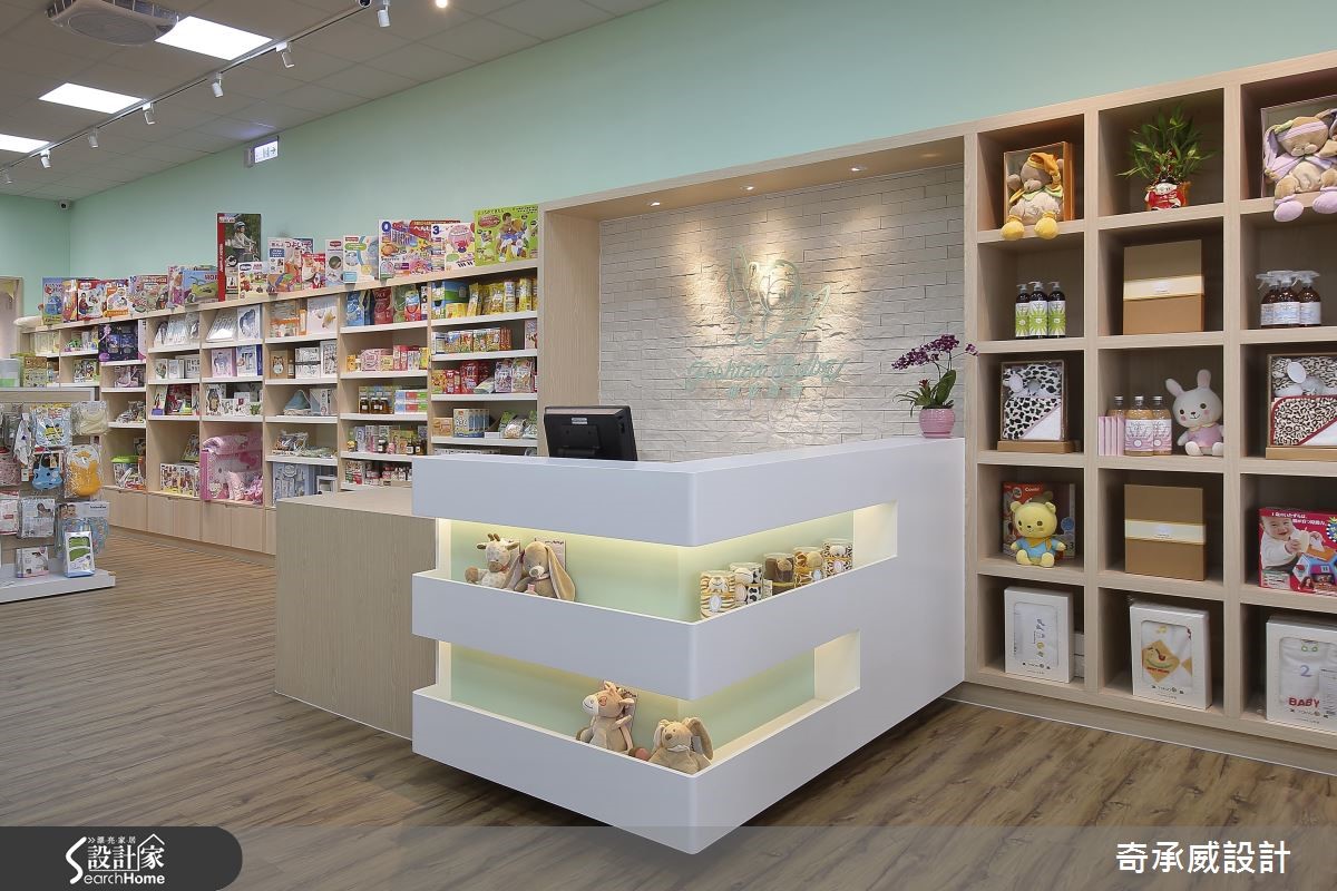 替家里的小宝贝打造一个充满童年、无忧无虑的环境,是每个父母亲的梦想,现在更透过室内设计,创造出缤纷童趣的感受。【轻柔舒服,特色品牌橱窗意象】大门左侧展示区以落地玻璃打造,映衬婴儿车、摇篮等婴儿物件,展现出品牌特色的橱窗意象,成为吸睛的视觉引领,让路过的人们忍不住目光驻留。室内空间里,透过木纹铺叙整体,粉绿色系粉饰壁面,呈现轻柔舒服的氛围。【齐全的展示规划,创造生动趣味】走道的两侧以开放式层架展示婴儿用品,充足的走道规划,带来宽敞感受;墙壁以文化石衬底,LOGO以铁件围塑的方式装饰在壁面上,藉由主视觉的营造展现柜台特色,台面则结合内嵌光源与陈列玩偶手法,创造出趣味气息。【仿造儿童乐园,自然感童趣设计】中央柱体的天花板以悬浮云朵造型展现,结合嵌灯方式,营造出阳光渗透云朵的自然意象;后方的角落还打造一处儿童区,猫头鹰地垫加上欢乐童趣的玩具,结合缤纷色块的铺陈与旗帜符号,彷佛来到一处儿童乐园。