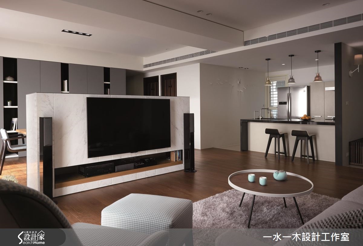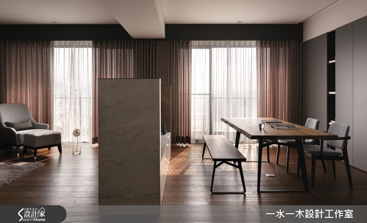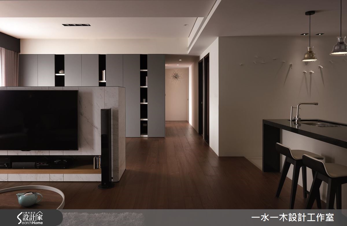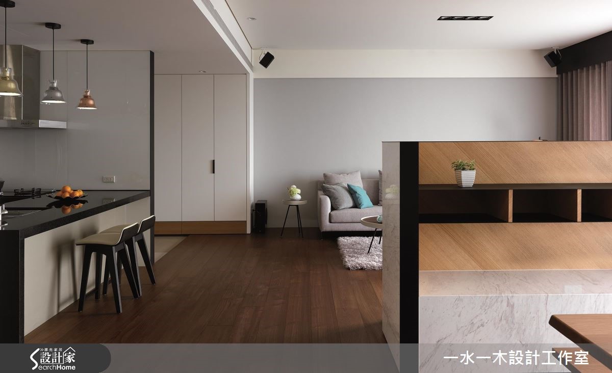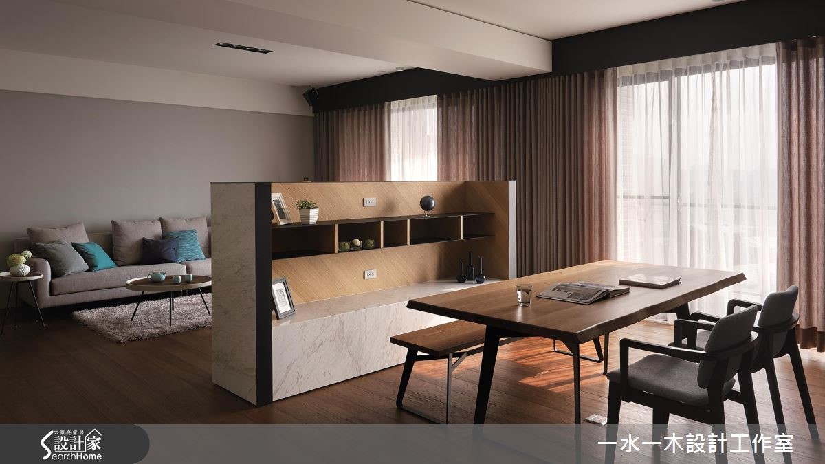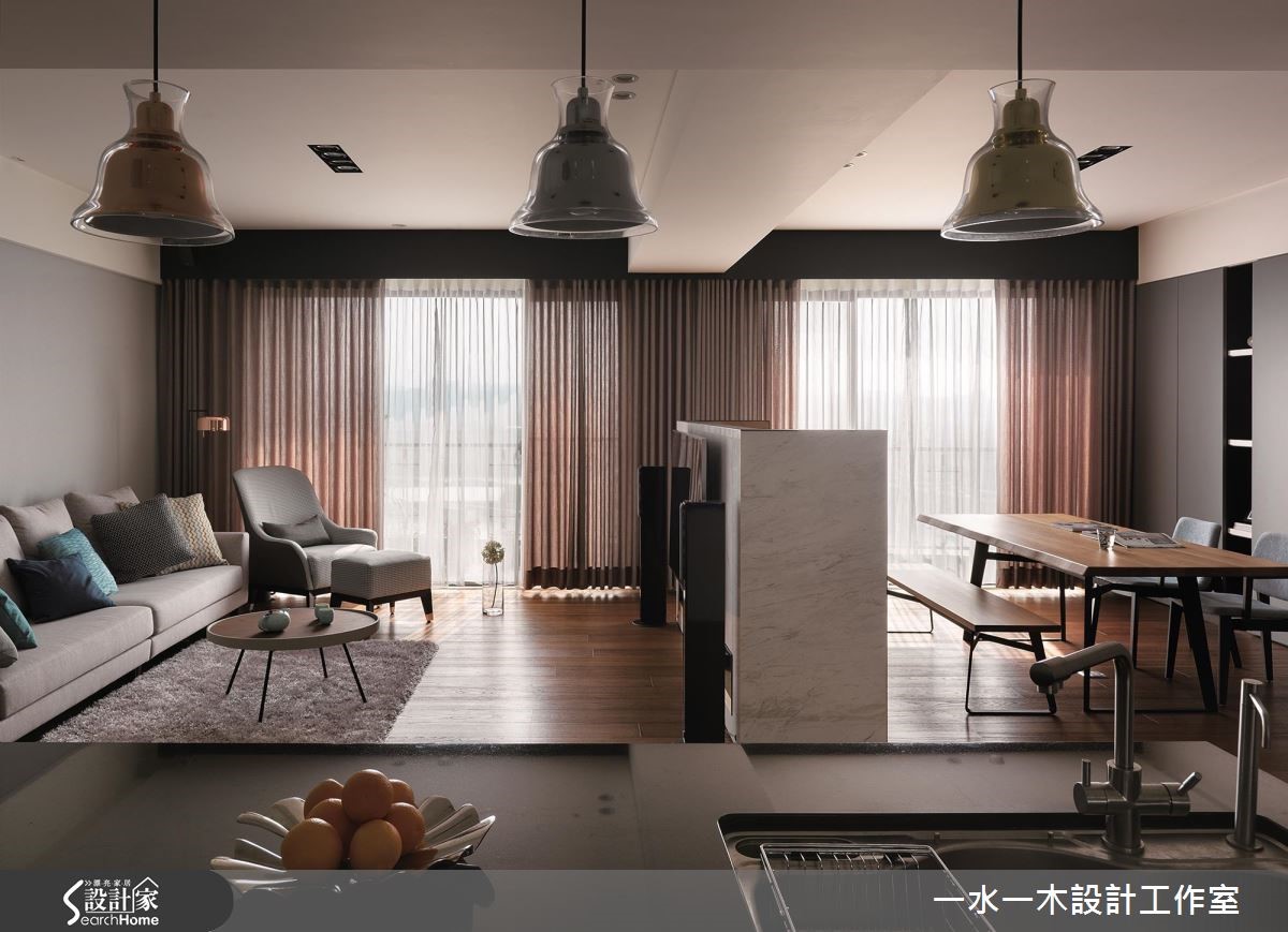 設計師規劃一道不做滿的電視牆、重塑居家場景,不僅滿足收納機能,更達到界定領域、分配動線的作用,透過流動明亮的空間氛圍,打造休閒風住宅的全新視野,快跟著小編一起來看看吧!設計師借引戶外陽光、加入窗簾調節,呈現乾淨明亮的生活畫面,客廳、餐桌之間則揉入開放式佈局,以一道半高電視牆做分隔,保有光線與視覺的通透相連,並藉由一道通往私領域的流暢軸線分化領域,將廚房及廳區無形界定,型塑四通八達、比例合宜的動線格局,而電視牆則一體兩用、背向作為展示櫃,大幅提升立面機能性,搭配灰綠色牆櫃的大容量收納,塑造俐落但機能豐富的場域特色;餐廚吧檯結合流理檯配置,增添整體使用效益,並運用深淺配色營造俐落氣氛,天花採以三盞不同顏色的吊燈畫龍點睛,帶出視覺上的活潑性;臥房內沒有過於複雜的設計,使用灰色壁紙鋪述床頭、營造舒眠環境,同時給予動線導引,除了創造通往更衣間的完整脈絡,更充分保留兩者之間的隱私界線!小編的最愛設計師強調空間中陽光、空氣、水的結合,讓居家成為一個開放大框架,使居住者可充滿安全感地活動於其中,帶動高自由度的起居型態!