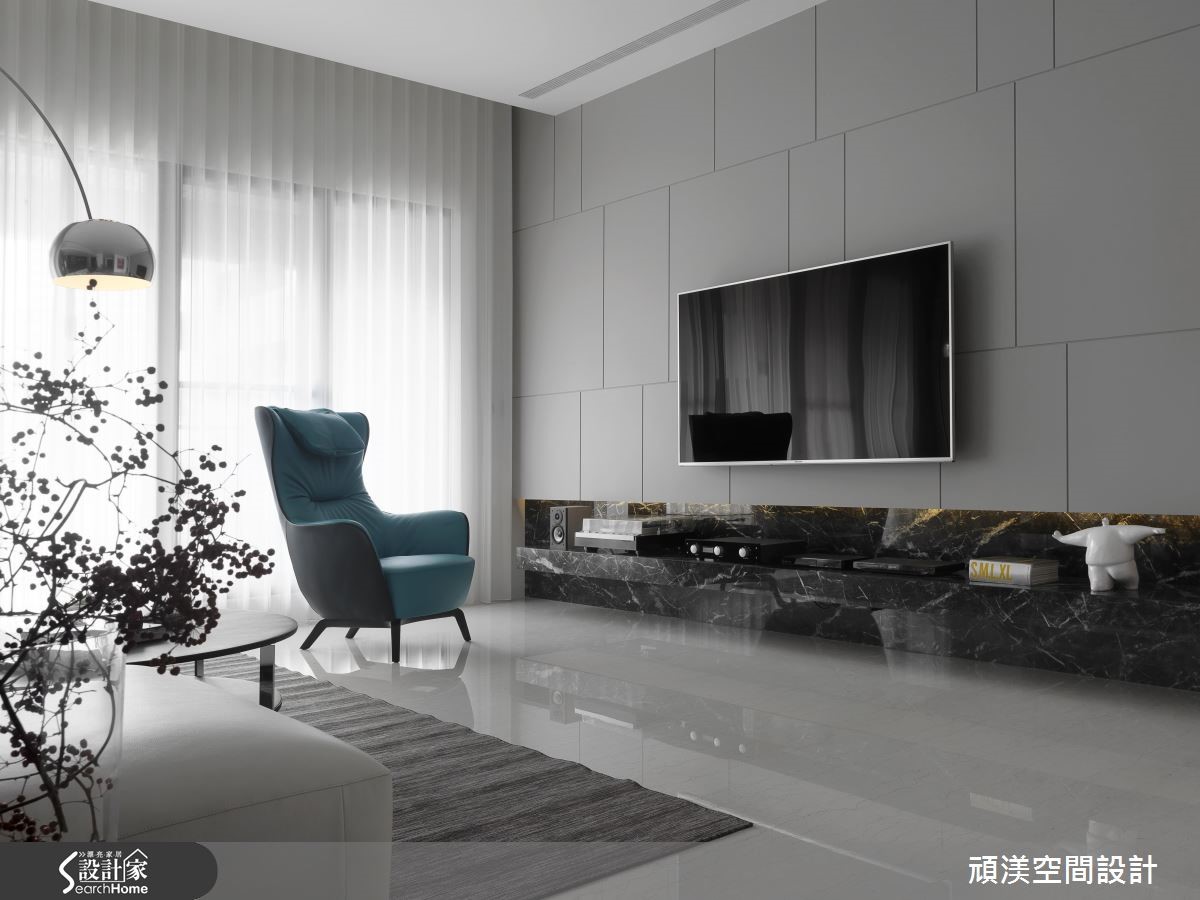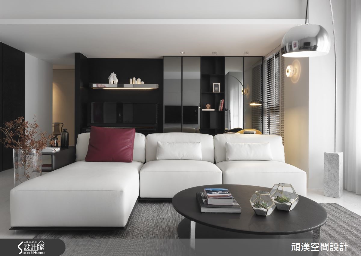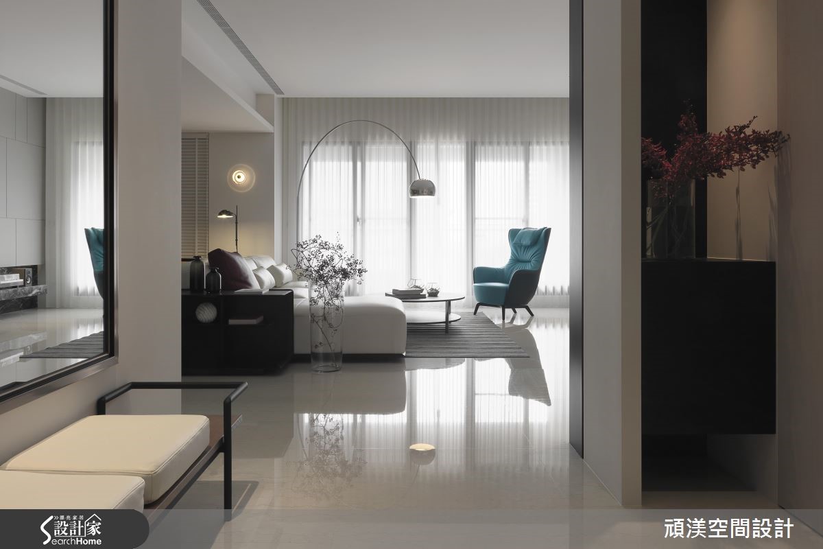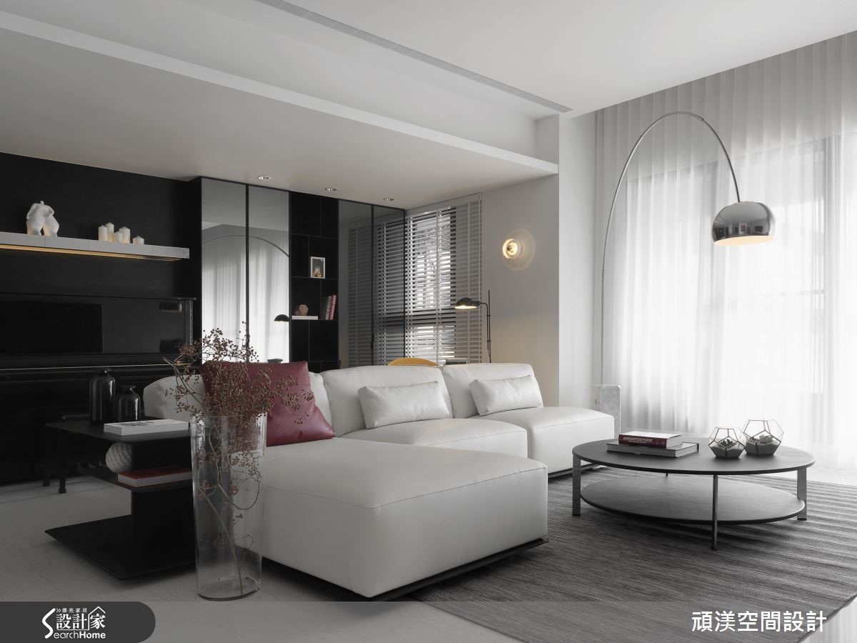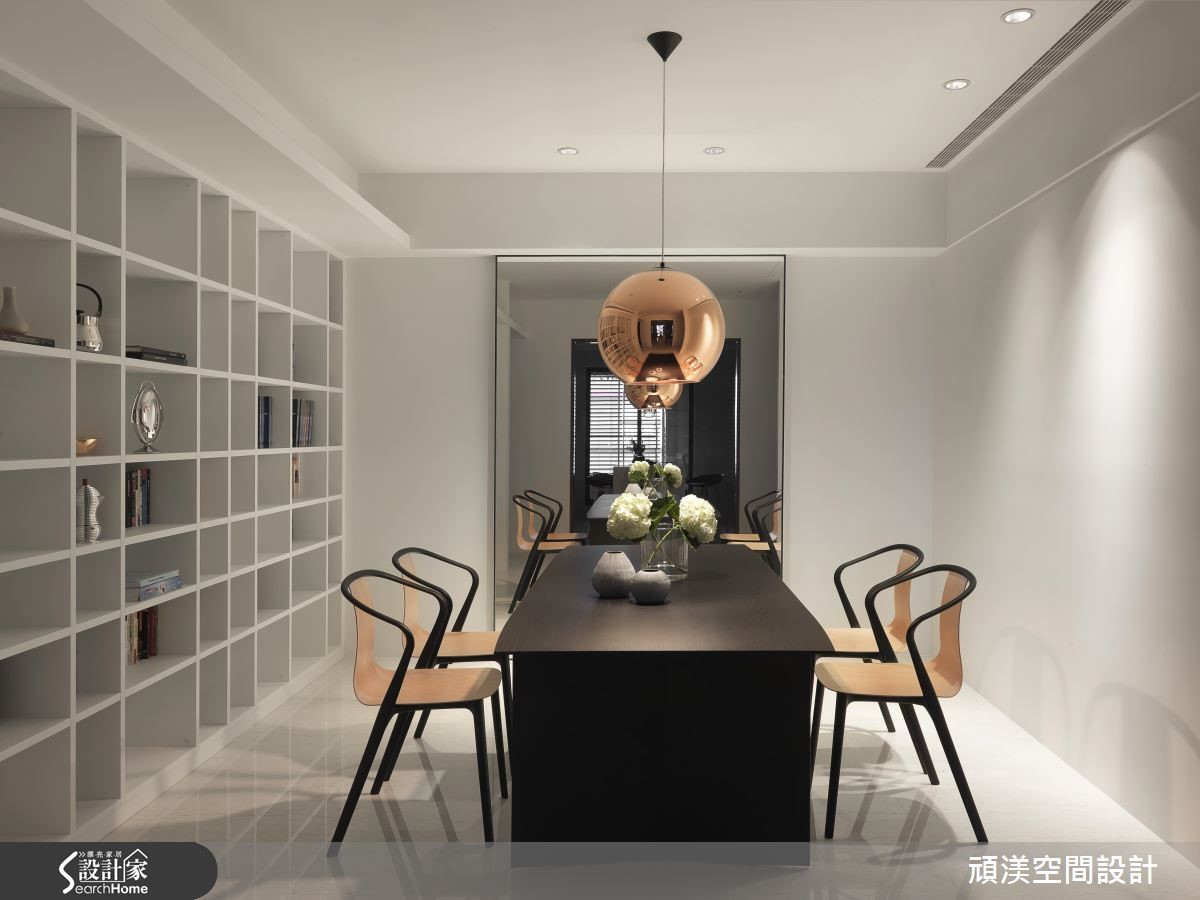 设计师将198平方米居宅视为一块画布,运用素朴色调保留自在本质,再运用独到的美感及技巧手法,融入大量日光、跳色家具妆点,让空间呈现宽敞而唯美的表情,快跟着小编一起来看看吧。 【放大净雅白色,点缀明亮色彩】玄关规划整衣镜、穿鞋椅机能,藉拓宽廊道与加大镜面,增添入口的空间感。进入厅区,阳光透过窗帘筛落室内,搭配极简素朴的色彩基底,型构舒适的生活,而一座拋物线造型立灯,以优美弧度化为视觉引导,聚焦于跳色单椅。电视墙加入不规则的交丁线条,巧妙呼应开放书房内的柜体造型,并借着镜面的反射特质,以及餐厅于墙面配置大面积镜子,创造延伸错觉。天花采以金属吊灯凝聚视线,衬着暖色的木皮单椅,在白色底调中显得和谐且工整。