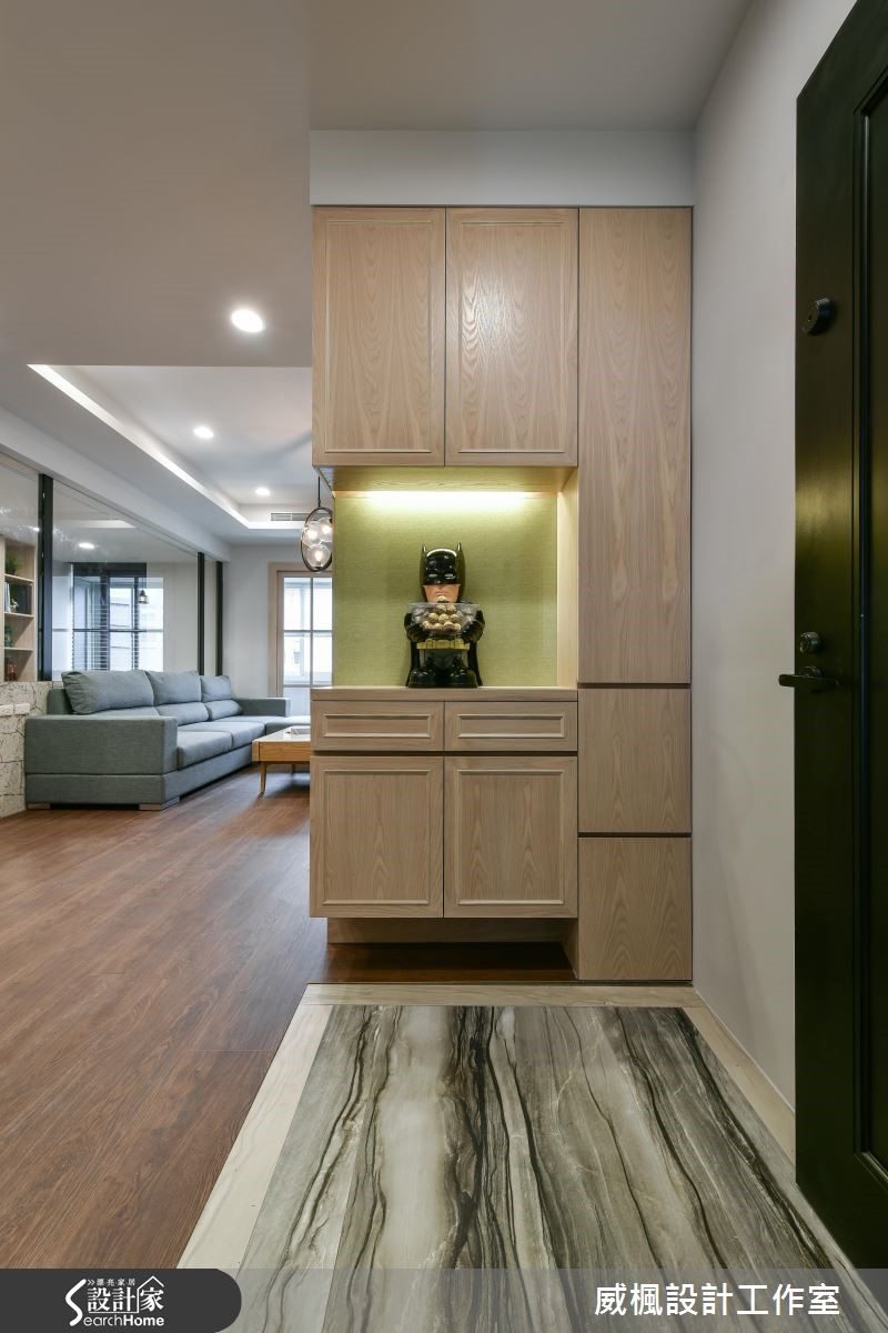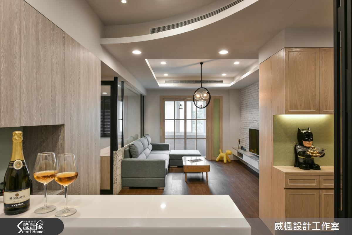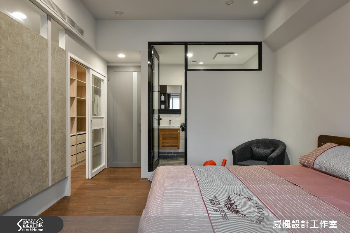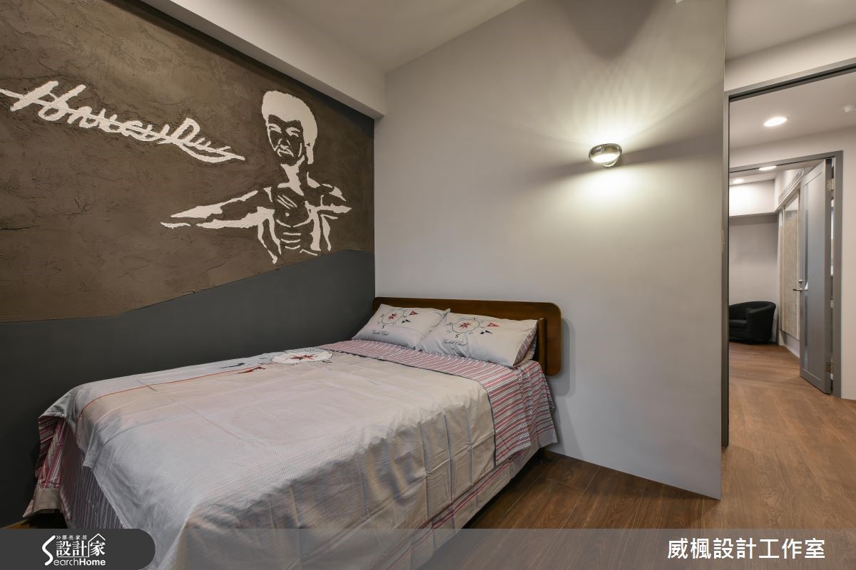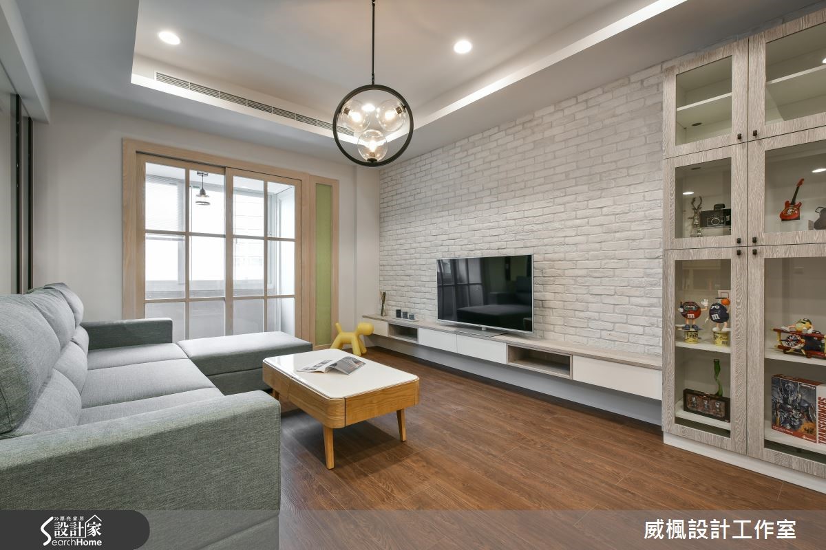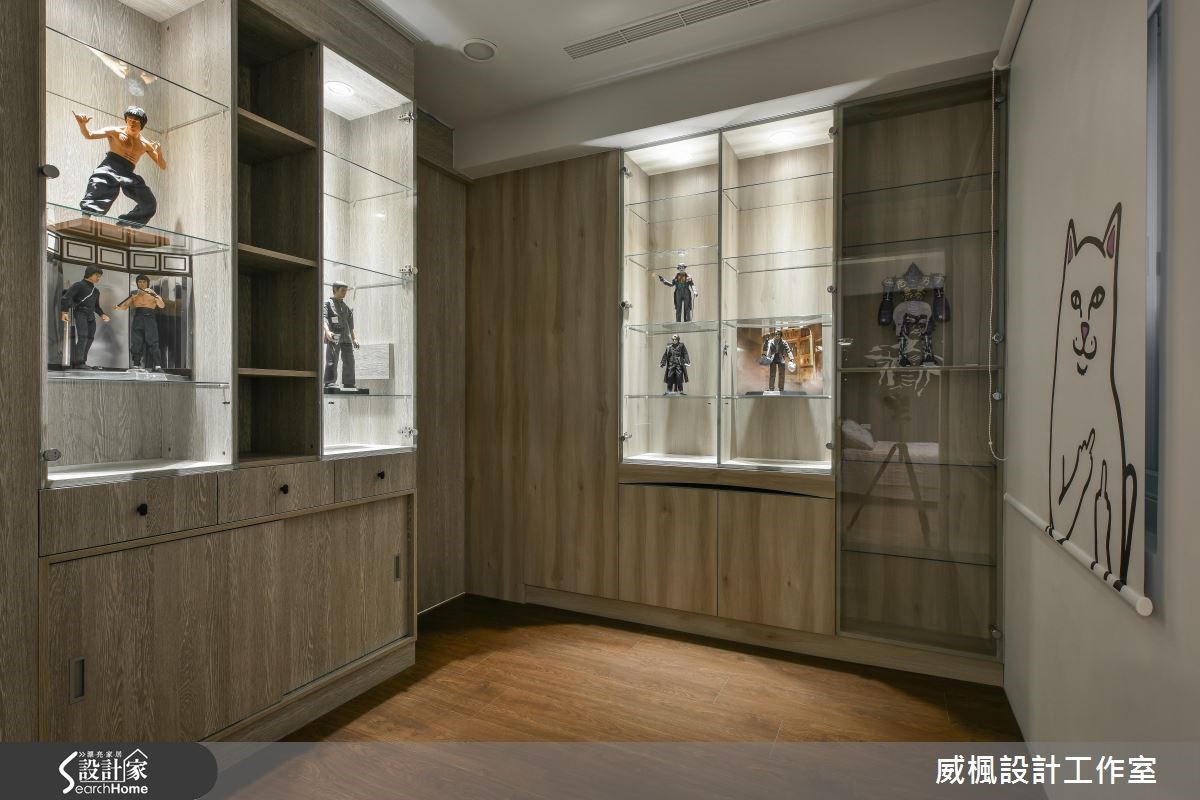 姊姊想要独立书房,弟弟则想为公仔们打造专属的收藏展示区,因此,设计师在99平方米的简约住宅中,除了各自的卧室规划,并透过合宜的收纳规划和格局比例,达成屋主姊弟对于新生活的期待。【玻璃隔断,让空间通透又宽敞】公共领域以开放式设计结合客厅及餐厨空间,并藉由温润的木色系搭配文化石墙,为生活调制出温馨人文感。为了营造更宽敞的空间感,后方书房舍弃实体隔断的局限性,改以玻璃与客厅划分独立性,并赋予丰富的收纳空间和飘窗休息区,令书房兼具多重机能性。走进姊姊的卧室,除了睡眠区,也规划独立盥洗和更衣间,使私领域完整舒适;弟弟的房间则以石头漆创造出率性不羁的墙面,并绘上屋主喜爱的英雄图像,一旁更设置大量的展示收纳柜,让屋主能收藏喜爱的公仔,完全满足大男孩的梦想。