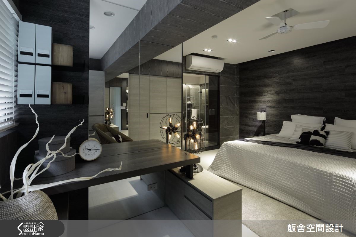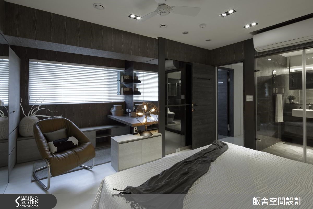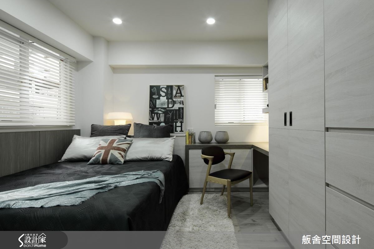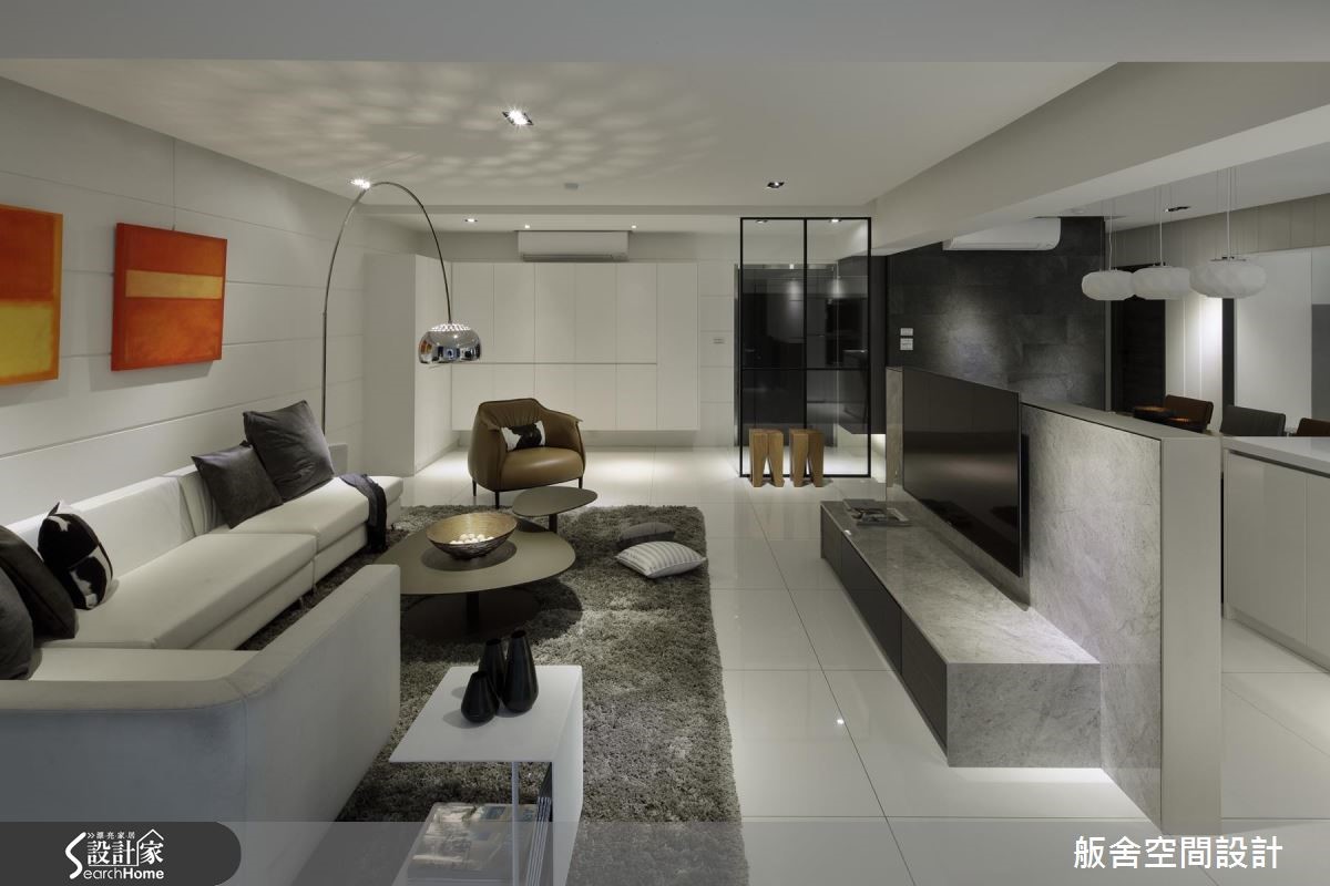 149平方米的老屋,以白色系作为空间基底,彷佛是一块创作的画布,米白、灰、黑与大地色系成为家具配色,调和和谐、静谧的自然感受,橘黄跳色的画作点缀,展现新颖的艺术风采。 【舍弃隔断,以开放设计串连感情】整体空间以通透感的设计为核心,无刻意拉出玄关区,仅以一片由铁件与玻璃打造的隔屏切割出内外界线,上半部铺贴灰玻,半透视的质材特性,带来些许隐密感受;而客、餐厅则利用半高的电视墙界定领域,增添家人互动的频率、提升情感温度。餐厅与厨房相融唯一,木作的餐桌搭配金银两色调的椅子,上方垂挂三盏灯笼造型的灯饰,引入唯美的中式优雅,而餐桌连接中岛台面,创造出两侧烹调与用餐的动线,宽敞舒适又不失生活机能。