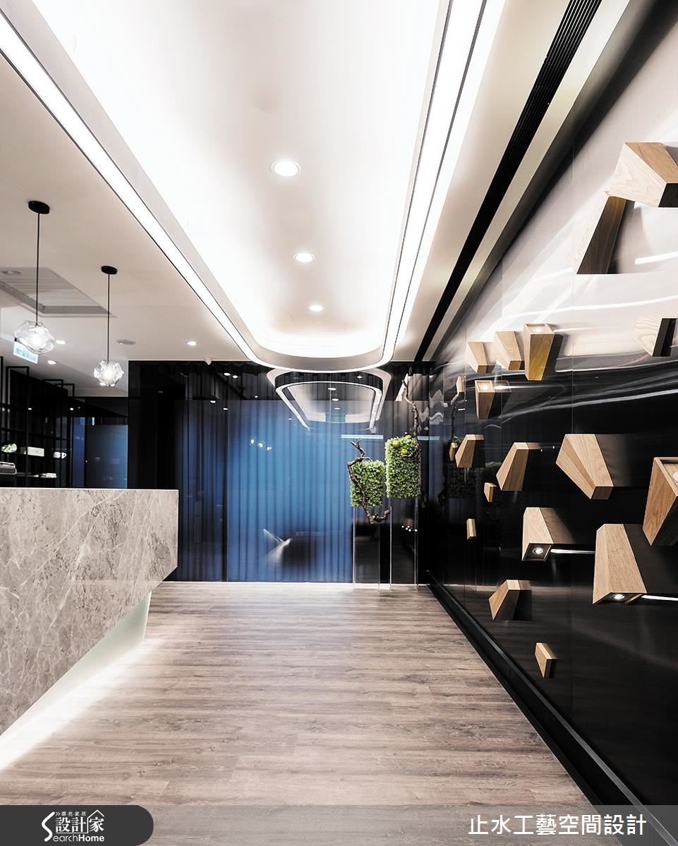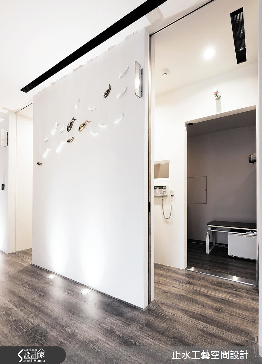 231平方米的二手房,前身为办公室格局,设计师将其改为病院诊所,以现代风作为基底,空间配置上则依循业主的专业需求作规划,将重点放在材质、色彩运用及灯光氛围掌握,成功转换病院的冰冷印象,带入居家般的舒适感受,快跟着小编一起来看看吧! 【沉稳木色及镜面,造优雅印象】大门运用局部雾面玻璃达成通透效果,促使室内外的串联,搭配大面积白色大理石铺述,延伸出优雅的门面印象。室内透过轻盈的颜色与建材,呈现内敛清淡的氛围,结合染黑木皮、深色镜面妆点,带入黑白对比的时尚感。灯光营造空间气氛,使整体温馨不失时尚,柜台加入特殊角度切割,营造漂浮感。并规划一道独特的金属墙,透过不锈钢镀钛结合温润木作灯饰,在冷暖材质与光影转换之中,创造装置艺术的趣味。空间布局上,导入全新的流畅动线,以各种形式的移门清楚界定问诊间的位置,但保有走道立面的利落度,营造放松的空间感。如同居宅客厅般的候诊区,则陈列着大地色家具,并引入明亮且温暖的采光,纾缓患者看病的紧张心情。