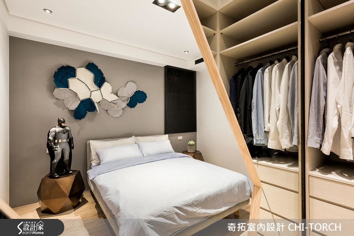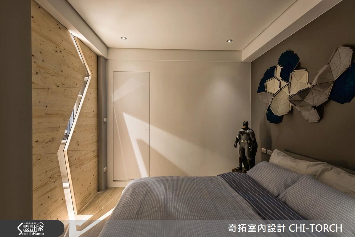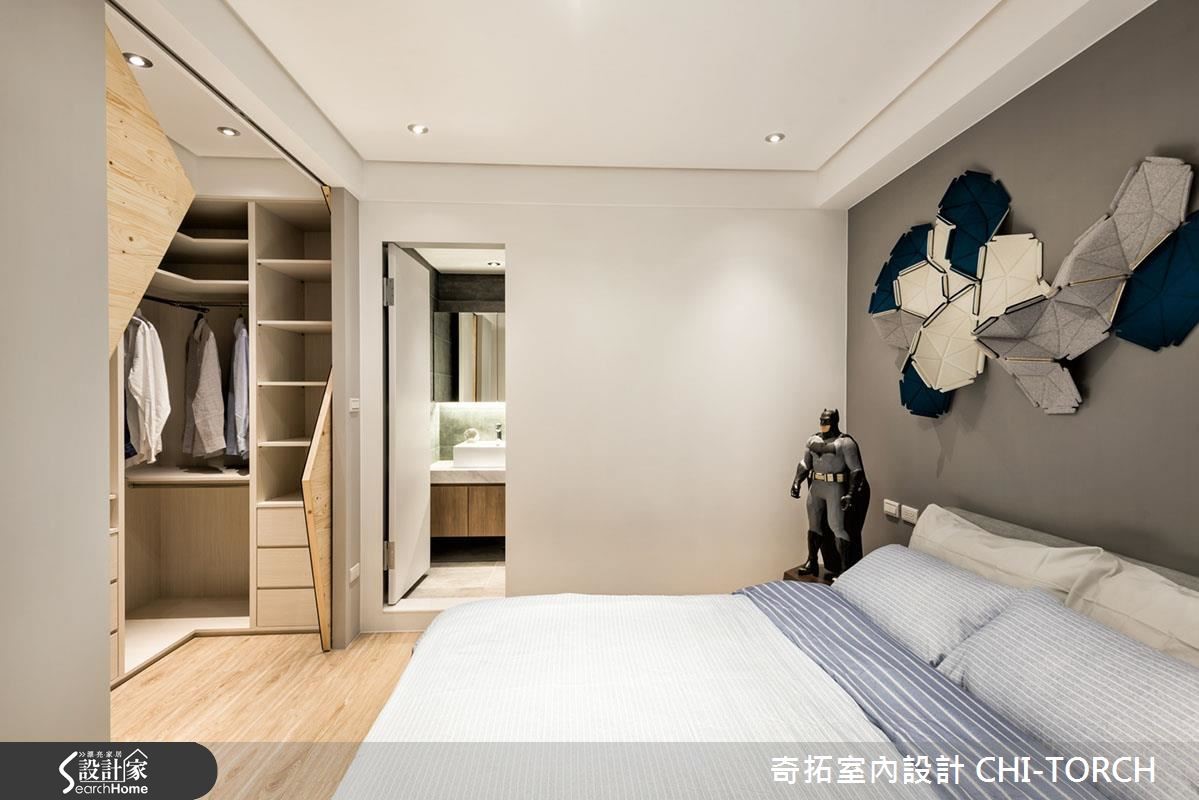 温和的老公、别具想法和个性的老婆,这86平方米的住宅以数学上的总和符号"Σ"为设计概念,象征不同居住者的个性。并融入木材和铁件等不同材质,将住了 30 年的旧屋,完美改造成夫妻梦想中的muji现代宅。【闪电形切割,创造惊艳的更衣室】结合客厅和书房的开放式空间,让公共领域成为家的重心,不但解放了整体空间感,也成为屋主和家人日常谈心、交流的舒适所在。书房后方规划整面的展示收纳墙,并顺应采光条件,保留了四面上下错落的对外窗,搭配柜格的深浅层次,形塑出活泼动态的视觉效果。公领域走道旁利用烤漆玻璃,打造出属于家人间的留言板。主卧室为满足女屋主对于大更衣间的需求,在房间内划出独立的更衣区,打开两侧闪电形的实木门片,随着光影的乍现开放,为衣柜空间带来深具气势的登场效果。