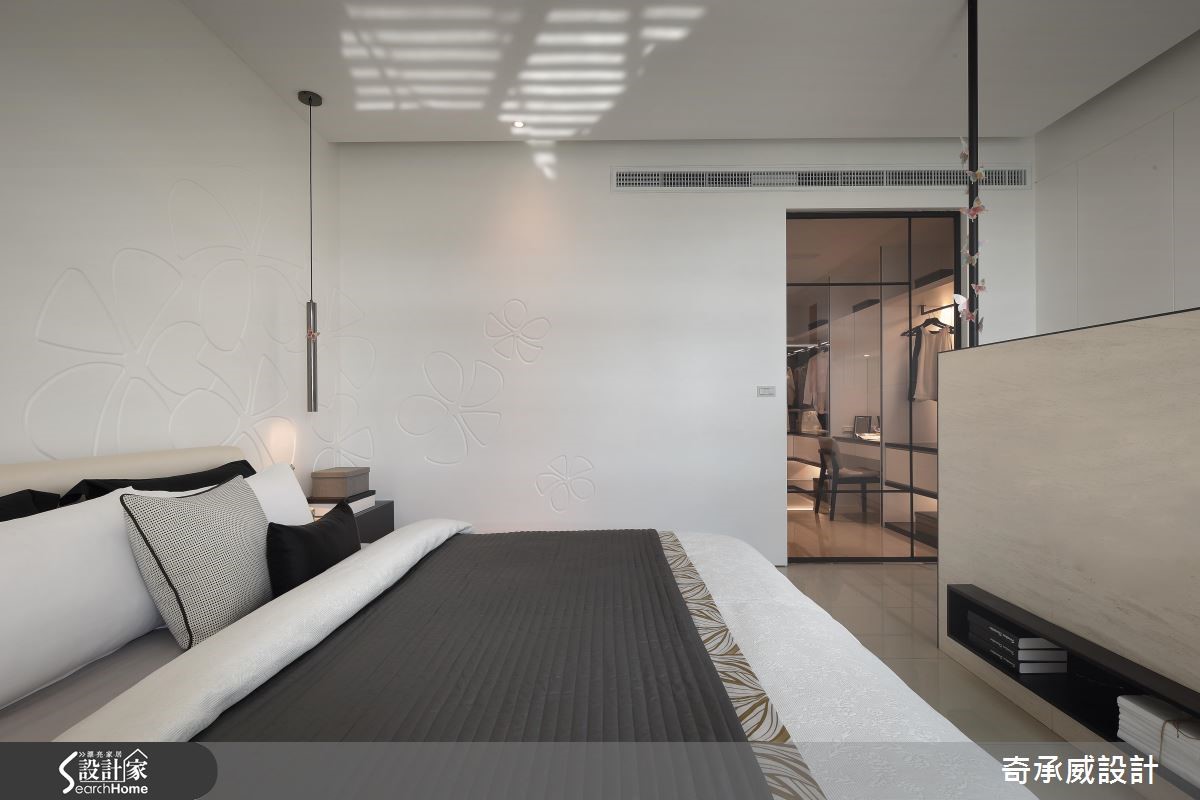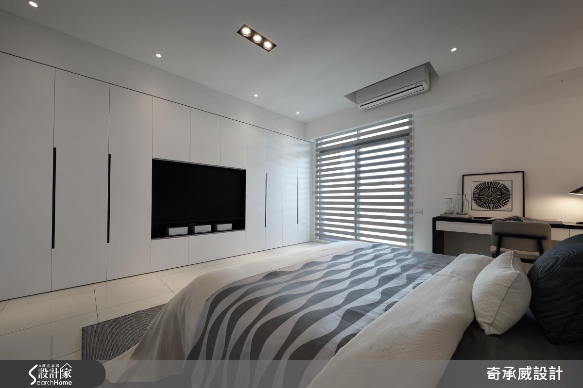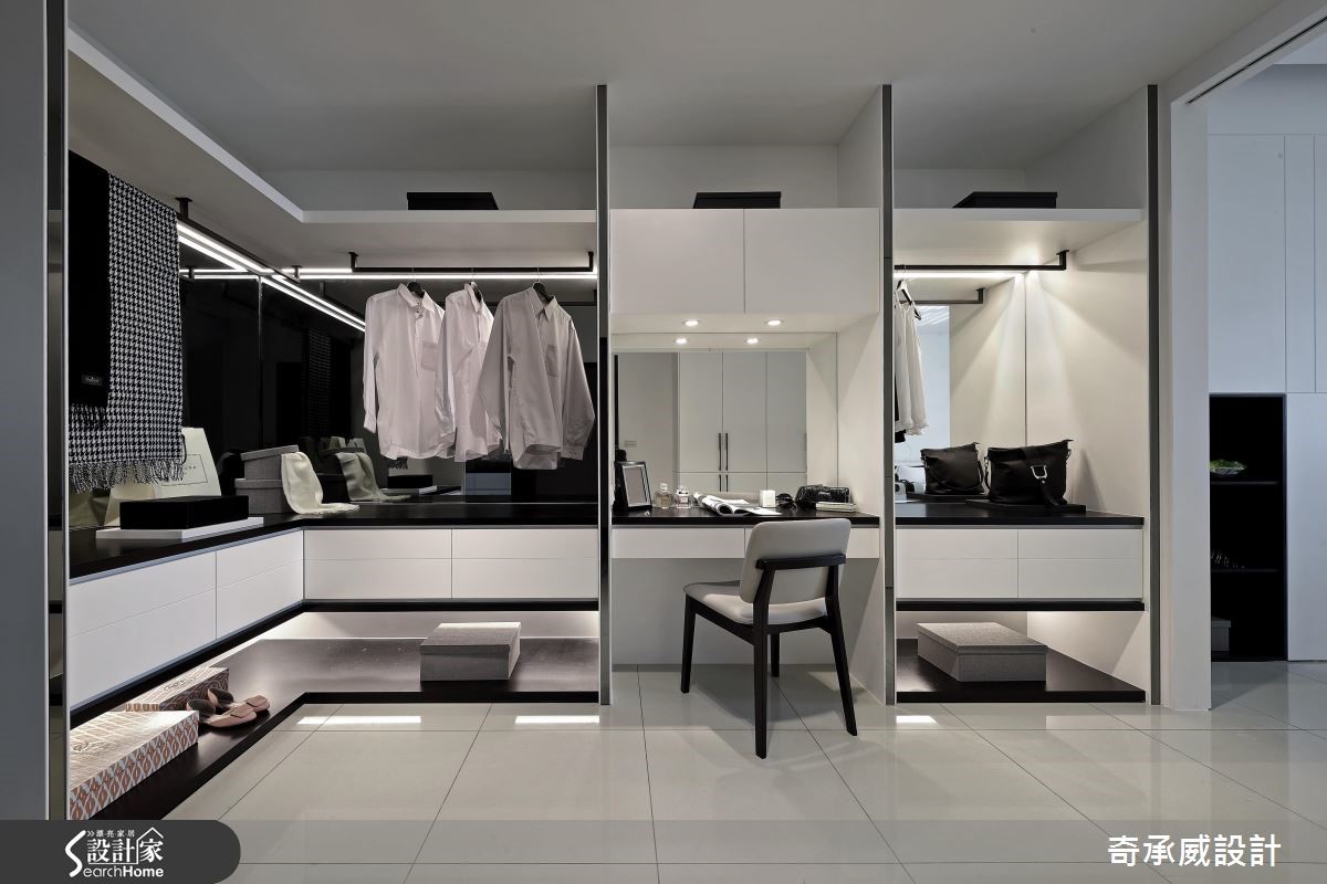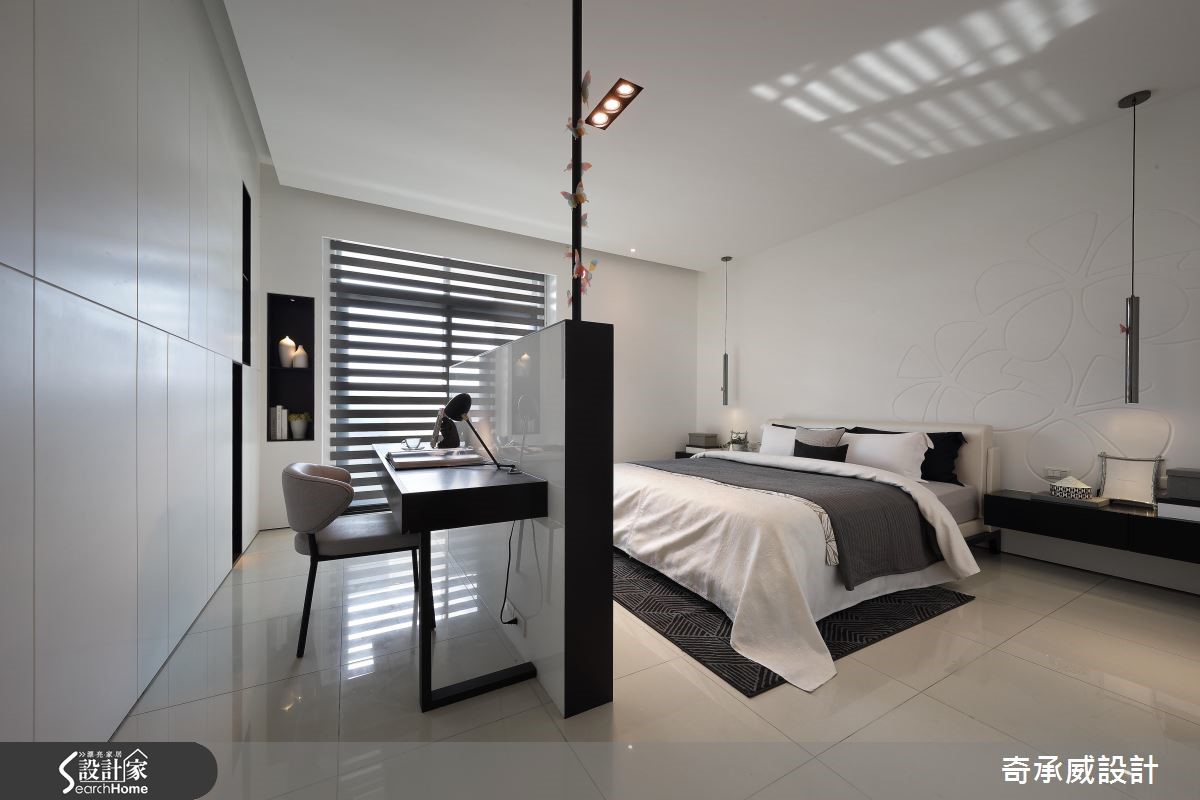 两个世代共享透天别墅,如何照顾长辈对于动线与机能的需求,同时符合子代对于风格的需求,显得时尚简约呢?且看设计团队巧手改造!【开放设计与流畅动线,备感大器】公共空间以宽敞的开放设计与流畅动线见长,以纯白色调为基底,搭配明朗活泼的鲜黄色家饰品,配合凸窗结构,将飘窗纳入窗下,接收充沛的采光。电视墙采用雪白银狐石材搭配对称灰镜设计,在纯白空间中彰显大器质感。【私领域回归简约,赋予完善机能】餐厅走道旁以柜体提供收纳,镜面则扮演视觉放大角色!利用一道铁件灰玻移门划分餐厨,避免油烟溢散、打造利落线条。私领域回归简约,以黑白调性体现在材质上,简约不失层次,并结合书房、更衣功能,使机能更完善。