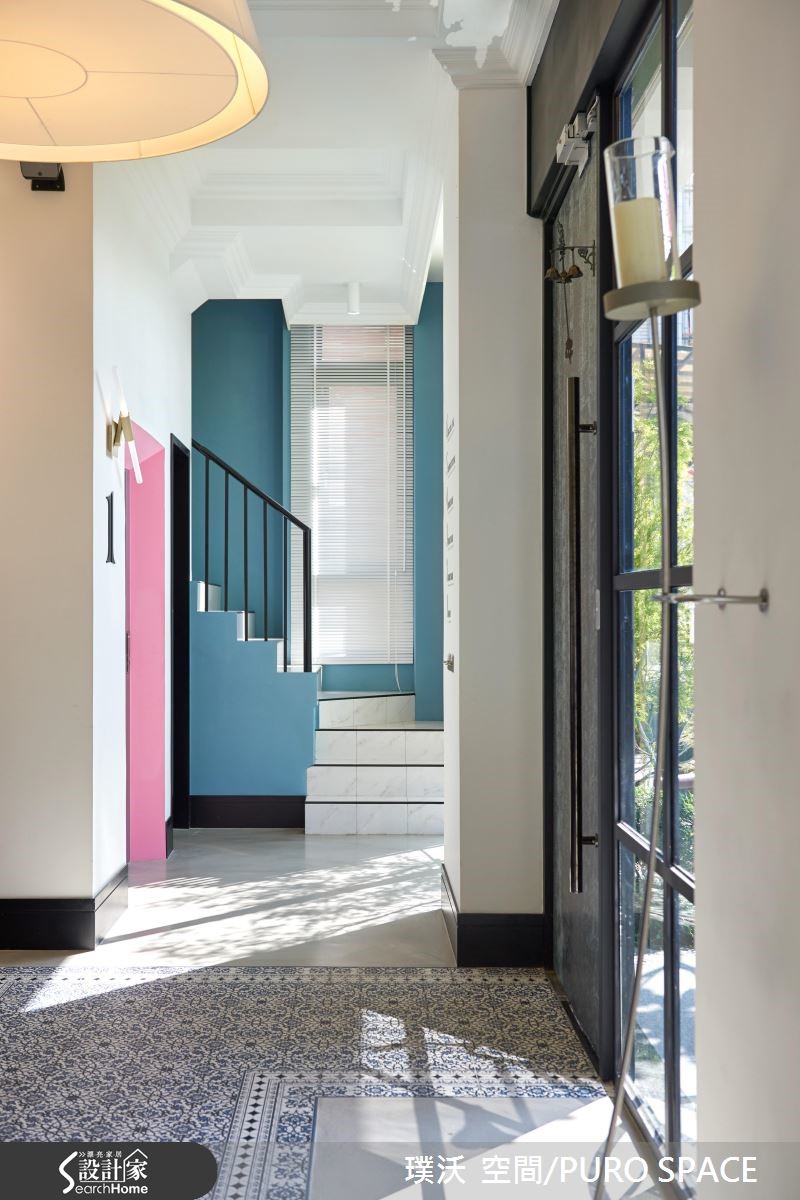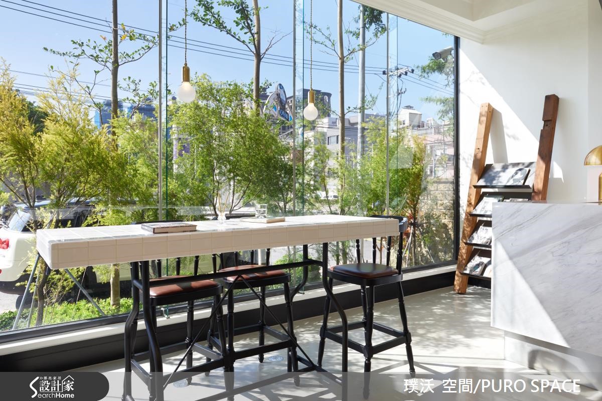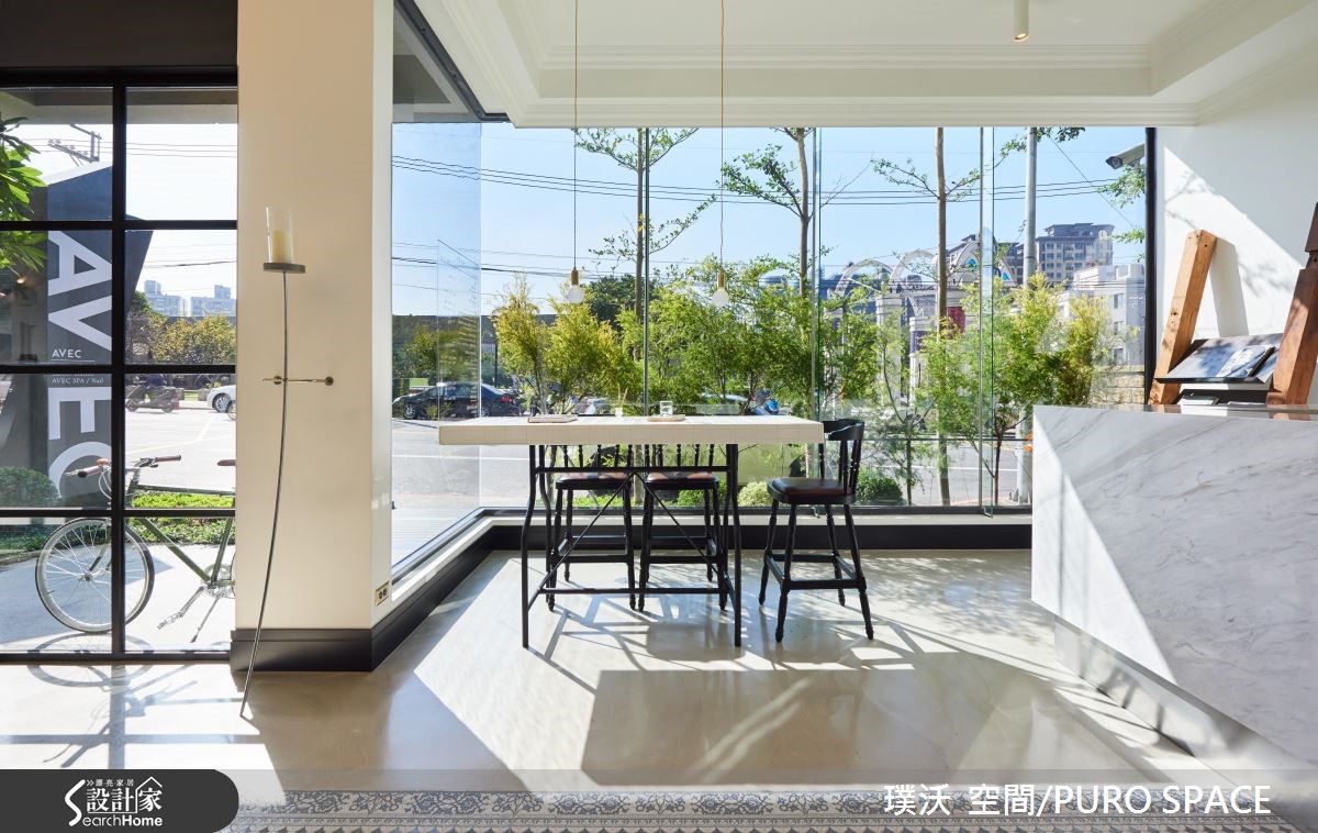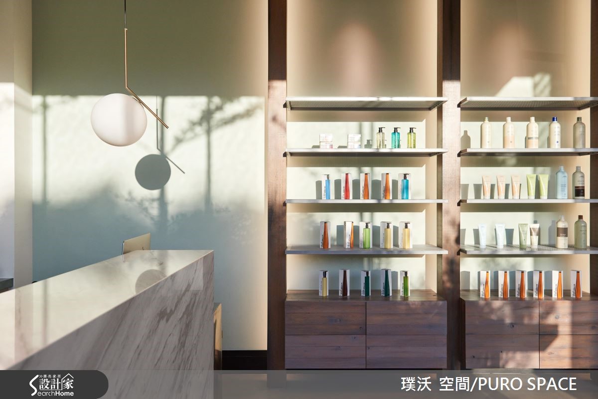 AVEC SALON为业主自建的7层楼美发沙龙,采用并贩卖知名美发品牌Aveda产品,为了切合对于美发的专业形象,并结合美感与时尚,设计团队分别在建筑外观、接待大厅与各楼层体现配合各式美发、美甲打造专属的风格设计! 【引景入室,为大厅带来时尚美感】建筑外观与大厅设计将重点摆在彰显简约的时尚美感,进一步营造宛如欧式精品旅馆的设计概念。建筑本体联合建筑团队完成外观,以清水模质感建材铺叙外墙,象征专业有条的精神,并以大面积铁件落地窗导入充裕阳光与绿景,将内外的隔阂降至最低。【利用材质堆砌,创造多元风格】大门采用青铜漆与实木,注入复古的时髦意象,入门即可看见商品展示,以春藤绿与木质石材展示架衬托商品,作为迎宾装饰。柜台以大理石搭配不锈钢,地坪则以花砖结合无接缝树脂地坪,为多重风格带来微妙平衡,同时不失冲突美感。临窗长桌不仅能提供贩卖、说明与实作解说,更能给予宾客于候位、结账与交谊时,拥有宾至如归的高雅感受。通往其他楼层的电梯与楼梯,特意以粉红与粉蓝色调打造梦幻气息,成功吸引注目。