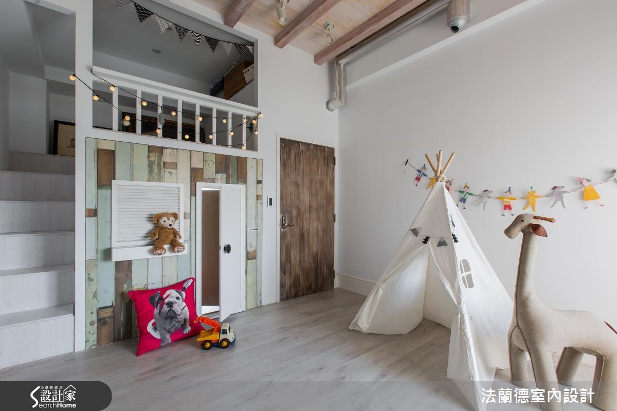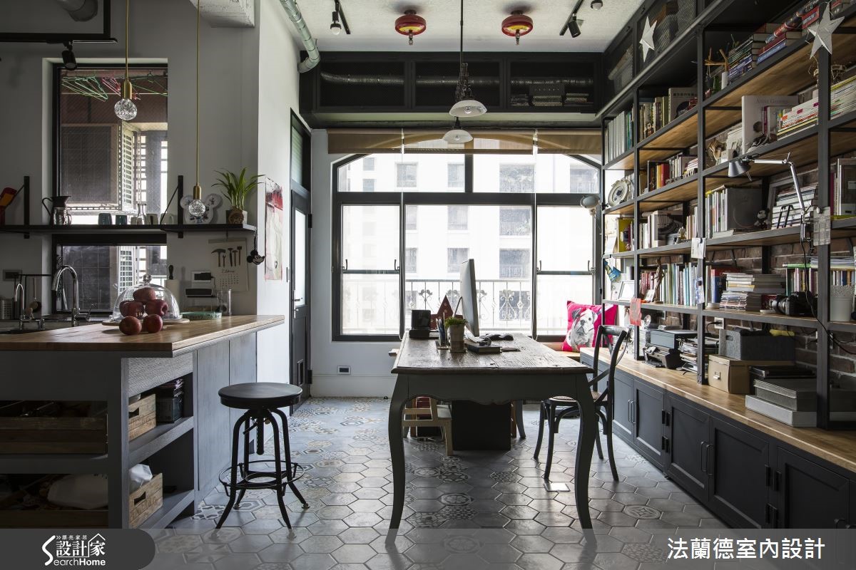 融入红砖墙、铁件等个性元素,138平方米空间的美式工业风住宅,浓缩了屋主在西方求学时的回忆;且因为向往开阔自由的大空间感,设计师将原有三室改为两室,让各个领域一并扩容,孩子及宠物也拥有充足的活动空间! 【三面落地拱窗,视野超开放】20年的旧房翻新,去除一室隔断,让给客餐厅;同时善用原有的落地拱窗设计,不仅营造出欧美式的异国氛围,也改善了通风,并发挥三面采光的优势发,让整体空间看起来更加宽敞明亮。公共领域的天花保留水泥的朴拙痕迹,搭配复古的红砖墙面、铁件等材质,散发强烈的工业个性;再以不同的家具单品混搭,更可以随着需求移动沙发桌椅,形构一处充满自由弹性的生活空间。继续向内部深入,铺排着六角复古花砖的地面,自然而然地划分了空间的界。开放式的厨房及用餐区具有流畅的动线关系,工作区则邻近采光明亮的窗边,洋溢悠闲的光感氛围。走进私领域空间,主卧室包含卫浴及收纳等,靓黑色的人字拼木地板,展现出私领域时髦不羁的个性感。儿童房附有一处小阁楼,下方可作为储藏室用途,而仿旧感的卧室门片和墙面,可见将Loft风格搭配在细节里。