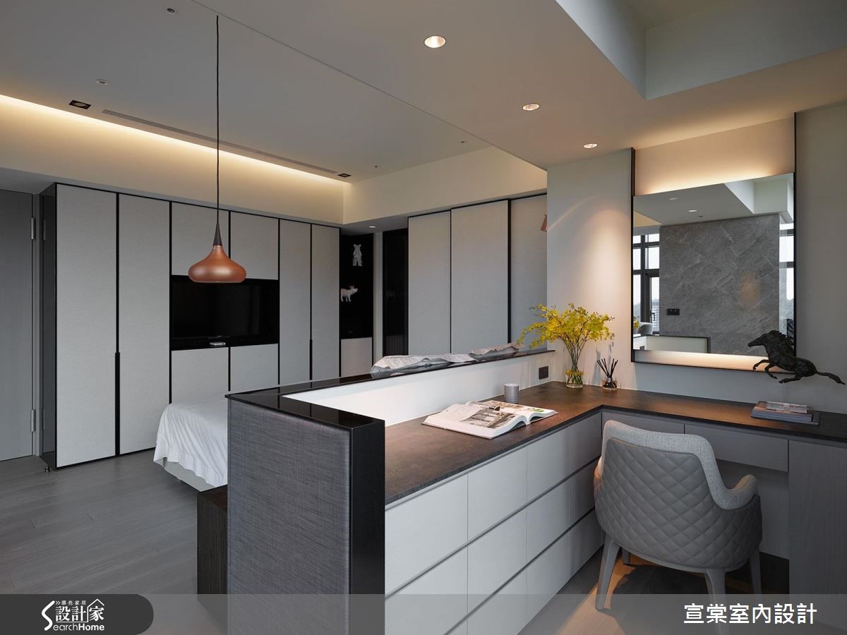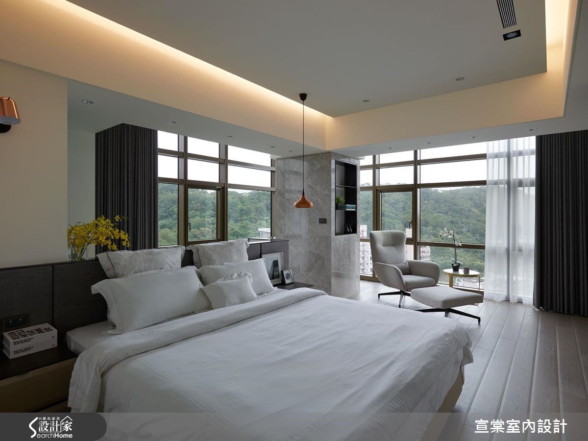 现代风居宅位处高楼层,有良好的视野采光,可惜格局较为封闭、厨房收纳不足。于是设计师保留先天优势,并重新整顿隔断,运用双面沙发的摆设,打破传统客厅风貌,让景观、机能与空间美感一次到位。【畸零角落,可规划为宠物天堂】将客厅后的小居室拆除并入公领域,拓大客厅,并以双面沙发陈列,一端面向电视墙,另一端则朝向壁炉结合收纳柜,再搭配格栅、风琴帘等不同窗面设定,让同个空间可同时拥有待客、休憩功能。壁炉旁的畸零角落则专为宠物设计,让主人与宠物可享有温馨的陪伴时光。把厨房隔断拆解,增设一处吧台,于吧台下方加入收纳并嵌入电器设备,满足原始机能不足的问题?主卧室则规划成复合主题,将梳妆、起居、睡眠等功能集结于一室,同时注入清爽的用色,衬出窗外大面绿意的美好。