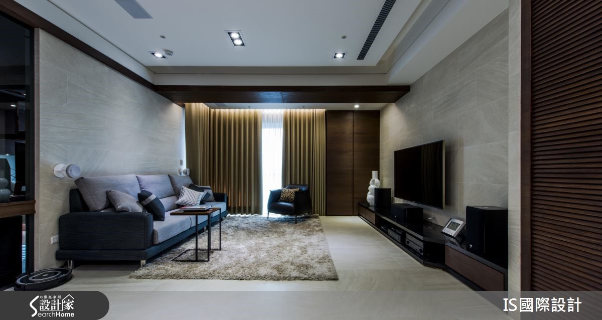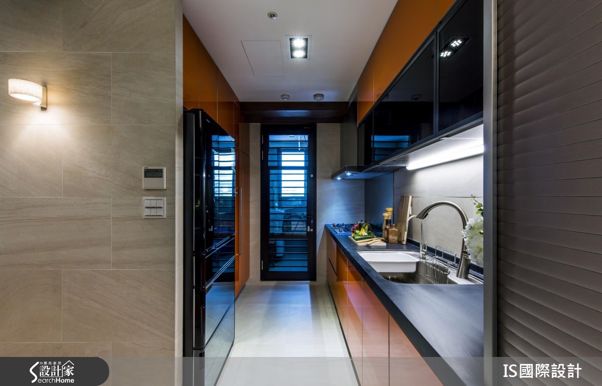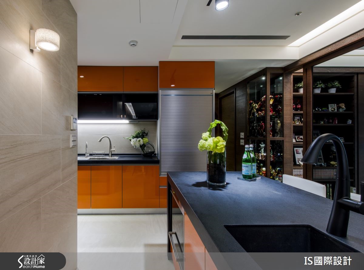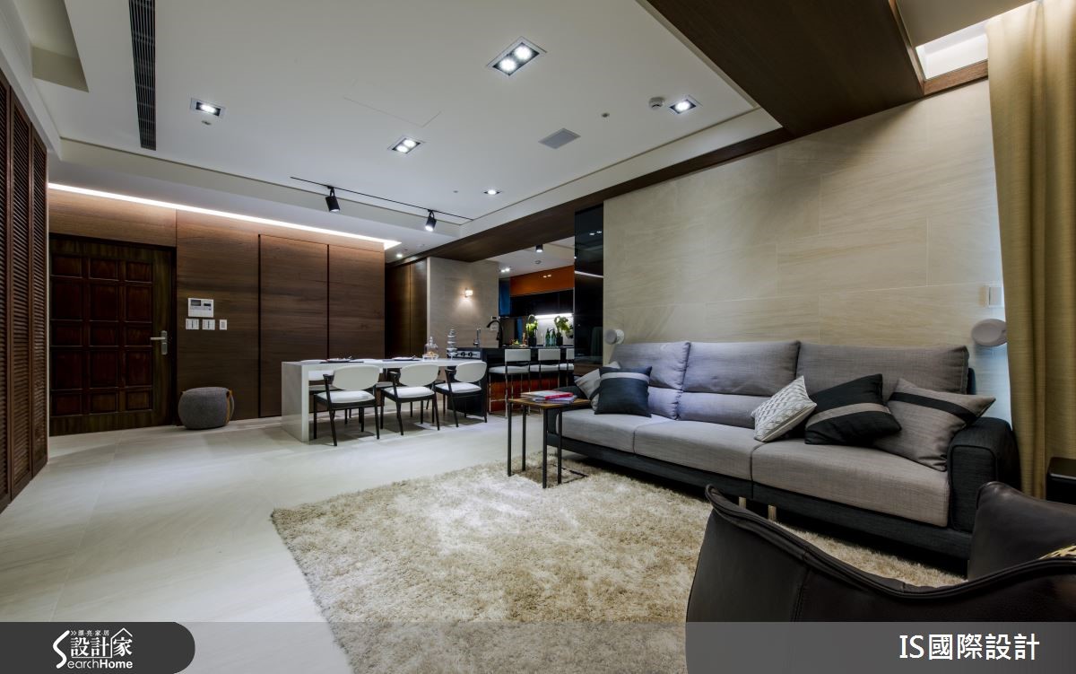 这是一间116平方米的住宅,但设计师掌握优势条件,成功消弭空间压迫感;同时运用线条勾勒,以及合宜的色彩比例分配,让老屋瞬间焕然一新,开拓出大宅般的开阔视野。【开放中岛,导引流畅动线】此案整体运用深色木皮搭衬浅色木地板,注入自然稳重的居家氛围,并整合立面线条,透过延伸柜体串联场域。天花梁柱则运用木质包覆,不仅拉抬视觉高度,亦型塑出四平八稳的方正格局。设计师特意在窗边摆放一张单椅,营造随兴的生活感受。延续着屋主的使用习惯,设置开放式中岛吧台,导引流畅动线。一旁相连的是多功能书房领域,以深色玻璃作出隔断,在通透之中维持领域隐私性。再刻意外推柜体,展示屋主的收藏公仔。不仅延展更多收纳,也让廊道变得不再单调,拥有与众不同的吸睛亮点。