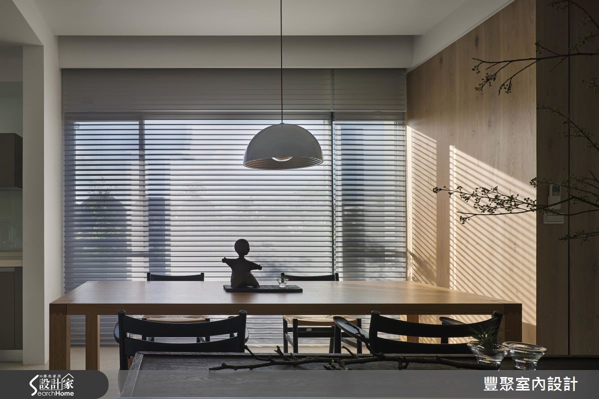设计团队自毛胚屋开始,就为屋主一家人服务,除了居住成员的起居需求,更打造一个适合款待亲朋好友的閒适居所。屋主最重视的便是让大家欢聚一堂的多功能和室,格栅推拉门增添日式幽微美感,以大面积落地窗串连和室内的两个区块,并利用木皮电视墙巧妙区隔吧台及交谊区,更预留宽敞的回字动线,以传统和室矮桌与榻榻米提纯闲静风情,格栅柜体嵌进间接照明,温柔的展示主人的收藏品。落地窗外採光与绿栽充足,随着一天的光线变化,树影与日光在室内镂刻千变万化的姿态,成为最自然的设计元素。拾级而上来到主要起居室,简约的 L 型沙发与及顶木质柜体与大理石电视墙产生对比,单纯却不失气度。通过廊道即是开放餐厨区,大量木皮、木製家具与纯白色调彰显了专属宅邸的自然气息。小编的最爱设计师看见优良的基地条件,以大量的木元素衬托充沛的日光与优雅的绿意,给予屋主一家人和亲朋好友最好的欢聚时光!