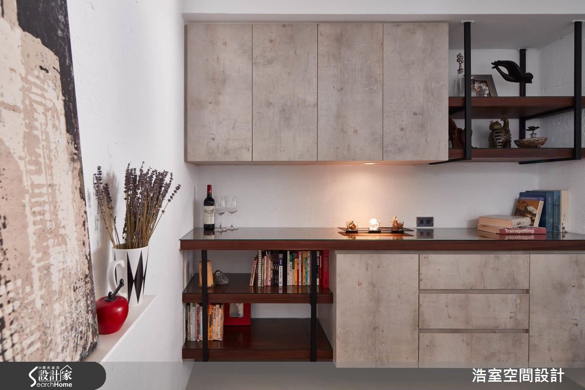 当服装设计师遇上室内设计师,会擦出怎样的火花?服装设计师所居住的116平老屋,除了给予基础的装修整顿,更透过充满艺术感的空间笔触、结合斑驳仿旧语汇,展现出别具特色的居宅印象,让每个角落皆刻下使用者的专属烙印。【仿旧、斑剥呈现屋主独特的个性】走进空间,触目所及的是深色石材端景墙,结合简约的玄关桌、私藏的现代抽象画等,营造内敛的美学印象,同时于电视墙铺陈仿泥作特殊漆,呈现简约的立面表情,一旁靠窗处则配置小吧台,搭衬悬吊植栽与墙面的斑驳处理,并导入明亮采光,形成具格调的窗边休憩场域。餐厨规划轻食吧台,是餐桌外的另一处用餐场所,并做出深色拉门避免油烟散逸,而餐桌旁则加入仿旧木纹餐柜,构筑质朴的韵味;主卧展现出简朴灰调,于床头处整合强大收纳,并解决梁下压迫问题,而窗边加大的实木飘窗设计,更替屋主带来纾压无负担的生活型态!