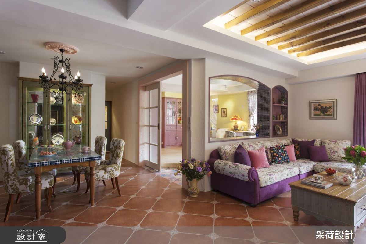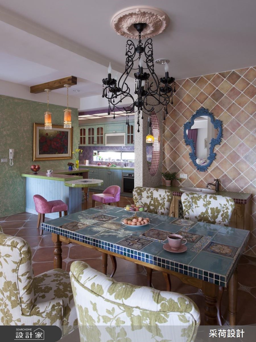 55平方米的二手房,设计师以马卡龙色彩作为灵感,并将传统一字型厨房重新予以规划,以吧台、开放式厨房等重塑餐厨空间,再以各式进口砖、花砖和实木等作为建材,打造出屋主心目中的甜美乡村风,快跟着小编一起来看看吧!【拆除隔断,扩容餐厨空间】在设计师改造之下,让公共厅区呈开放布局,并引入自然采光,赋予明亮的生活气场。客厅天花则运用木作舖排格栅、营造延伸效果,而义大利复古地砖的大面积铺陈,则更为强调居宅的温暖气息。客厅主墙则舍弃电视屏幕,添入粉红色系,病运用粗犷石材的砌筑、注入欧式古堡的古朴风情;而在拆解隔断后,餐厅、吧台与厨房即形成流畅的使用动线,并加入瓷砖拼贴的餐桌、柜体的收藏展示等,瞬间丰富餐厅的视觉层次。餐厅旁衔接的是多功能书房,在门口地面使用大量彩色砖面拼凑,搭配嫩黄墙面,更显活泼有生命力。寝卧除了规划更衣室、挹注实用机能,更局部点缀桃红色带出甜美气质,再搭配碎花墙纸、客家花布等中西混搭,展现充满异趣的生活场景。