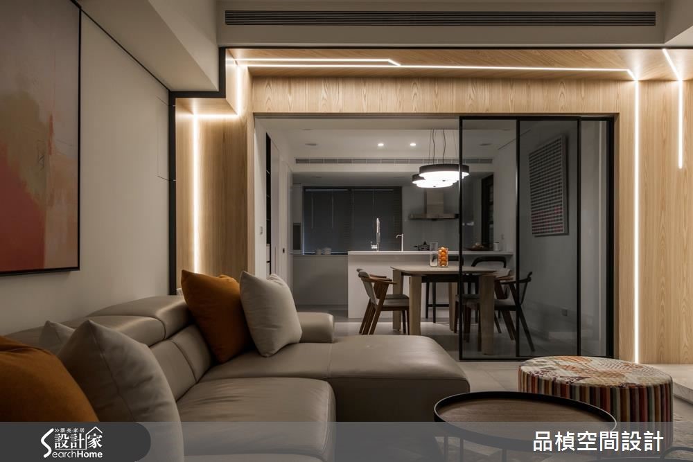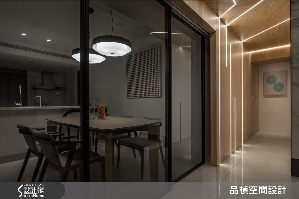 当居住空间超过5至10年,建议应寻求专业设计师进行屋况检视,维持居住安全与美观设计,设计团队为服务一家人已逾10年的二手房重新改造,赋予阴暗、狭窄的屋舍崭新光谱。 【活动拉门兼具机动性与放大效果】设计师重划神龛与卫浴位置,接着调整公私领域比例,并打开领域视野,让家人除了拥有宽裕的私人空间,更能在公共区域享受欢聚之乐。玄关以悬柜提升视觉轻盈度,并采用易清洁的灰阶地坪搭配灰玻,立刻就能打造穿透性十足的入门风景。接着设计师翻转电视墙面向,让动线更加顺畅、提高家人互动度,巧妙以一扇灰玻拉门隔绝客厅与餐厨空间,随时皆可依据需求开合。公领域的亮点,莫过于由餐厅门框延伸至走廊的不规则光带,营造前卫中带点温馨的氛围,也成为另类的照明机能。