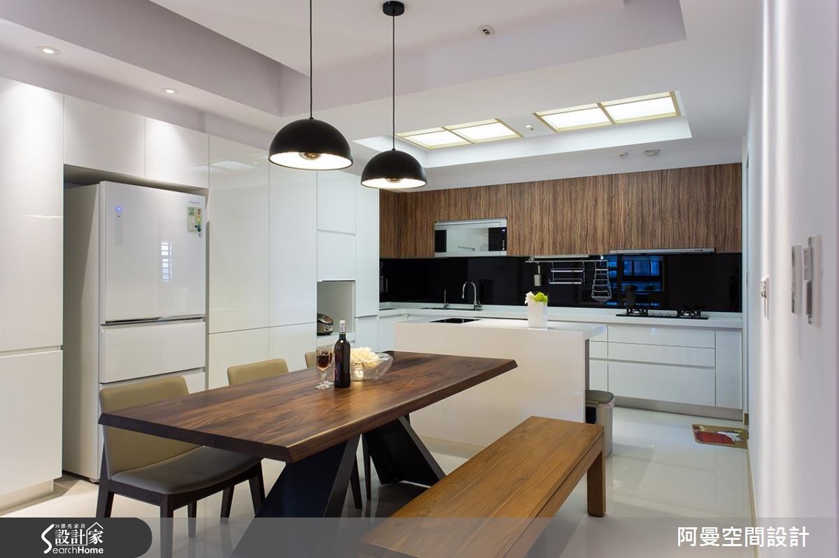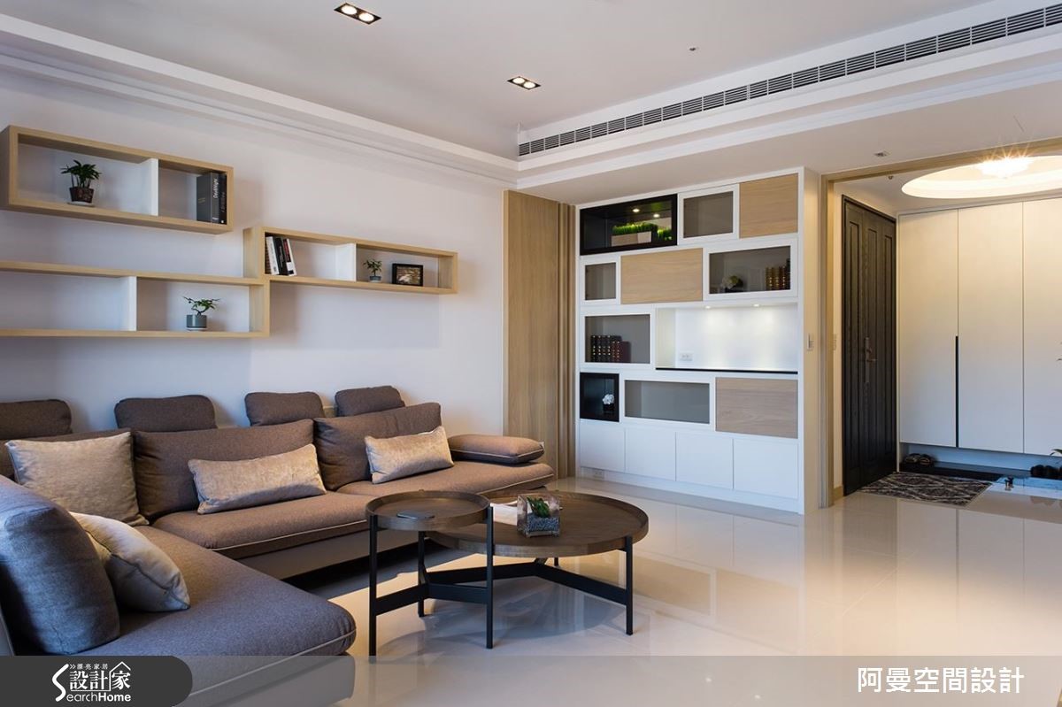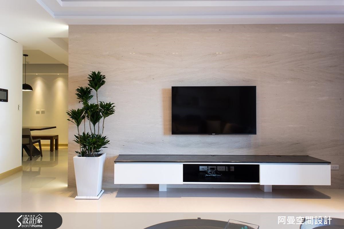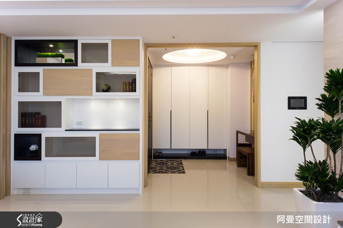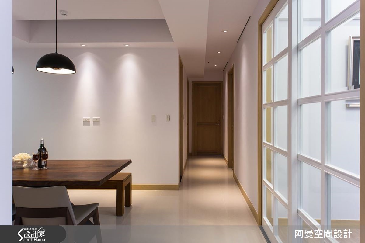 112平方米的单层住宅,屋主偏好北欧风的简约清爽感,因此在本次的装修设计,舍弃了繁复的装饰元素,以纯净的白与温润木色作为色彩基调。而大理石材质的墙面,也挹注了大方的质感,在舒适简洁中也能感受到低调的奢华氛围。【温润木色,为空间添暖意】室内独立的玄关区作出圆顶造型,并置入水晶灯光,营造时尚大器的进门开场。客厅公领域拥有相当充裕的采光,温醇的木色让空间更加舒适温馨。另外也安排了开放展示,以及精品收藏的收纳机能,透过不同的材质和色彩搭配,展现时尚现代的俐落美感。向室内深入,设计师拆除了局部墙面,改用玻璃推拉门划分独立性,让多功能书房与餐厅可以串联穿透,延伸空间的开阔度和明亮光感。主卧室以简洁明亮为重点,也加入充裕的收纳规划,门面上以圆滑俐落的造型线条,型塑简约而时尚的质感。