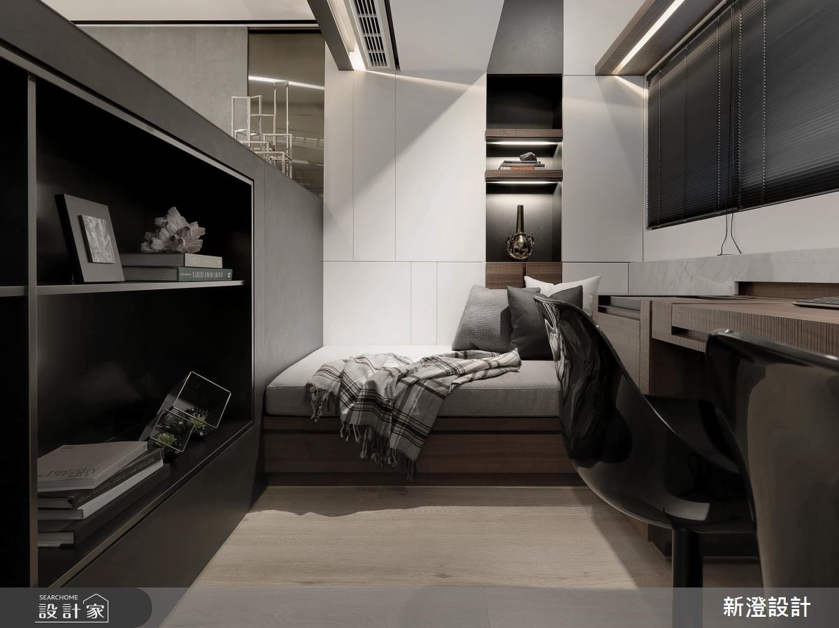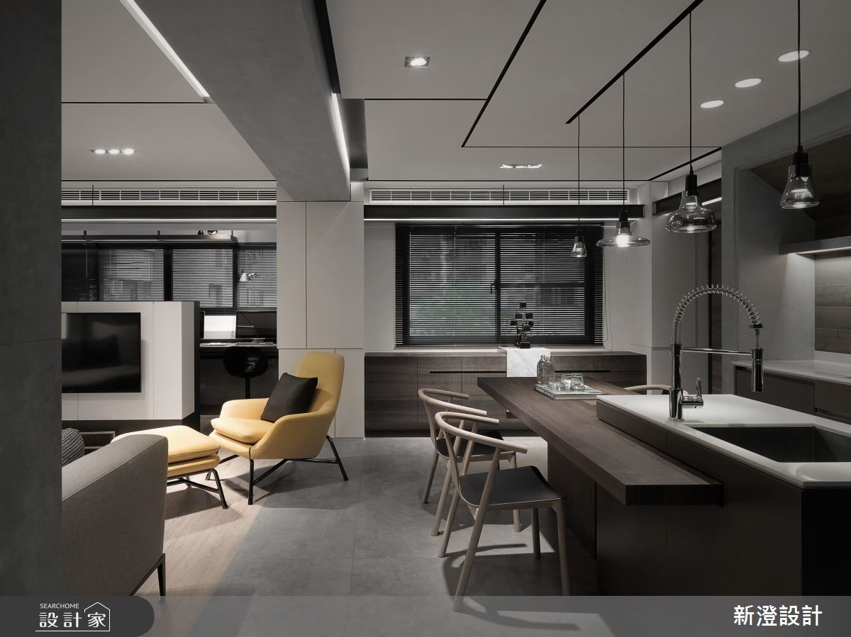 老房子虽蕴藏着家人间的笑语,但已届老屋年龄,有着格局、动线与屋况不敷使用的诸多问题。透过专业设计团队,让老屋带着满满新颖魅力继续为家人服务!【玻璃双拉门,破除狭窄封闭】原先公领域格局狭小封闭,设计师以玻璃双拉门打开玄关视野,将大宅常见的内玄关概念运用于空间,与公共区域达成无碍串连,接着以开放设计规划客厅与餐厨空间,增加扩容感受。【以光带与灯具,增加照明光源】由于老屋仅双向开窗,有着光源不足的问题,需要大量人工照明辅助,包含投射灯取代直接光源、并在墙上加入延续至天花的光带设计,同时达到实用照明与情境营造的需求。【钛金与大理石,型塑利落个性】针对风格设计,选择钛金、大理石等冷调建材打造富有个性的灰阶居家色彩,更别出心裁将不锈钢塑形后设计为电视柜。毛面钛金玻璃划分公、私领域的分界,并利用多功能和室创造充裕的收纳机能与休憩空间。