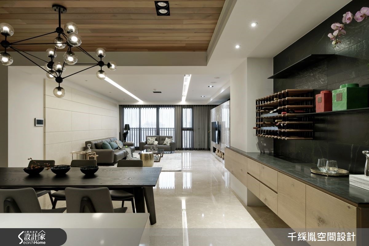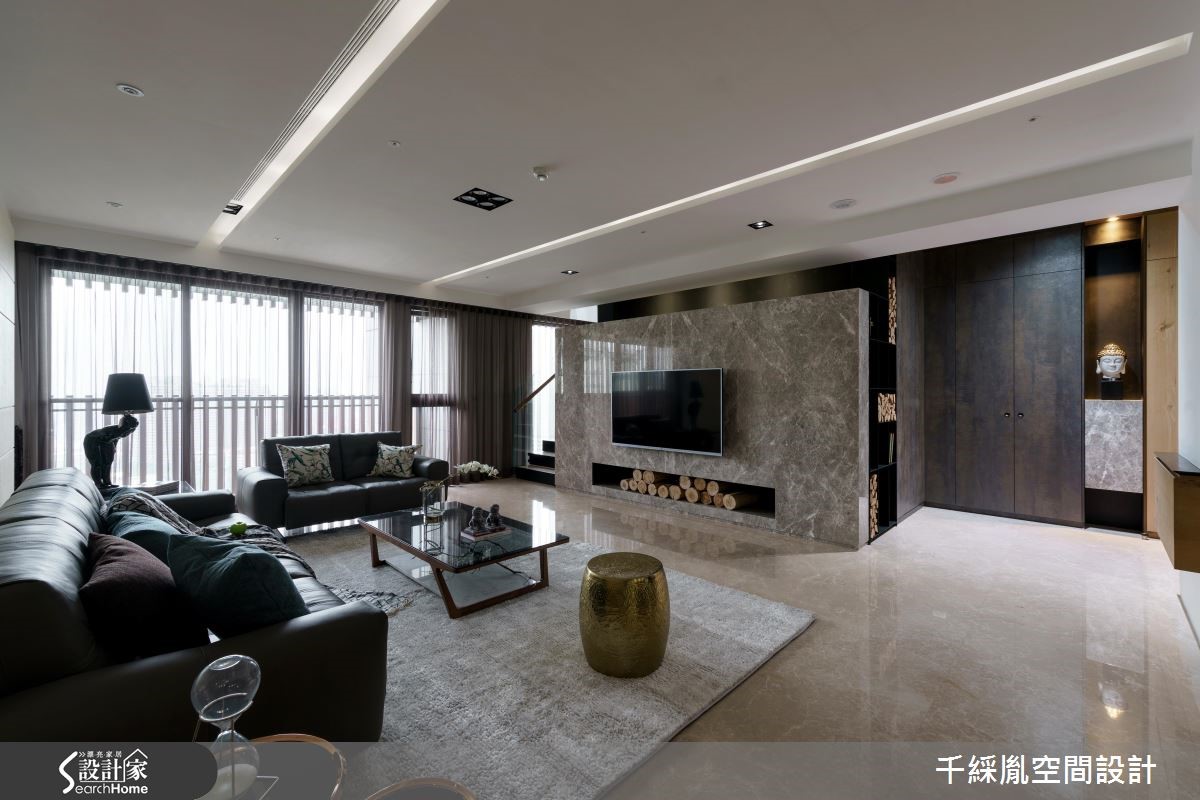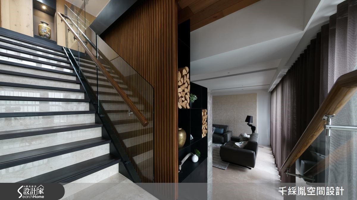264平方米的复式楼为屋主来台工作时的居所,同时身兼招待所以及员工宿舍,设计师以简约却富有质感的自然材质刻划空间线条,营造大器时尚的质调。【材质混搭,堆砌质感好空间】公共领域以开放式设计串连客厅与餐厨,打开整体视野,并改变楼梯坡度与方向,让动线更加顺畅、便利;且为了有效减省预算,设计师保留原有厨具设备,去除繁复的装潢工法,以俐落线条框设整体居家空间。材质部分,玄关以斑驳色调的薄砖营造仿旧美感,并将大理石应用在台面与电视墙,达成相呼应的大器氛围;主卧顺应屋主喜好,以黄油烤玻柜面、铁件展示架与大地配色跳脱传统木皮柜门思维,引进时尚气息。