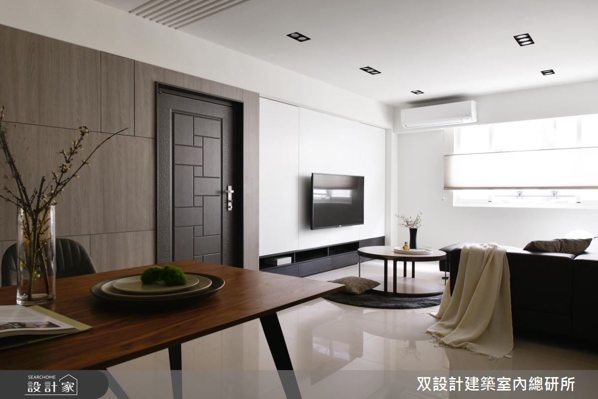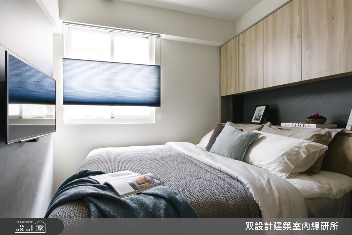 客变后格局还是有问题怎么解?电视半墙创造多元机能,主客卧对调优化动线,59.4 平米新成屋化身质感文青宅