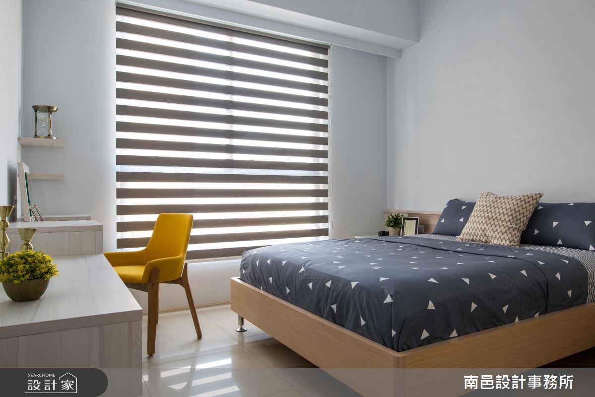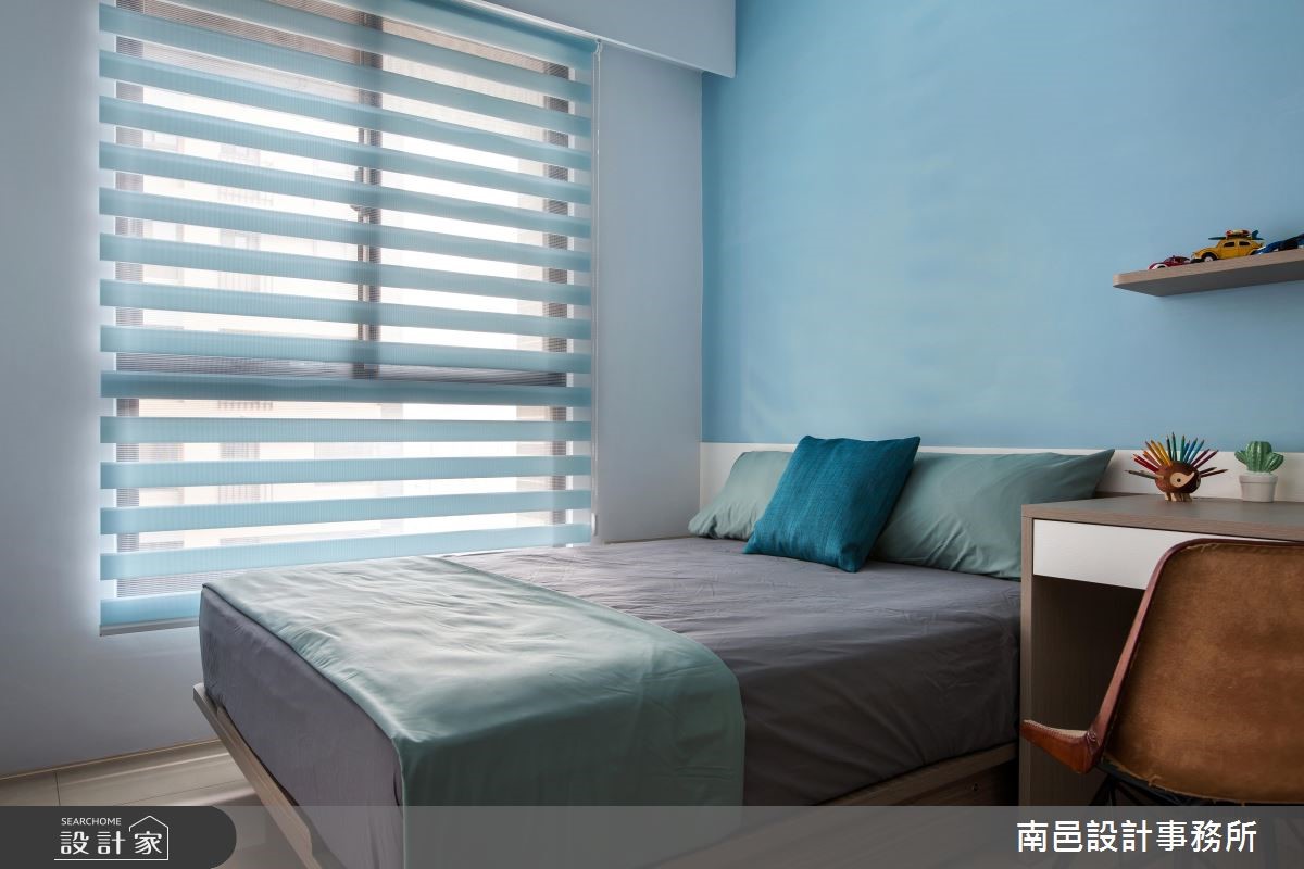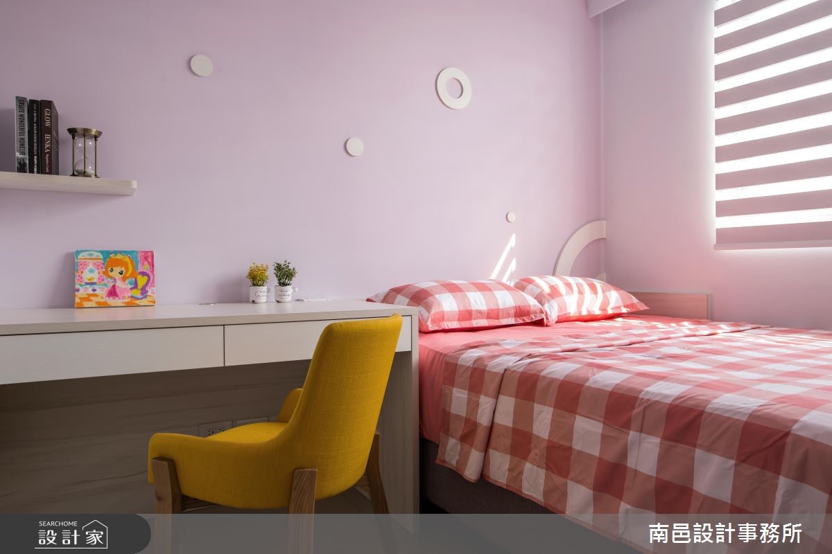 一对年轻夫妻与儿女的新家,需要有充足的柜体设计可以储放物品,但也同时希望创造出适合与家人互动和建立情感的空间,因此如何打破既有空间限制,扩容视觉又能满足收纳,就是设计团队的功力了。【通透拉门,采光无阻碍】运用电视柜和餐柜深度,延伸出玄关廊道,使进门后的空间具有动线的层次性,而门边也配置有展示和抽屉,轻松就能做好收纳。客厅、餐厅、厨房以一字型动线连贯,并使用清透的玻璃推拉门区隔厨房,让充裕采光深入室内,不仅看起来更大更宽敞,也能阻隔油烟。卧室则针对不同的居住者进行规划,主卧室注重收纳安排,以简约色调呈现出舒适大方的质感。男孩房则使用天蓝色作为主色调,搭配浅色系柜体,相当清新有活力;女儿的居室主色选用粉红色,营造出公主般的甜美氛围。