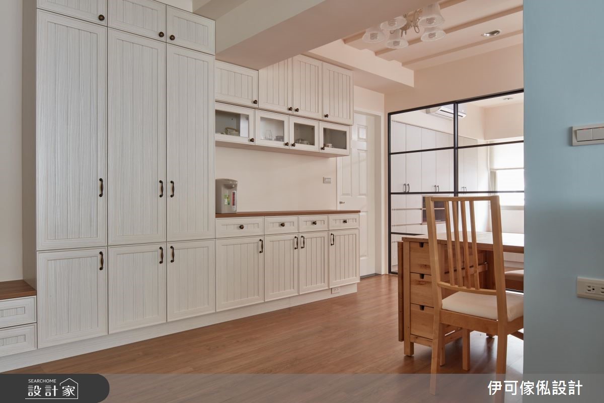 83平方米的退休宅,设计师考虑到长辈使用需求,选以木地板、环保建材与组合家具,搭配着明亮开阔的格局分布,打造舒适的生活环境。【北欧风与组合家具的完善结合】空间以北欧风作为底调,于电视墙加入文化石墙纸,型塑自然感背景,并延伸木作柜体,一路串联至门口,瞬间拉大立面的尺度;而为了缓解餐厅低矮梁柱的压迫感,运用组合柜的整合铺排,弱化梁体的存在感,并额外规划出备餐台,方便用餐时可以使用。多功能室采以铁件搭构清玻材质,创造场域之间的视觉穿透性,更导引光线的交流,增添明亮度,内部亦不乏机能配置,无论是架高的地坪底部,或收整于墙的整排柜体,都落实了大容量收纳,且兼具清爽不杂乱的风范!