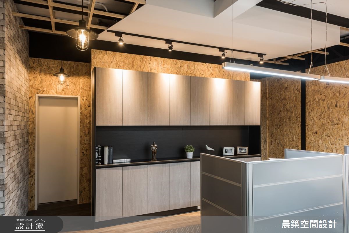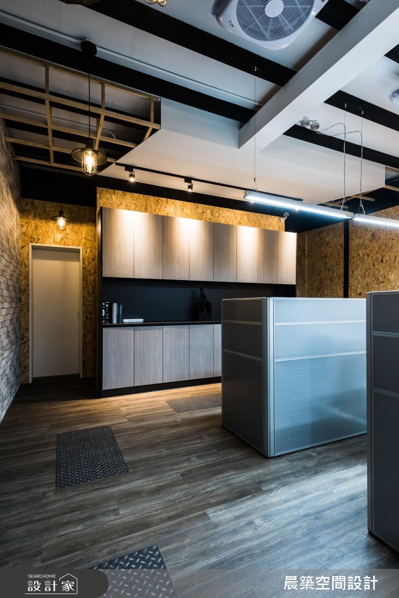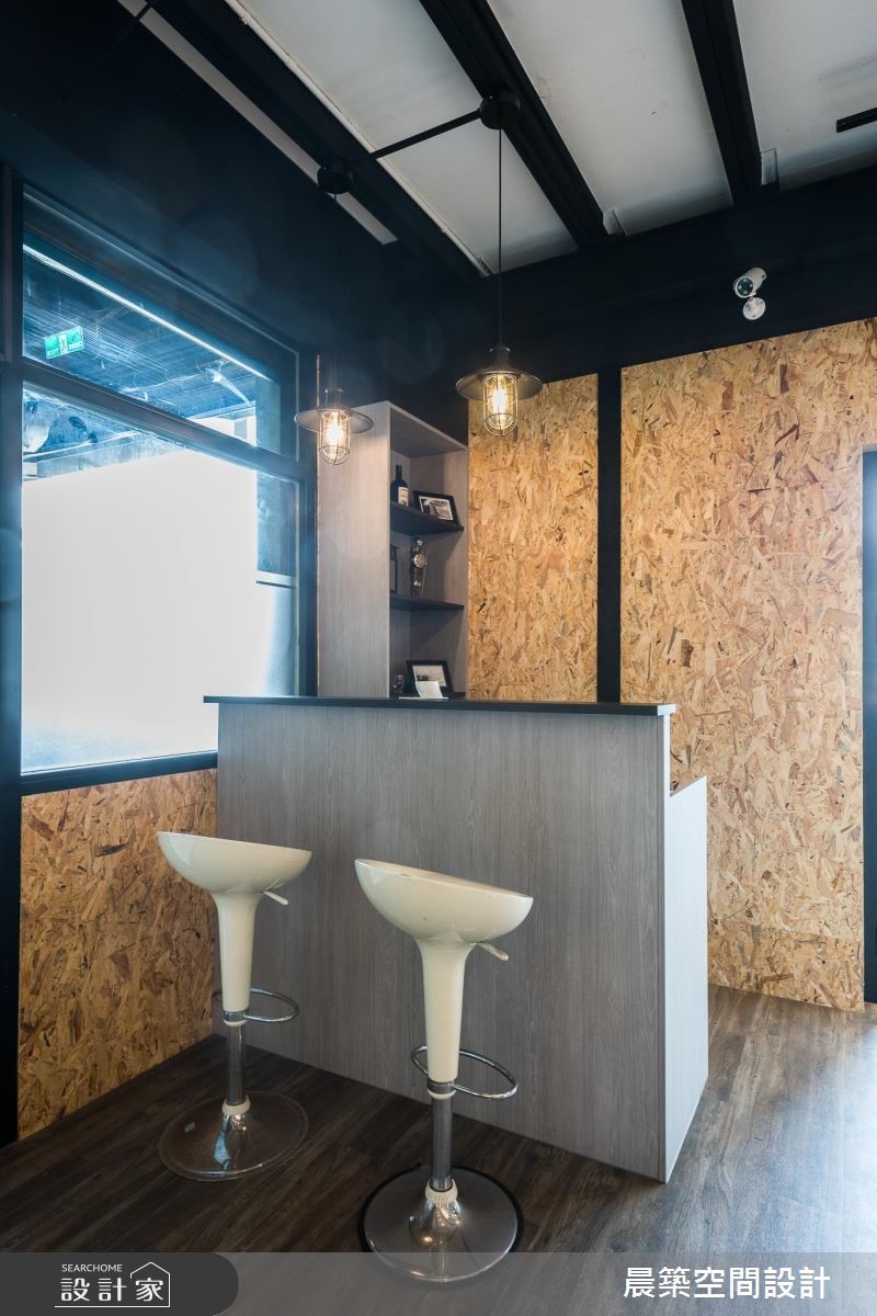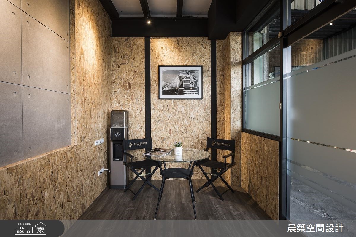 此案为一间铁皮工厂,原本无明显形象墙设计,也没有划分明确领域。设计师全面进行调整,延续原有室内元素,且将在地Loft风引入,赋予空间崭新样貌。【OSB板软化刚硬工业风】由于屋高不高,天花以半裸露的方式,除了展现原始之美,修饰局部的视觉,也无形拉高了空间视觉;而减少隔断的设计,不论是屋高或屋宽,都能展现通透视觉效果。空间本身的地坪有明显的高低差,特别透过缓斜坡的手法,逐渐消弭高度落差。入口处接待区规划小型吧台区,兼具休憩、接洽与品酒之用。OSB板的办公区壁面引领自然风尚,搭配铁件与轨道灯饰,酝酿温润质感。