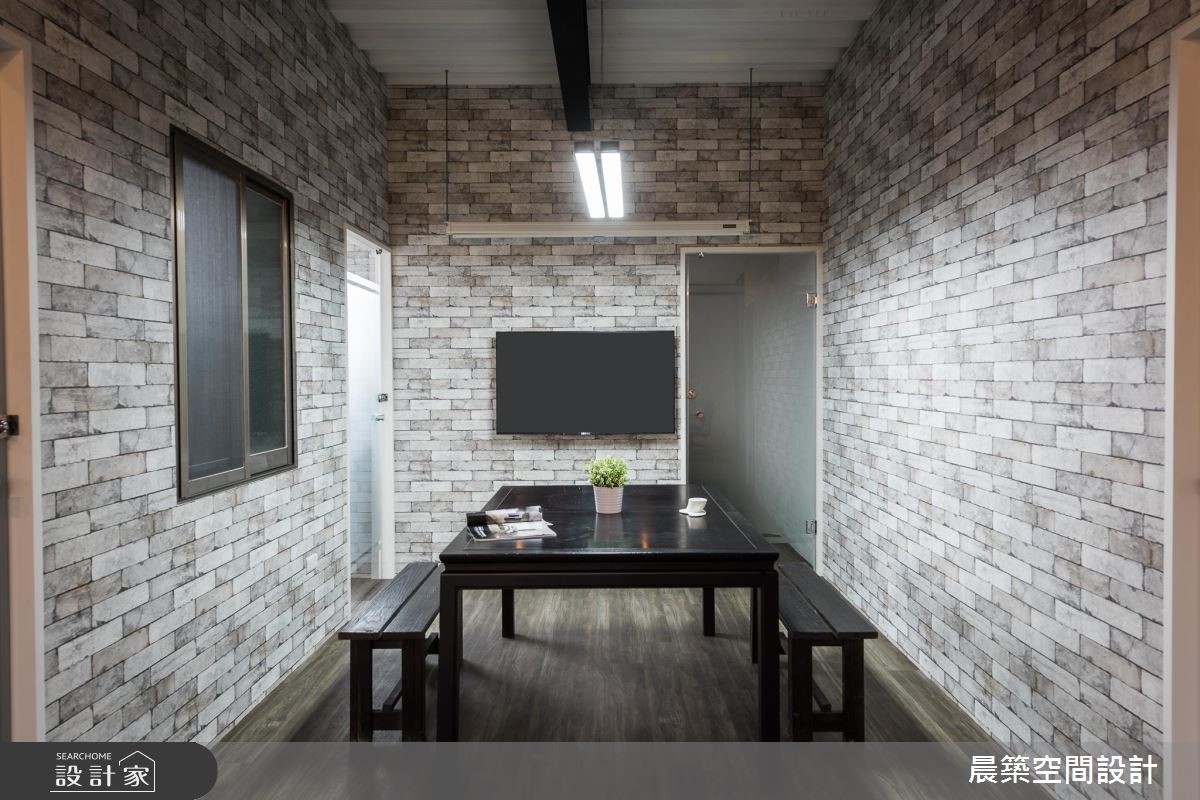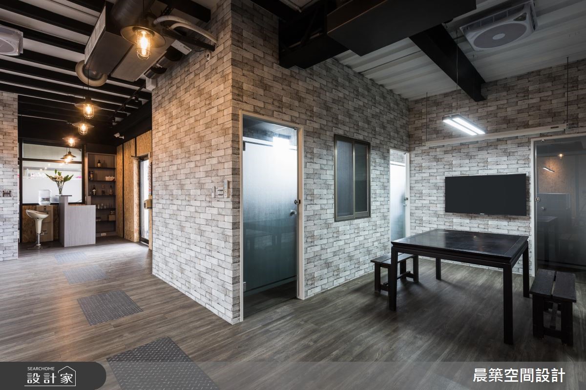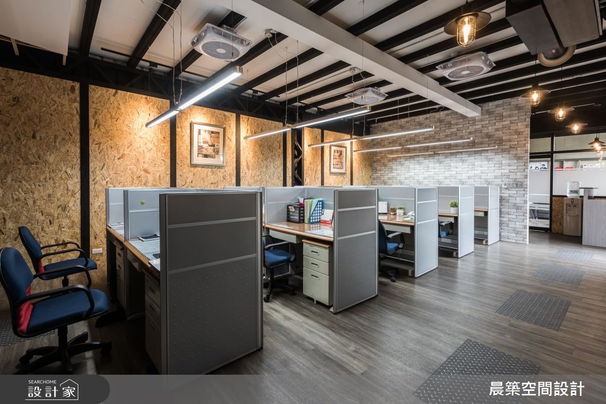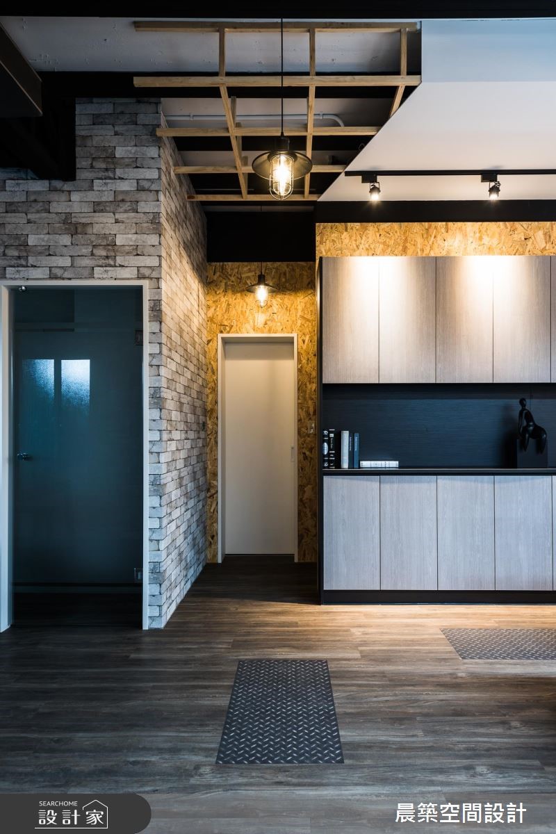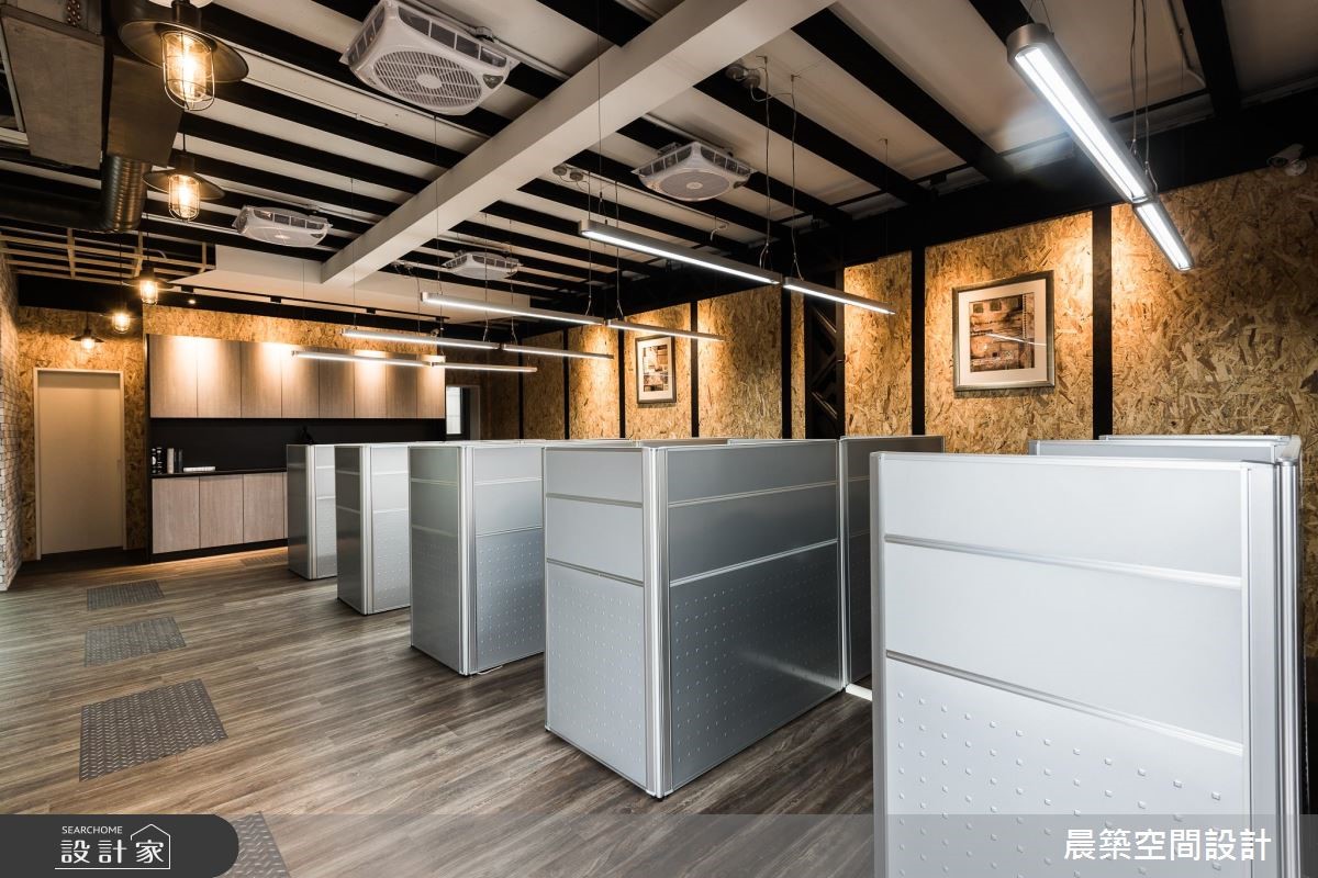 此案为一间铁皮工厂,原本无明显形象墙设计,也没有划分明确领域。设计师全面进行调整,延续原有室内元素,且将在地Loft风引入,赋予空间崭新样貌。【OSB板软化刚硬工业风】由于屋高不高,天花以半裸露的方式,除了展现原始之美,修饰局部的视觉,也无形拉高了空间视觉;而减少隔断的设计,不论是屋高或屋宽,都能展现通透视觉效果。空间本身的地坪有明显的高低差,特别透过缓斜坡的手法,逐渐消弭高度落差。入口处接待区规划小型吧台区,兼具休憩、接洽与品酒之用。OSB板的办公区壁面引领自然风尚,搭配铁件与轨道灯饰,酝酿温润质感。