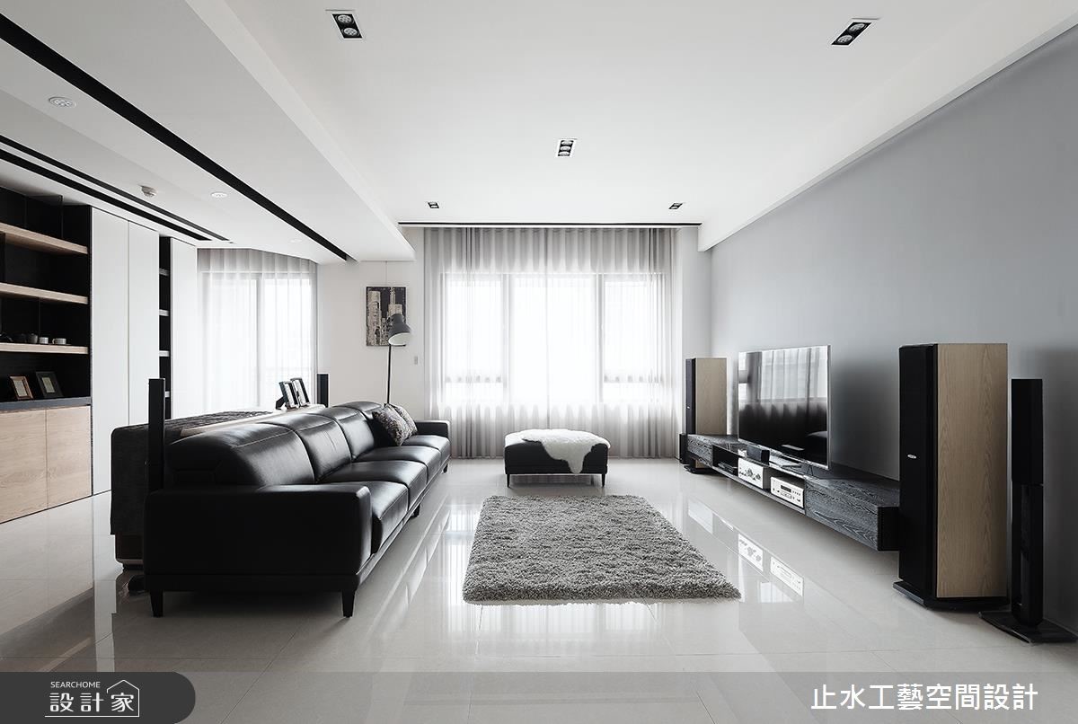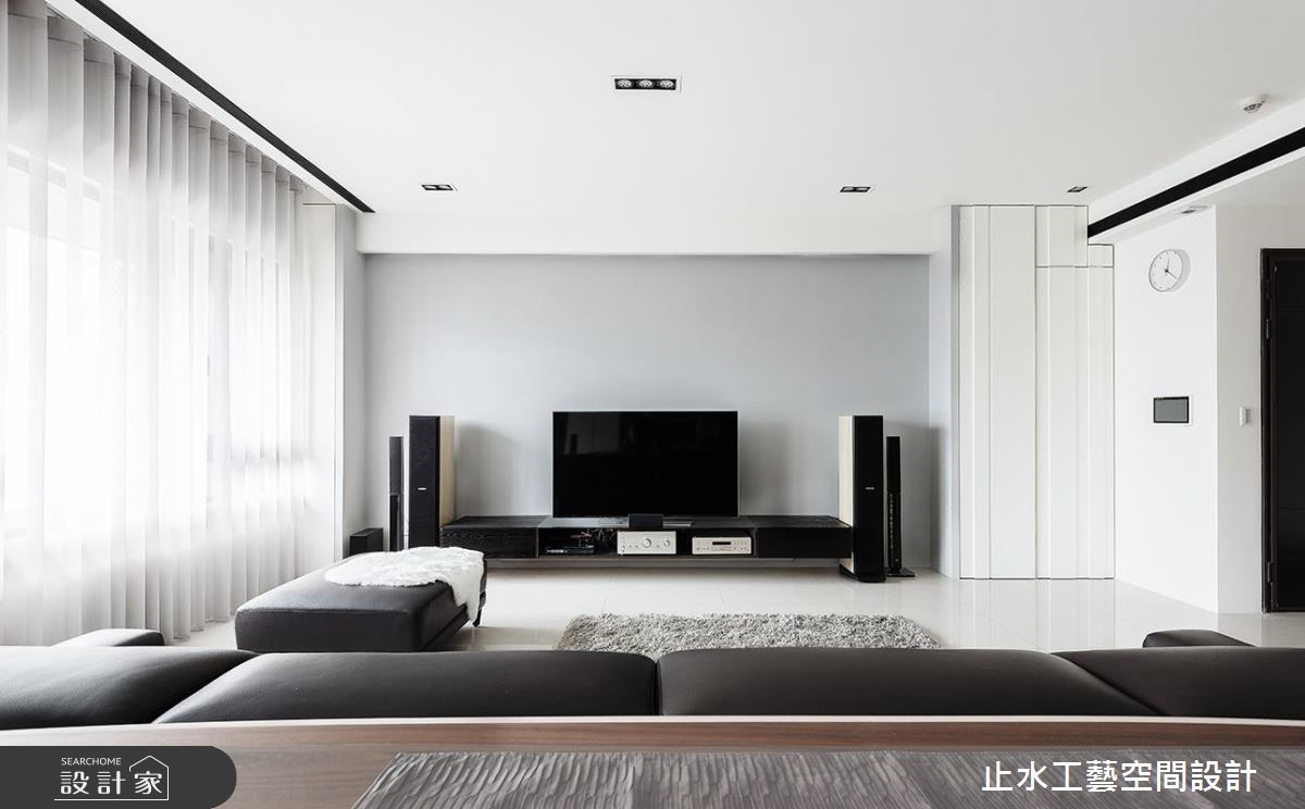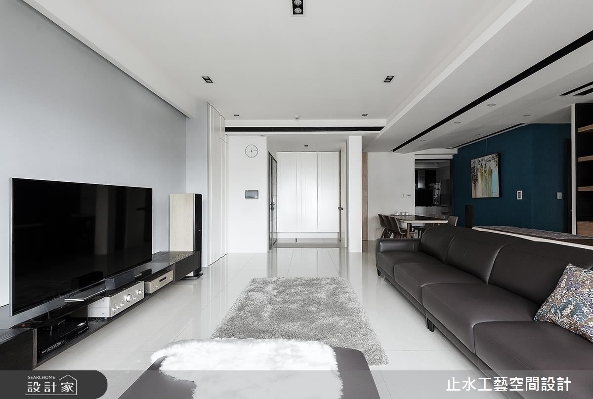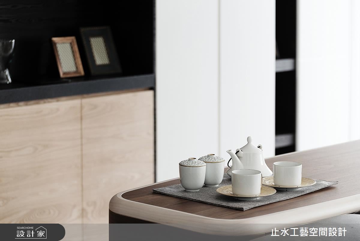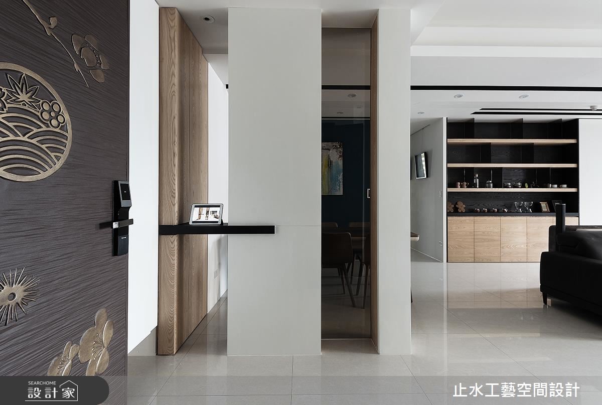 长年旅居在外的屋主是一对重视生活品质的夫妻,两人走遍世界各地,偏爱优雅的生活质感。设计师为这间198平的住宅卸去过多的色调及装饰,在清爽的氛围中,透露出简约的生活品味。【减法设计,让留白空间感增添宁静】步入室内,设计师运用虚实交错的柜体设计,划分出玄关区域,巧妙地避开入门即见餐厅的视感冲突,同时采镂空的视觉穿透性及玻璃材质特性,使一进入大门视线望向公共区域时,不但不觉得局限,更增添了一抹含蓄之美,从而打造兼具实用性及穿透感的效果。整体以白色与原木色为基底,电视墙特别添上了恬静的浅灰色及餐厅背墙的优雅英国蓝,带入色彩的丰富层次性。整体空间伴随着展示柜里屋主收藏的外国手工精致茶具,以及适度的摆设搭配,为两人居宅溢散着优雅文静的生活氛围。