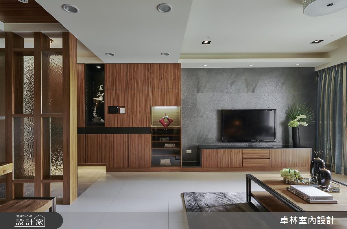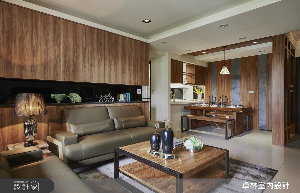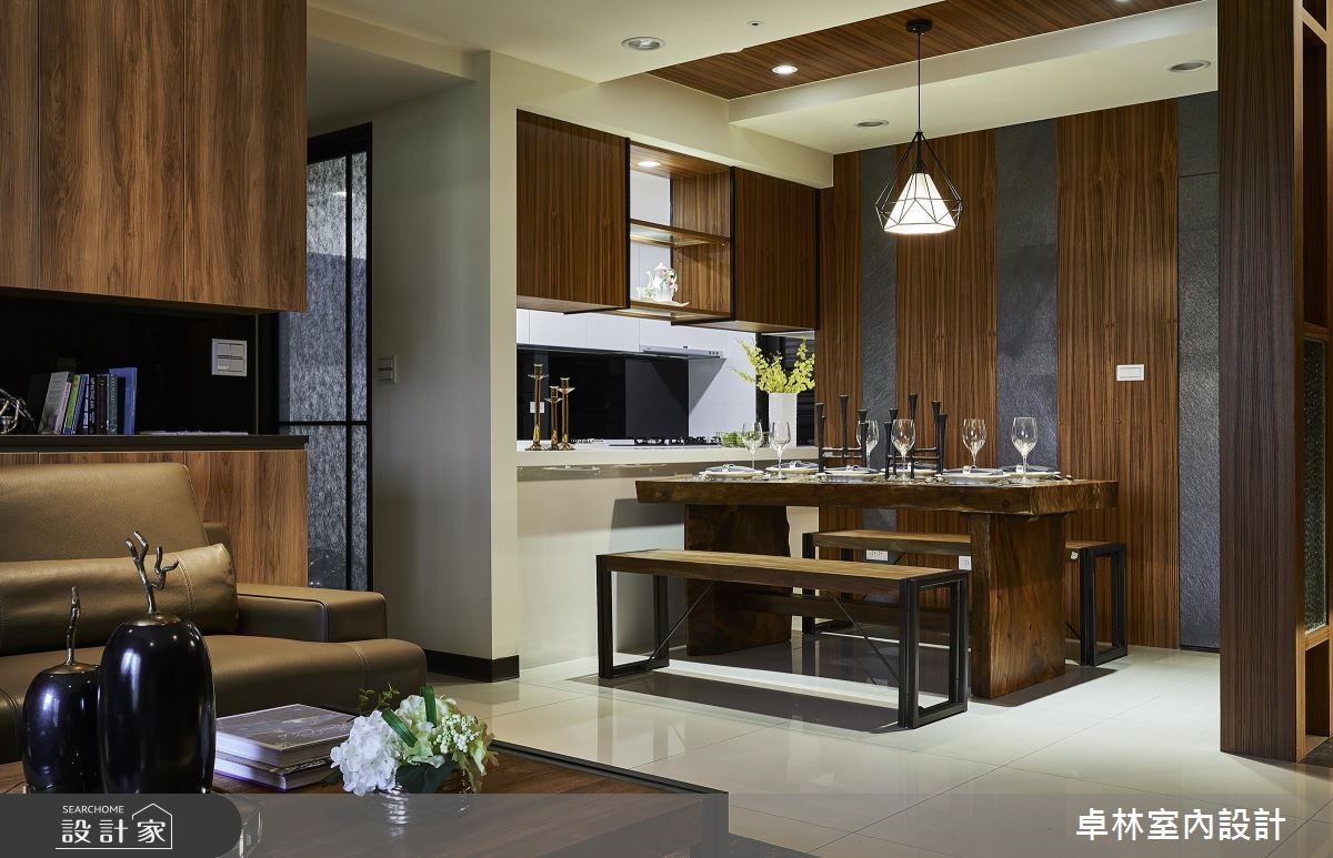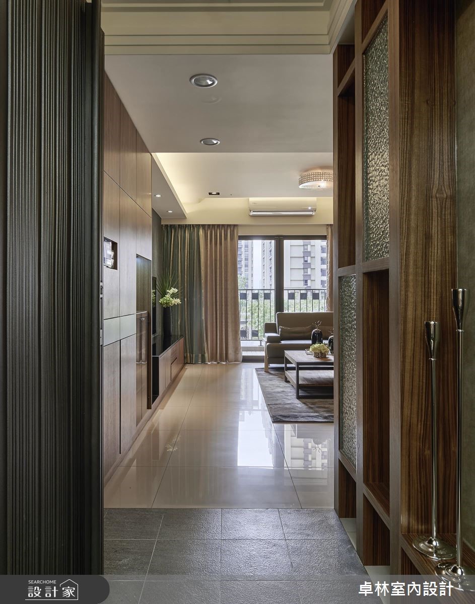 顺应屋主对于中式禅风的期待,因此设计师以浓郁的木色与灰质石材渲染,并强调空间留白和视觉穿透,让139平方米的单层住宅呈现出沉静韵味,搭配着屋主的珍藏品,打造出隽永而时尚的生活质感。【温润木质,打造自然禅风空间】玄关处的木质格栅,划分与公共领域间的界线,并运用不同种类的玻璃纹样镶嵌,保留透光性外,也型塑丰富的艺术美感;收纳柜体沿着墙面走向,延伸至开放式厅区,以大量的禅风木色注入自然温润感,并加入展示收藏格,将屋主的典藏转化为富有文艺气息的空间装饰。设计师运用中岛界定厨房和餐厅位置,侧墙面并以木质拼接拓采岩材质,不仅延续风格的一致性,也巧妙隐匿了客卫的入口;而温润的木质也延伸至私领域的规划上,搭配系统家具的收纳机能,创造舒适感与实用度兼具的居室空间。