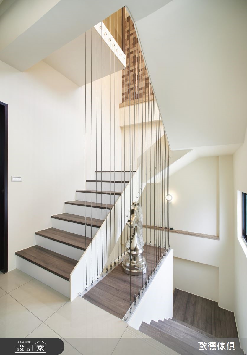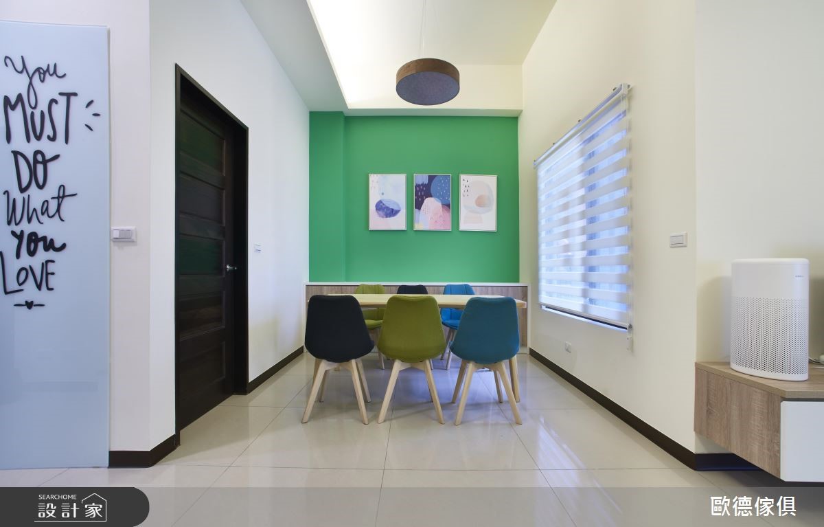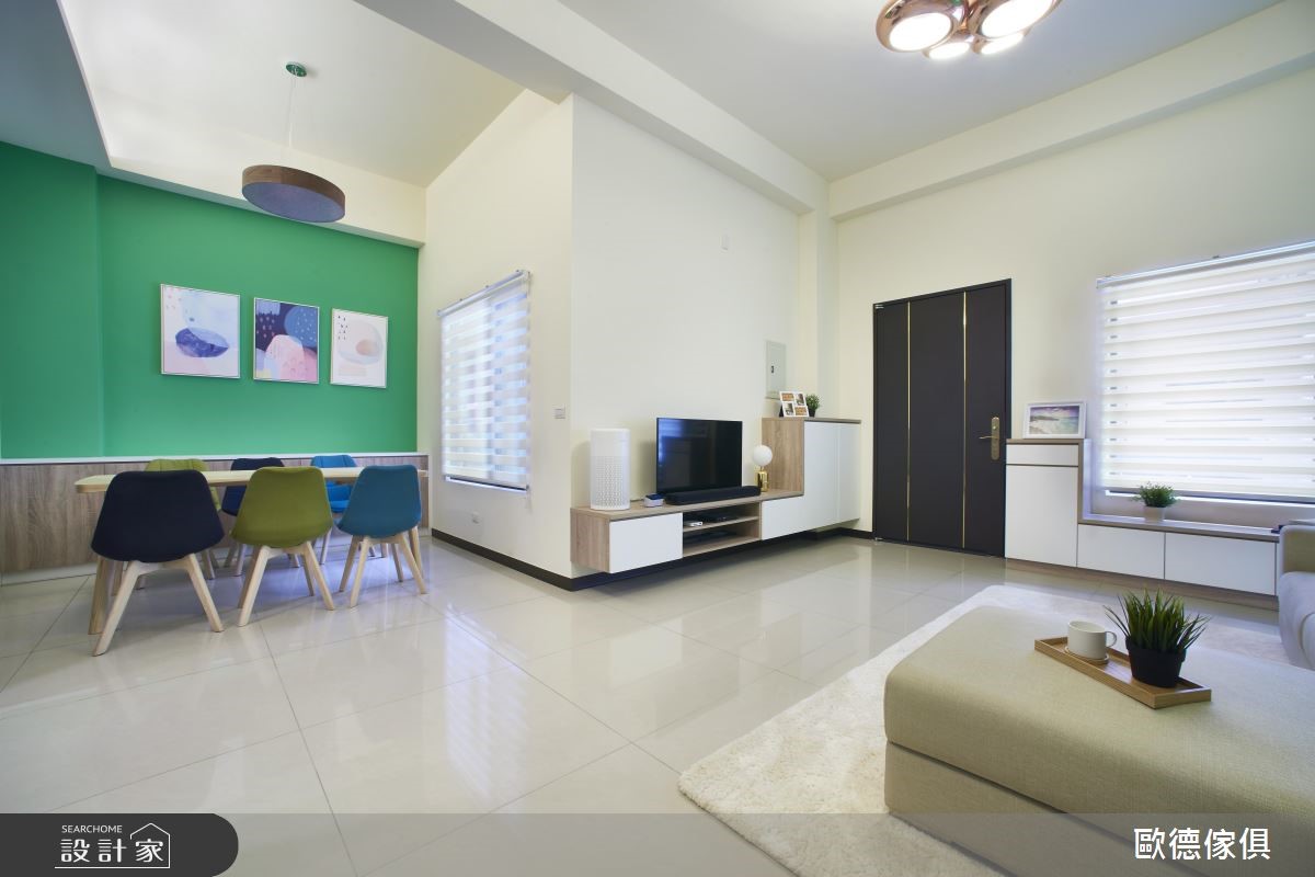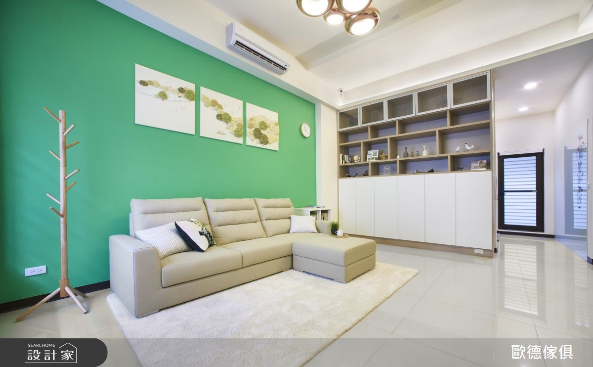 男主人为香港华侨,相当喜爱台湾的生活环境,选择房价较低、交通方便的郊区购置独栋楼,期望让家人拥有自由无忧的生活环境。【定制系统柜,省时又省预算】设计团队善用高效能的系统家具,不只兼具美感与实用规划,从施工到入住也仅费时3个月。整体风格以明亮、简约为主,客、餐厅墙面利用大面积亮草绿油漆达成活泼的跳色效果,并以系统家具规划电视柜、飘窗与储藏室,不仅视觉上简洁利落,更有着一致的设计感。令人感到惊艳的是从客厅左侧的大面积收纳柜,可一路延伸至宽敞的储藏空间,让收纳不着痕迹!而针对楼梯设计,设计师以细致铁件取代一般栏杆,并搭配灯具装饰,以通透、富设计感的姿态串连各楼层。