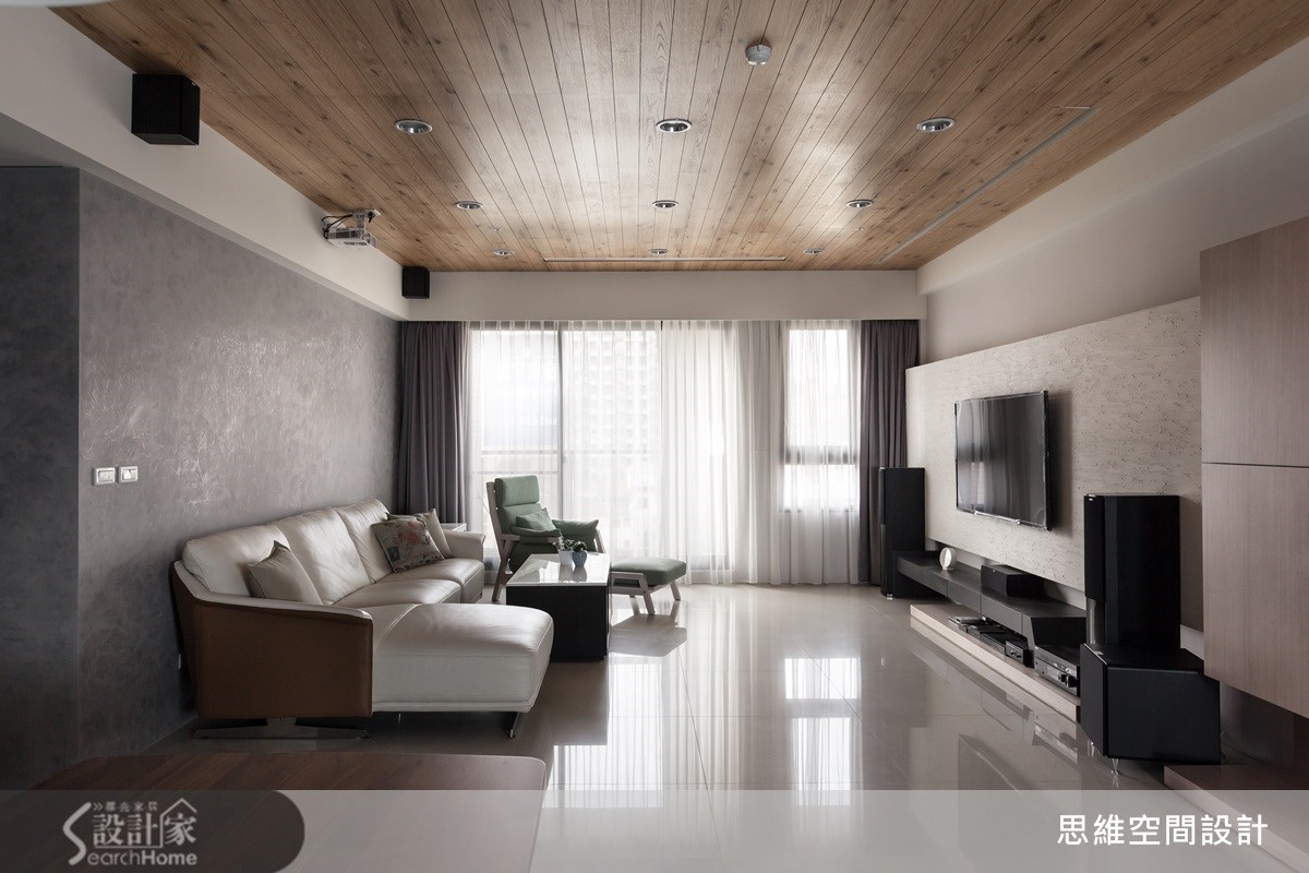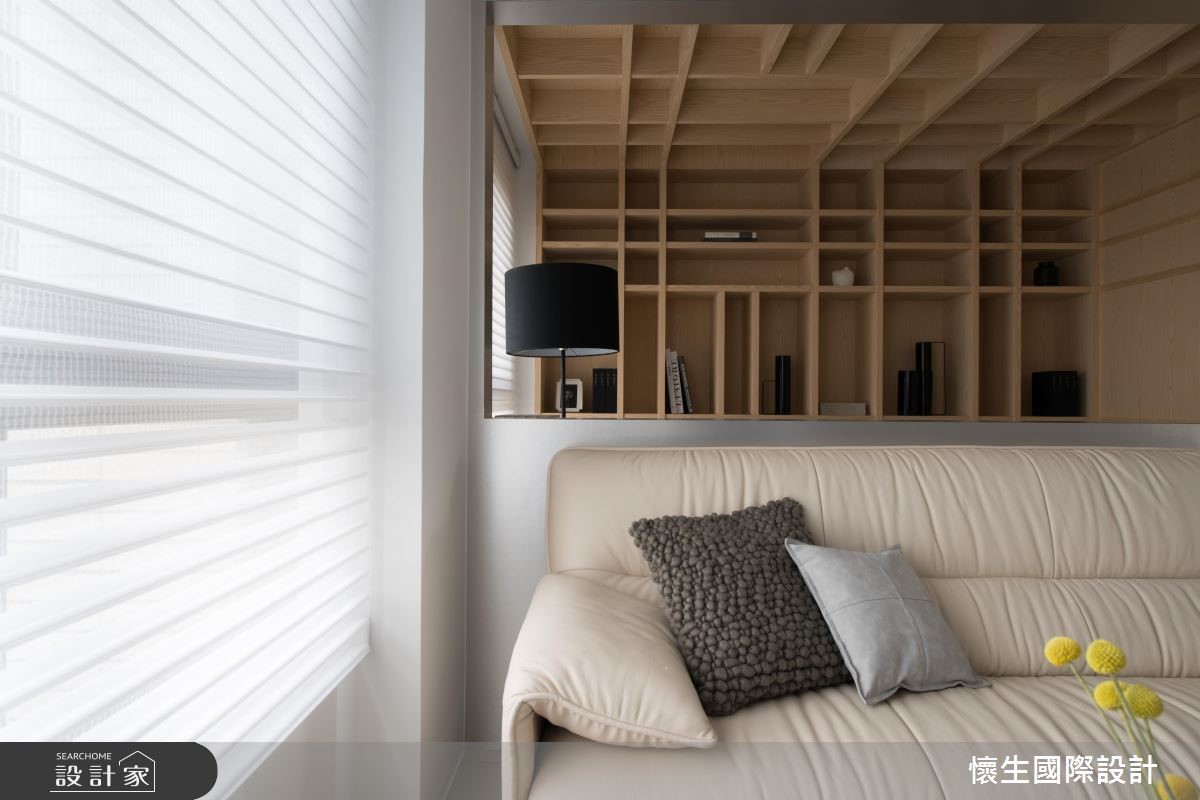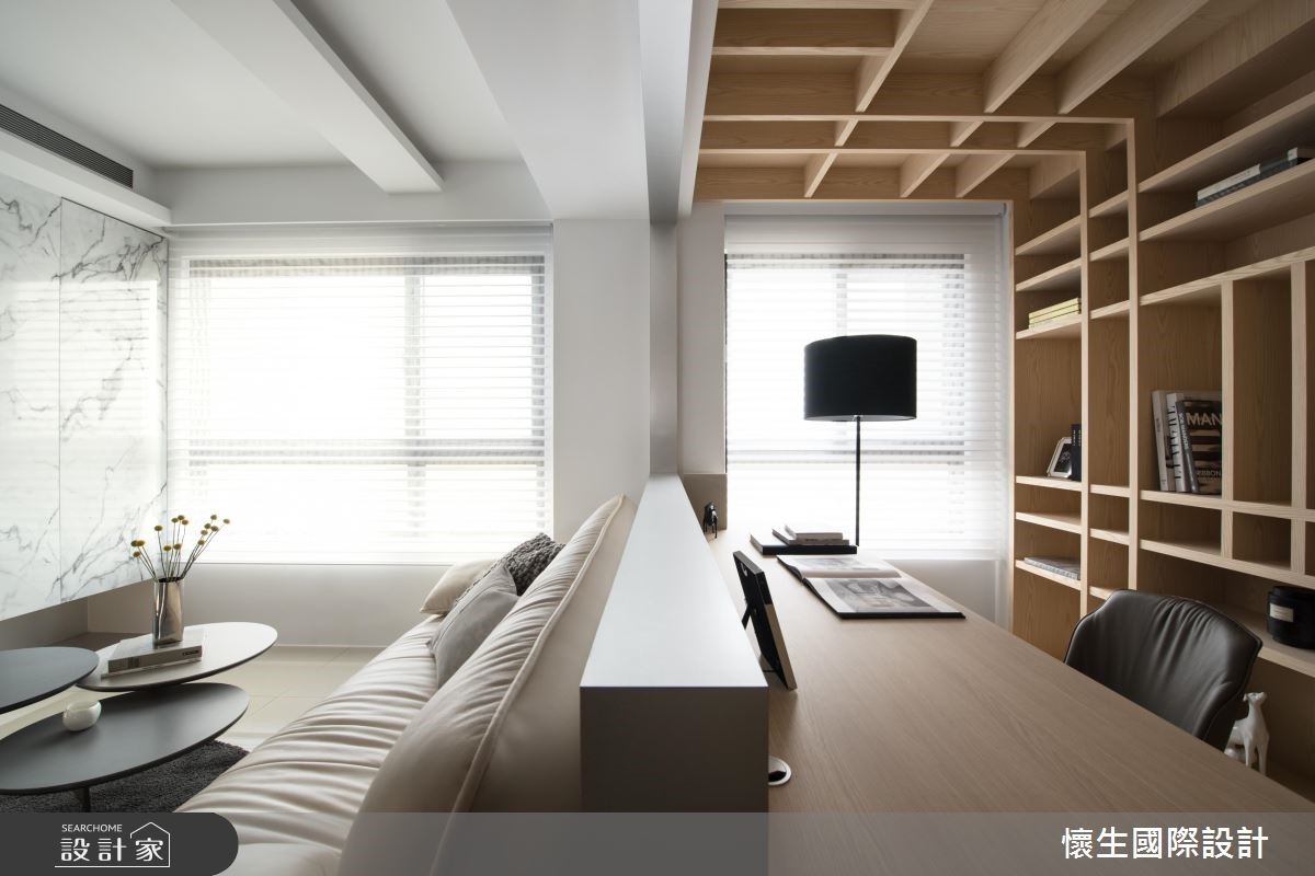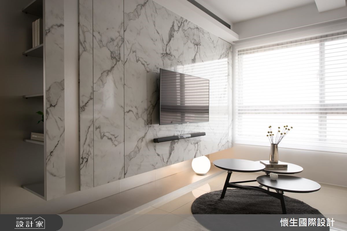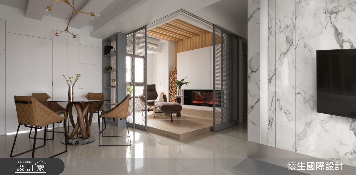 83平方米简约风居家,为了符合屋主的生活所需,创造纾压的生活视野,设计师将居室拆除改成和室,改为可休憩与喝咖啡的场域,并打通空间格局,型塑开放弹性的使用型态,打造出倍感放松的居家情境。【悬空收纳设计,创造轻盈视感】电视墙采用具天然纹理的石材建构而成,结合不落地的量体规划,且在后方植入聪明收纳机能,形成利落轻盈的厅区样貌。此外,并以沙发作为界定,区划出书房领域,藉由壁面延伸至天花的开放式木格柜,巧妙带出视觉层次。【扩张网门片,注入工业风个性】餐厅则收整墙面线条,落实清爽干净的场景,上方悬吊的瑰丽吊灯,则无形中与餐桌造型两相呼应,创造带有艺术质韵的优雅美感,旁边则刻意架高地面,选用网状门片围塑起居和室,引出另类的工业风味,并达到穿透光线的明亮效果!